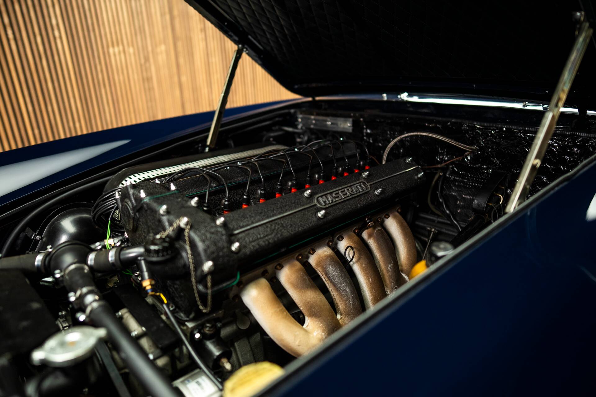 The Maserati archives confirmed this, as well as the fact that, also at the owner's request, a 5-speed ZF transmission was supplied and installed by the factory in 1964. Both of these features remain on the car today.