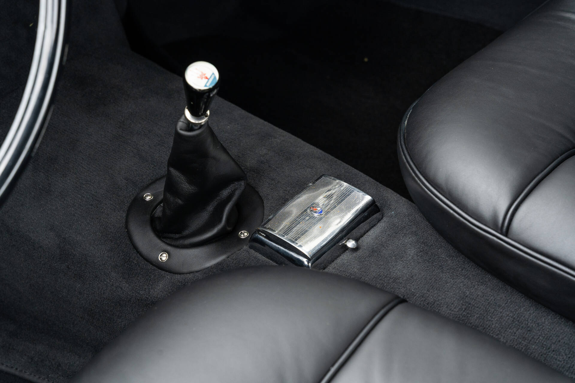 Between 2011 and 2013, the car underwent a complete restoration by a Maserati specialist in Europe ensuring that every element—mechanical and aesthetic—was brought back to perfection. The body was fully restored, with every aluminum surface carefully refined before the car was returned to its original factory color, Smalto Grigio Metallizzato, paired with a beautifully refined black leather interior and beige moquette carpeting. Every detail, from the interior trim to the exterior chrome, was carefully sourced and correctly fitted, ensuring an authentic finish. Completing the car’s period-correct look, a full set of five highly desirable Borrani wire wheels were fitted.