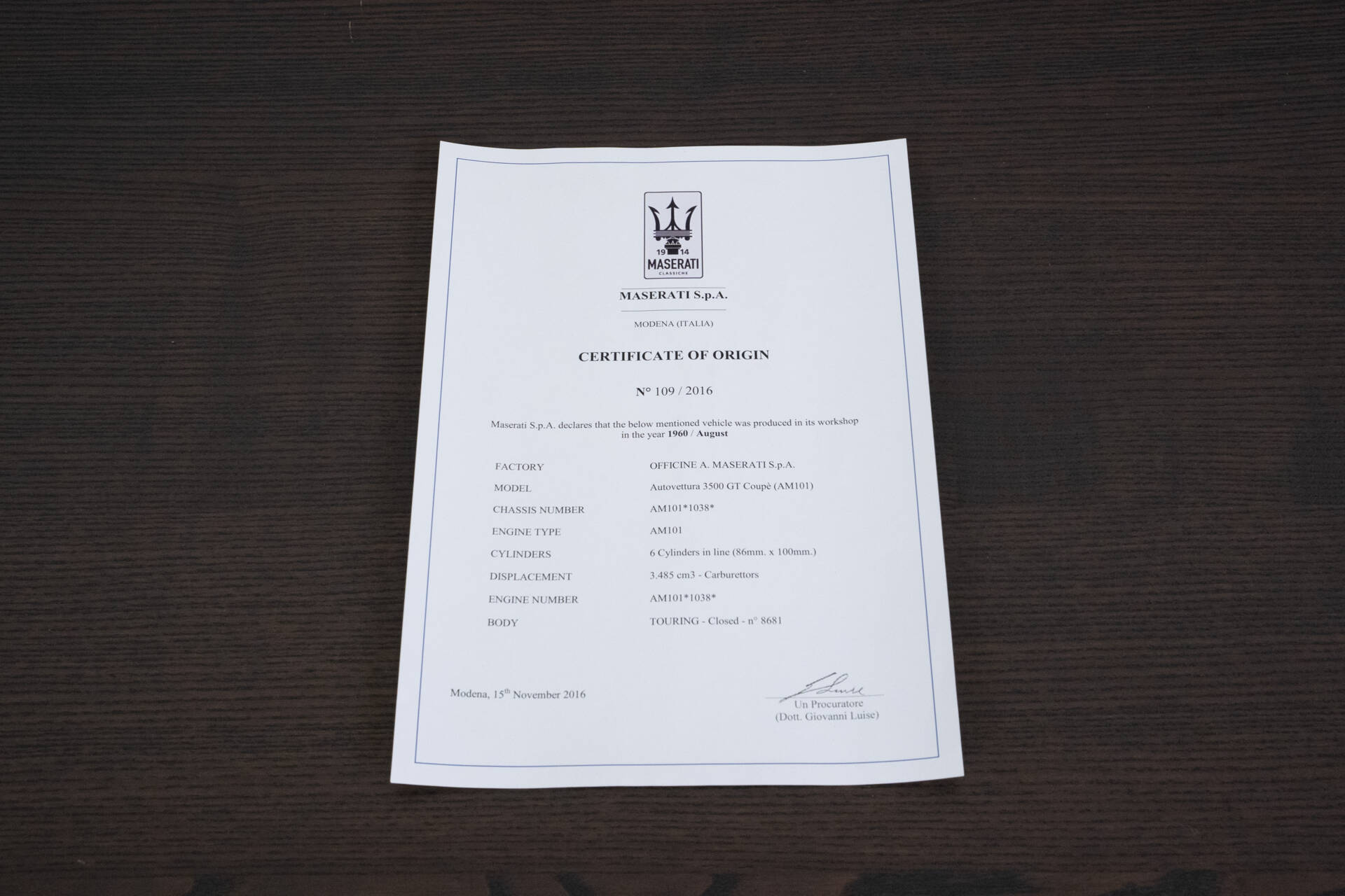 A rendere la vettura ancora più desiderabile, la vettura è dotata della prestigiosa certificazione Classiche di Maserati, che conferma che conserva il suo motore e la sua trasmissione originali, con numeri corrispondenti. Inoltre, include la sua bolla di consegna originale, la scheda tecnica e il certificato di origine direttamente da Maserati, a garanzia di una provenienza indiscussa.