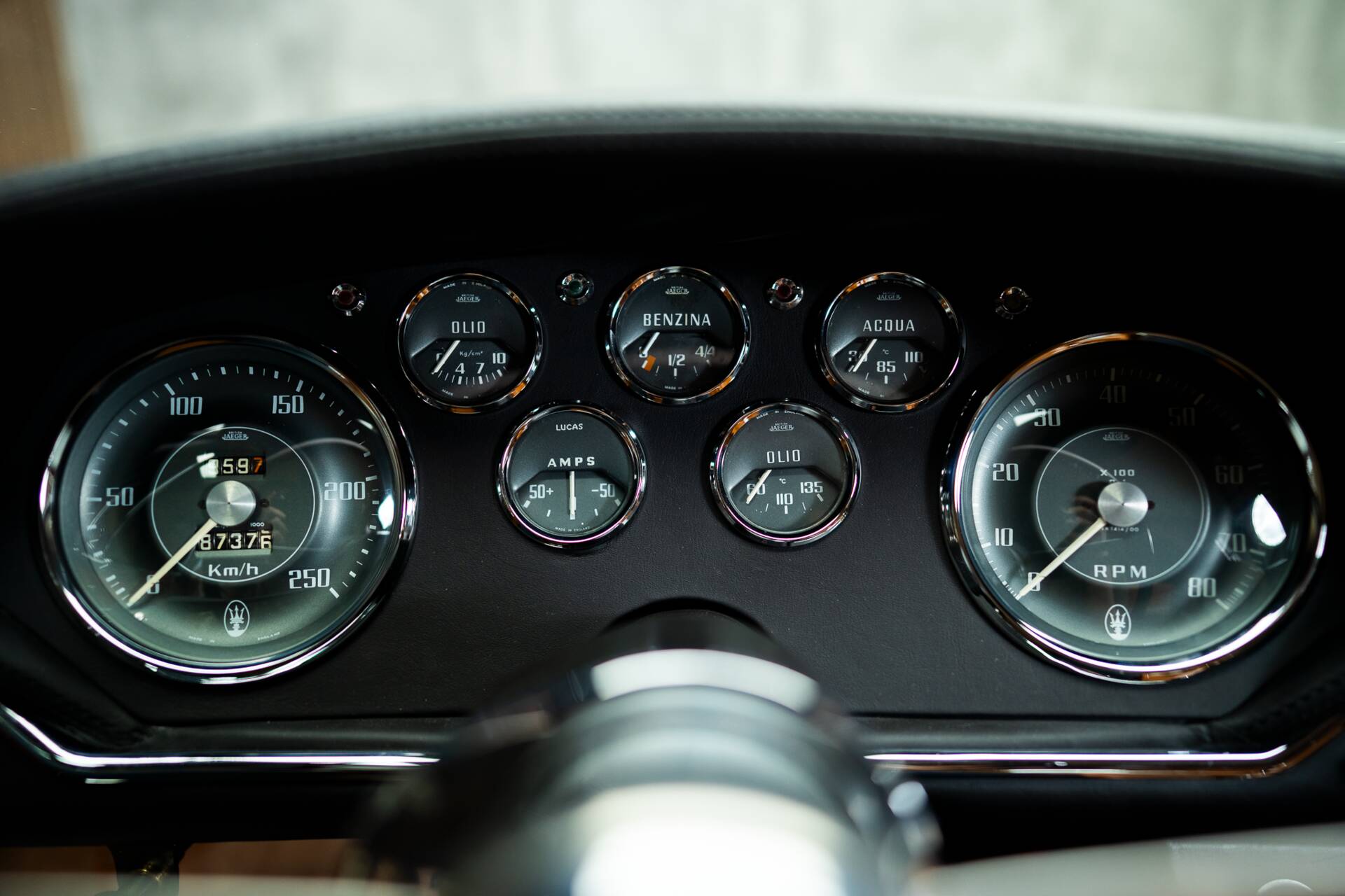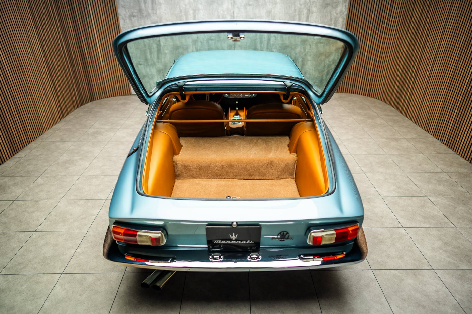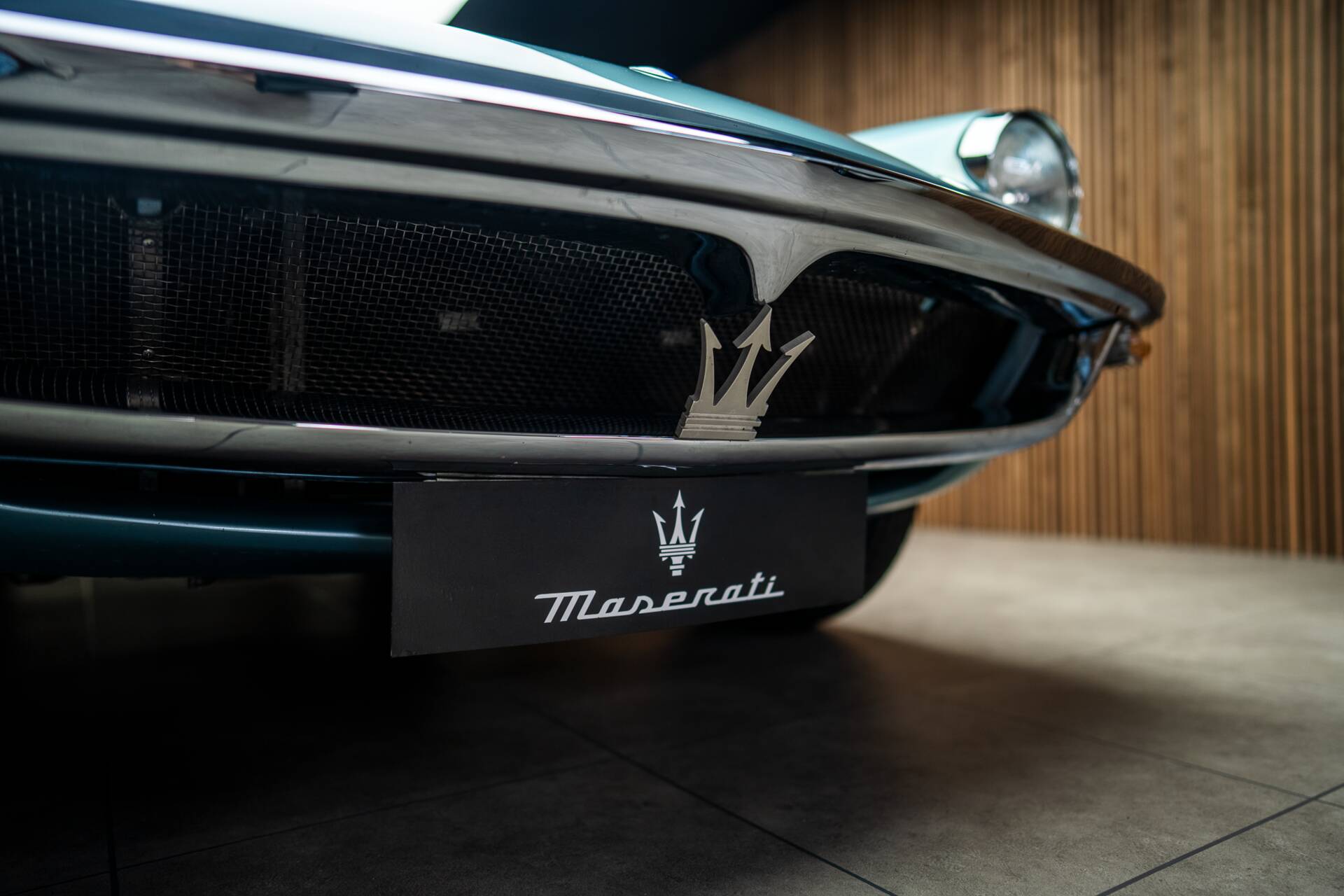 The work on the bodywork and painting took over 600 hours. All panel gaps are uniform, all surfaces are perfectly flat, and the paint finish is of high quality, smooth, and glossy. After that, a complete restoration of the mechanical components and interior began, taking over two years. The entire mechanical system and bodywork were restored by the best Maserati specialists in Europe; every bolt, seal, bearing, connection, and all technical parts were replaced. Engine, gearbox, braking system, instruments, interior – everything was disassembled and overhauled. Known weak points of the Mistral were addressed, improving durability and reliability. Even a custom-made rear axle brace, which enhances handling and road stability, was designed, manufactured, and installed. The chrome wire wheels by Borrani, size 16x6L RW3872 RECORD, were restored and fitted with genuine Michelin tires of the original size 6.00 x 16 Michelin X (Radial). All chrome parts were meticulously refinished, either re-chromed or polished. All glass panels were polished, the windshield was replaced, and all rubber seals were renewed. The seats were reupholstered, with a flatter seat cushion for the driver's seat to accommodate taller drivers. The leather used was sourced in England and meets the original specifications. It is vegetable tanned and has the authentic color and grain; the smell of the leather is wonderful. The carpet is also from Wilton and is a high-pile wool carpet – nothing like modern carpets! The carpet edging is made of leather and stitched with a double, hidden seam. A custom-designed, discreetly mounted air conditioning system ensures that even long summer journeys are comfortable. Over €300,000 was invested in this "Mistral 3700 GTI 2-seater". This car is better than when it left the factory in March 1965. It has been restored using modern technologies and tools, and features a corrosion-resistant dip-coating primer. The mechanics have been meticulously restored with expert knowledge and experience, using modern materials, and known weak points have been addressed, improving reliability. This includes, among other things, modern pistons and an improved cylinder head gasket. The fuel injection system, often considered temperamental, has been expertly overhauled and now operates reliably and precisely, allowing the vehicle to perform smoothly and confidently, both in city traffic and at high speeds on the highway. The custom-made stainless steel exhaust system, built to original specifications, gives the engine a truly captivating sound! This car is a rare collector's item and not comparable to an average Mistral on the market. This Mistral is part of the fantastic "Tridente Colonia - Collezione Perfetta del Curbs Club" collection of Maserati vehicles, all in comparable condition.
