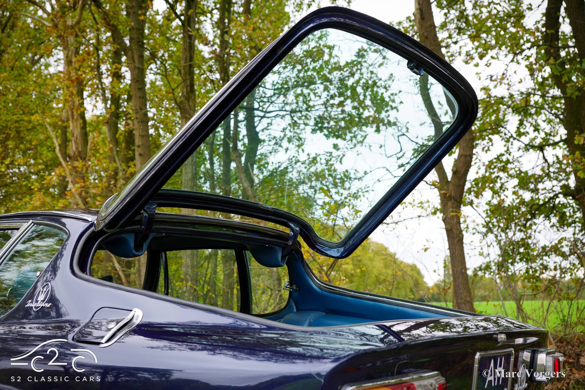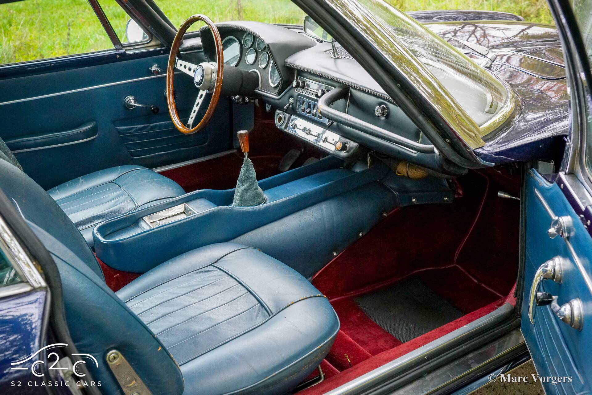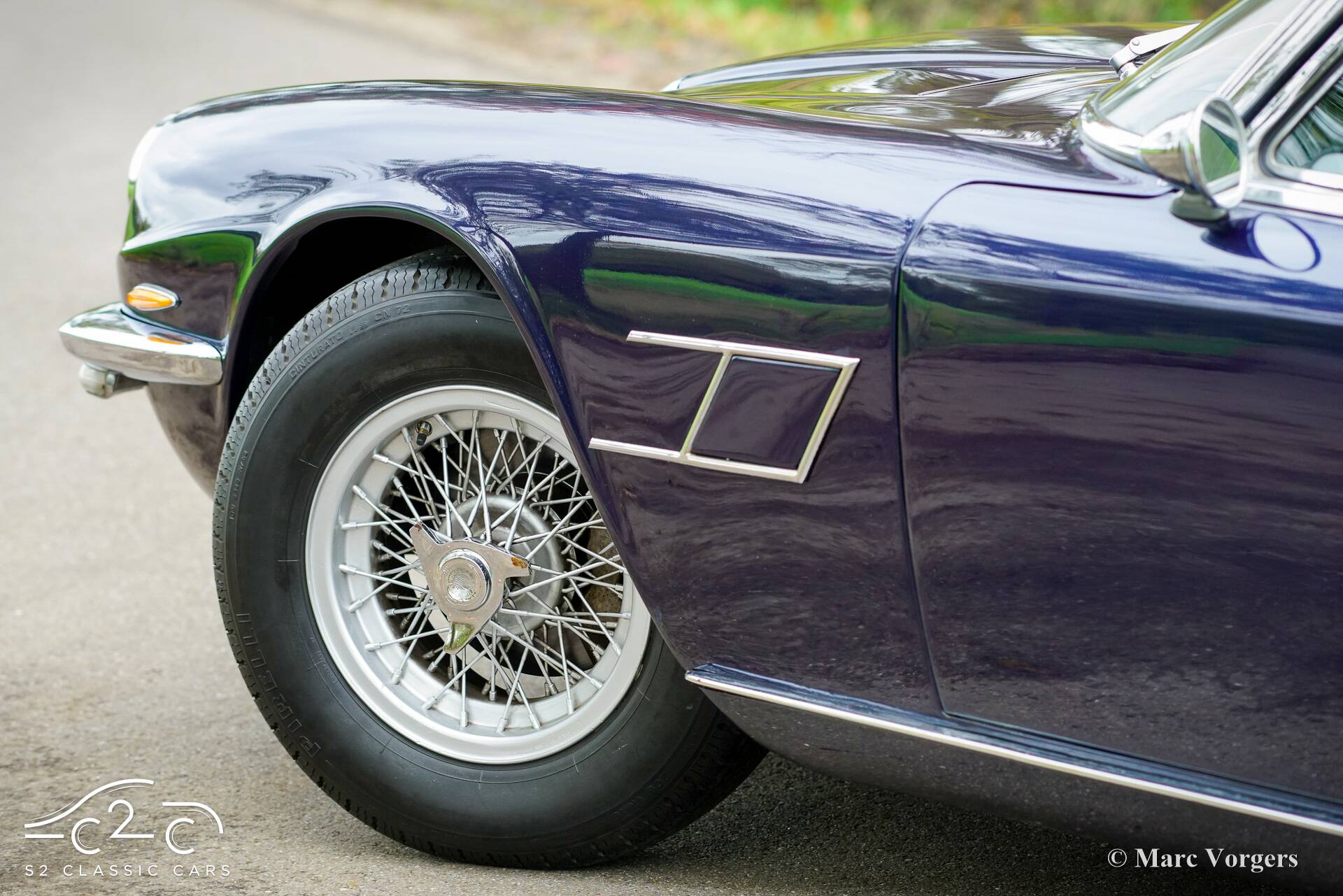 The Maserati Mistral Coupé was introduced in 1963 and only 844 examples were built fitted with a 3.5, 3.7 and 4.0 Litre six cylinder in-line engines featuring double ignition (and twin spark plugs per cylinder) and Lucas mechanical fuel injection. In 1966 the 265 bhp top of the line 4.0 Litre engine became optionally available. The wonderful GT design by Pietro Frua distinguished itself with a wonderful combination of flowing curved and sharper edged body lines and a large, glazed tailgate giving the car a sporty yet practical appearance.