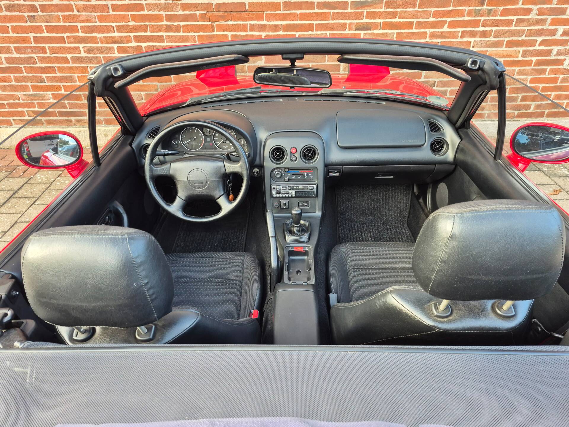 Technik: Der technische Zustand ist durch regelmäßige Wartungen und jüngst erfolgte Servicearbeiten als einwandfrei zu bewerten. Im Juni 2024 wurde eine große Inspektion mit Ölwechsel, neuem Zahnriemen, Wasserpumpe sowie Keilrippenriemen durchgeführt. Der Wagen weist einen nachweislich belegten Original-Kilometerstand von 45.461 km auf. Die Kombination aus lückenloser Servicehistorie, erstklassiger Rostvorsorge und Sorgfalt in der Pflege unterstreicht die besondere Stellung dieses Fahrzeugs unter den erhältlichen NA-Modellen. Zum aktuellen Zustand der Verschleißteile und des Verdecks liegen keine detaillierten Angaben vor.