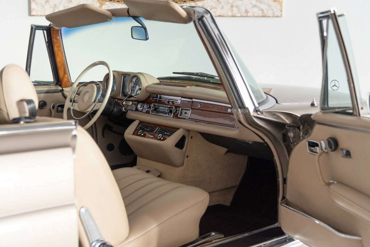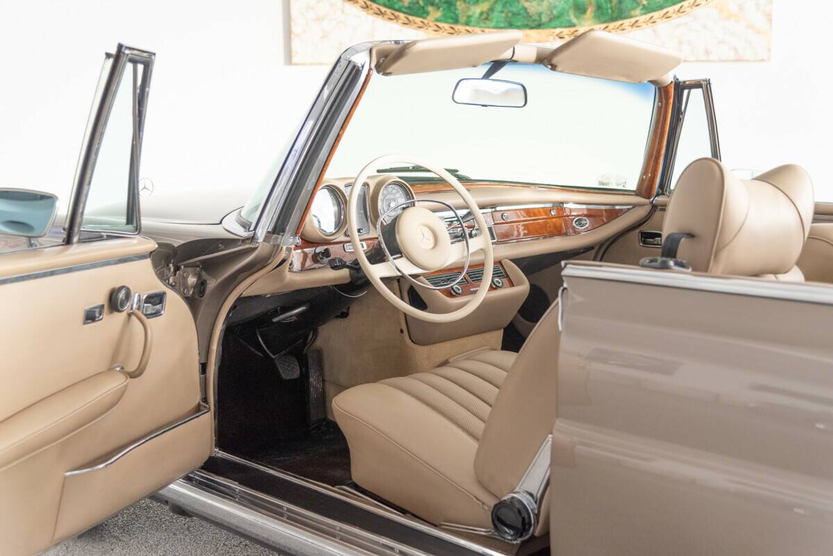 Zum Verkauf steht ein außergewöhnlich schönes Mercedes-Benz 280 SE 3.5 Cabriolet aus dem Jahr 1971, eines der begehrtesten und seltensten Modelle der W111-Baureihe. Dieses Exemplar verfügt über Matching Numbers und präsentiert sich in der stilvollen Farbe graubeige metallic, kombiniert mit einer hellbeigen Lederausstattung, die dem Fahrzeug eine besonders harmonische und edle Ausstrahlung verleiht.Auf der Basis seiner erstklassig erhaltenen Karosseriesubstanz wurde der Wagen umfassend und fachgerecht restauriert und überzeugt heute durch einen außergewöhnlich guten Gesamtzustand. Die hohe Qualität der Arbeiten zeigt sich in der beeindruckenden optischen Erscheinung ebenso wie in der technischen Solidität des Fahrzeugs. Der kultivierte 3.5-Liter-V8-Motor unterstreicht den exklusiven Charakter dieses Modells und macht das Cabriolet zu einem gesuchten Klassiker mit langfristigem Wertpotenzial.Zwischen 2010 und 2014 befand sich das Fahrzeug in der Schweiz, was seine gepflegte Historie zusätzlich unterstreicht.Insgesamt präsentiert sich dieses 280 SE 3.5 Cabriolet als ein herausragendes und äußerst elegantes Fahrzeug für anspruchsvolle Liebhaber und Sammler, die besonderen Wert auf Originalität, Stil und Authentizität legen. Der nach Werksangaben von September 1967 bis Oktober 1971 produzierte 280 SE Cabriolet W111 ist der Nachfolger des W105 und W180. Mit nur 1.390 produzierten Exemplaren ist er ein wahrer Exot.Der Produktionsbeginn der Baureihe begann jedoch schon im Jahr 1959 mit den Modellen 220 (b), 220 S(b) und 220 SE (b) und ab 1965 dem 230 S. Eine Neuentwicklung war das von 1969 bis 1971 serienmäßig verbaute 280 SE 3.5 Aggregat. Dieses Aggregat erinnerte durch sein brummelndes Laufgeräusch an amerikanische Spitzenmodelle. Man sollte wissen, dass die USA damals der Hauptabsatzmarkt für die großen Mercedes-Benz Modelle waren.Ein Merkmal der Modelle W111/112 war die weiterentwickelte Knautschzone vorne und hinten, ein Sicherheitslenkrad mit Prallplatte und Keilzapfentürschlösser, welche ein Aufspringen bei einem Unfall verhindern.Das Mercedes-Benz 280 SE-Cabriolet wurde serienmäßig mit einem 4-Gang Schaltgetriebe ausgeliefert, wer noch etwas drauflegte, bekam das Automatikgetriebe. Gleich blieben die Optionen der Lenkradschaltung oder der Schalthebel in der Wagenmitte.1969 betrug der Neuwagenpreis eines 280 SE Cabriolets ohne Extras 28.750,00 DM. 2.000,00 DM mehr als das Coupé. Wer das Automatikgetriebe wollte, musste nochmals 1.440,00 DM drauflegen. Das es lange Zeit keinen Nachfolger des 4-sitzigen Cabriolets gab, waren die 280 SE Cabriolets lange in erster Hand.Heute gehört dieses Modell zu den gesuchten Mercedes-Oldtimer Modellen und verzeichnet eine rasante Wertsteigerung.