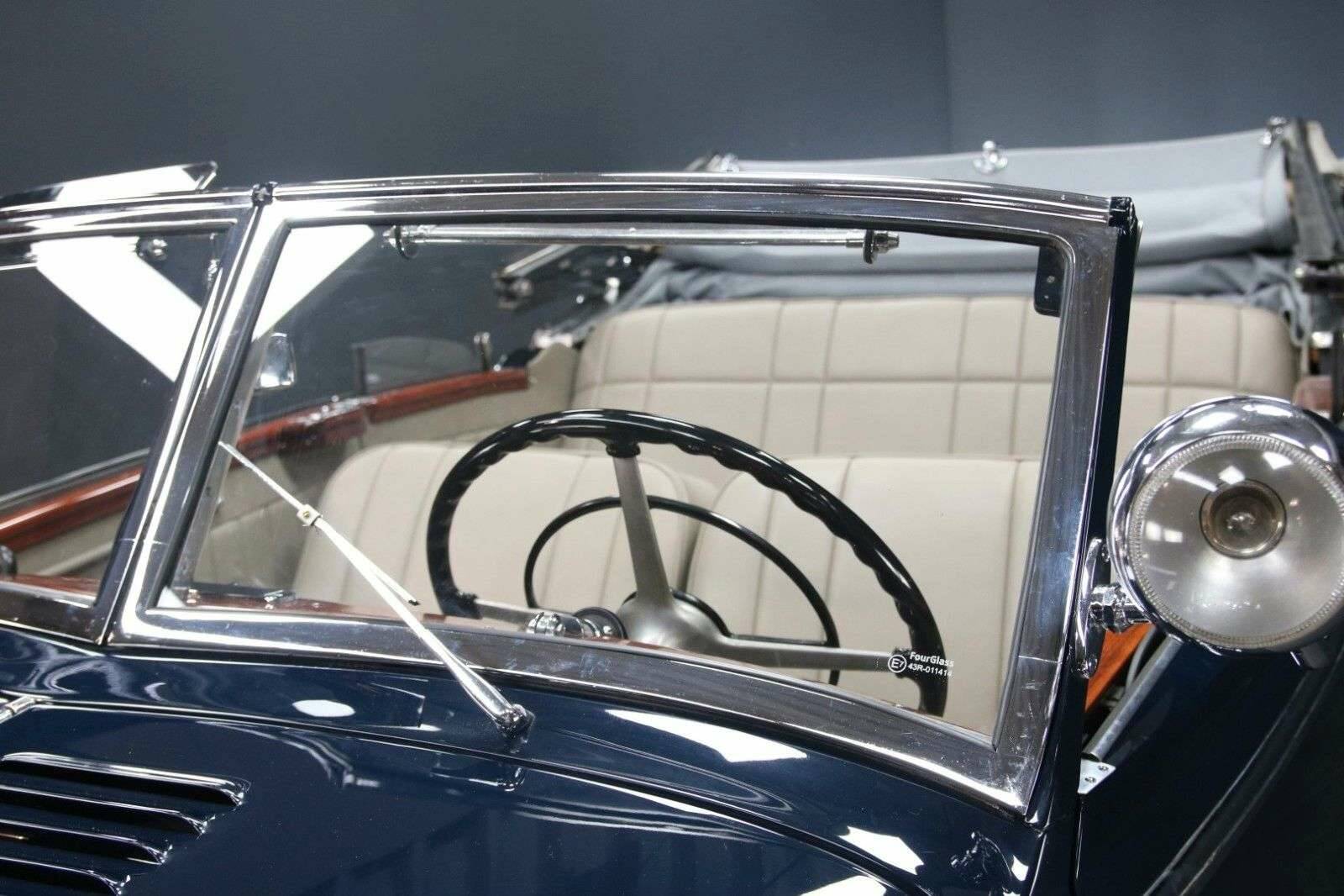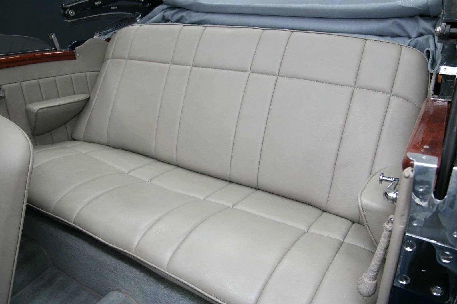 Da dies ein in Mannheim gefertigter Wagen ist und sämtliche Datenkarten der dort hergestellten Mercedes leider vernichtet wurden, müssen wir auf die glücklicherweise vorhandenen Fotos des unrestaurierten Scheunenfundes zurückgreifen. Auch dort sieht man das Cabrio in einem Blauton mit hellgrauem Leder.