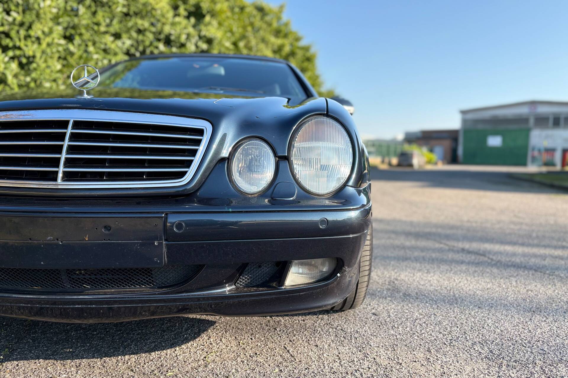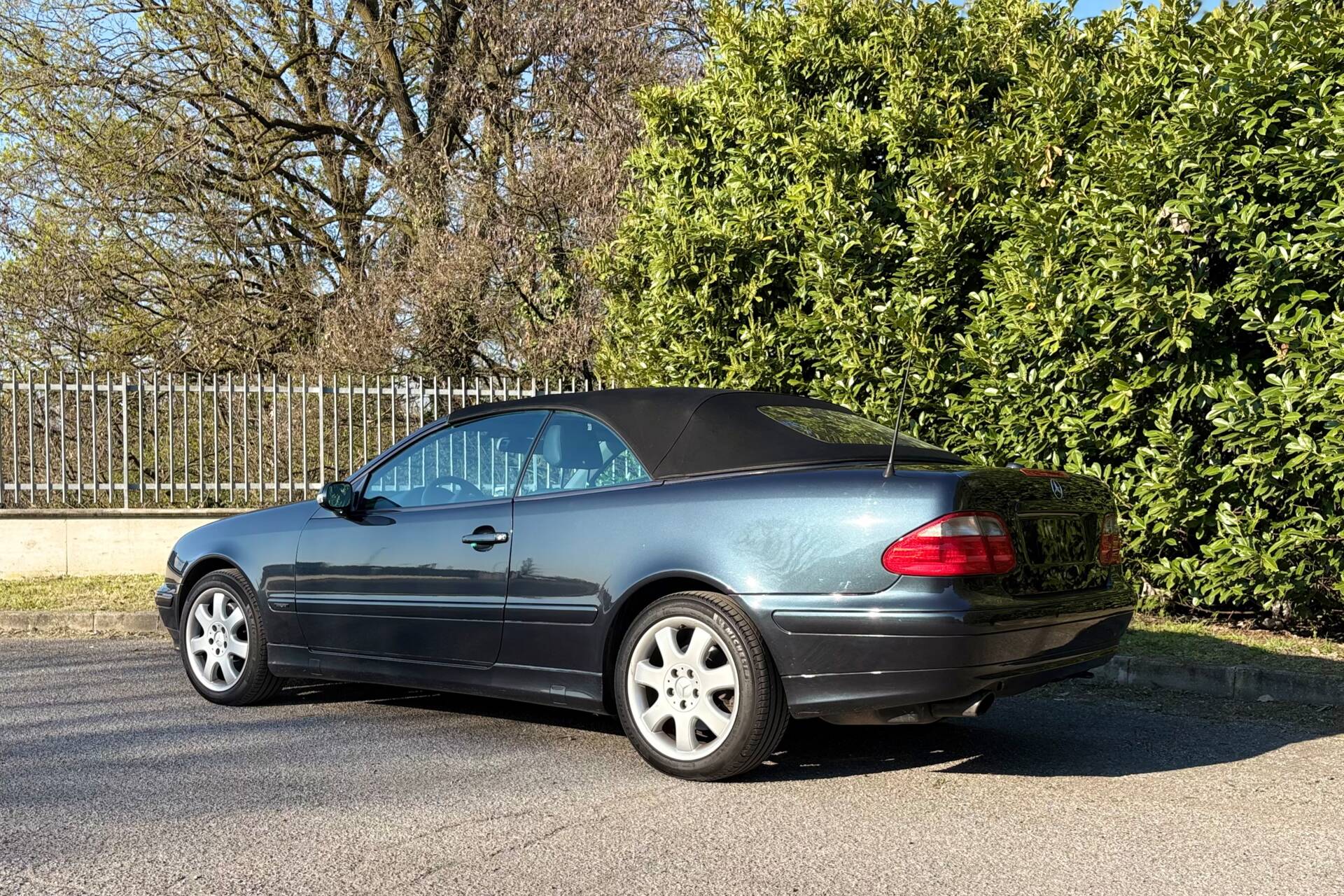 La Mercedes-Benz CLK 430 Cabriolet è una vettura che incarna con naturalezza l’eleganza tipica della produzione di Stoccarda di fine anni ’90, con una linea pulita e proporzionata che ancora oggi appare equilibrata e priva di eccessi. Il profilo è quello classico della gran turismo scoperta: cofano lungo, coda compatta e una capote in tela perfettamente integrata nel disegno della carrozzeria, capace di mantenere continuità visiva sia da chiusa che da aperta. L’impostazione generale privilegia il comfort e la qualità costruttiva, con un’impronta progettuale orientata più alla solidità e alla durata nel tempo che alla ricerca di effetti scenici.
