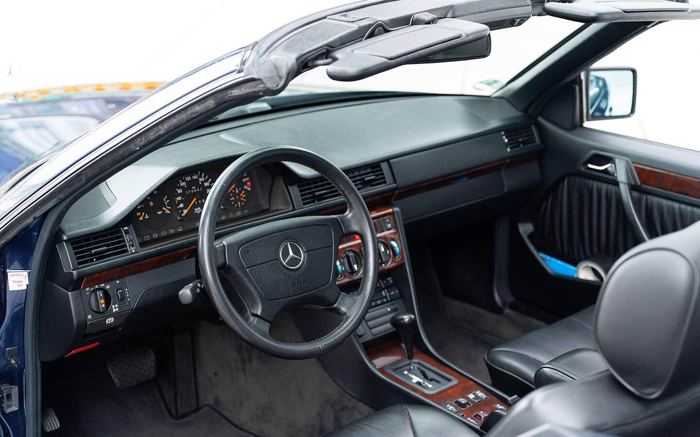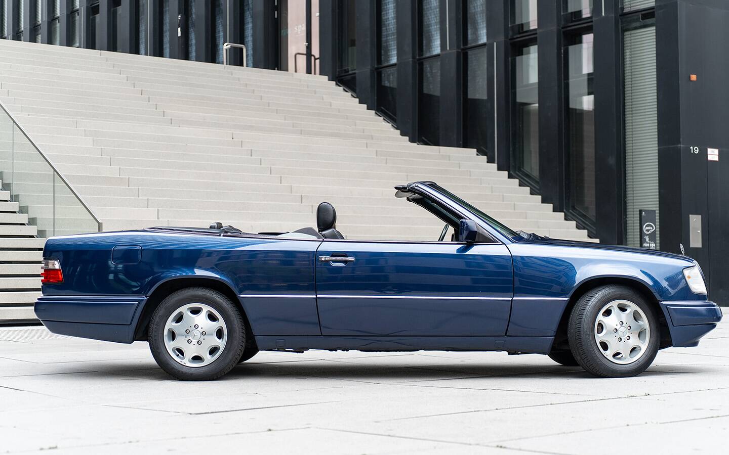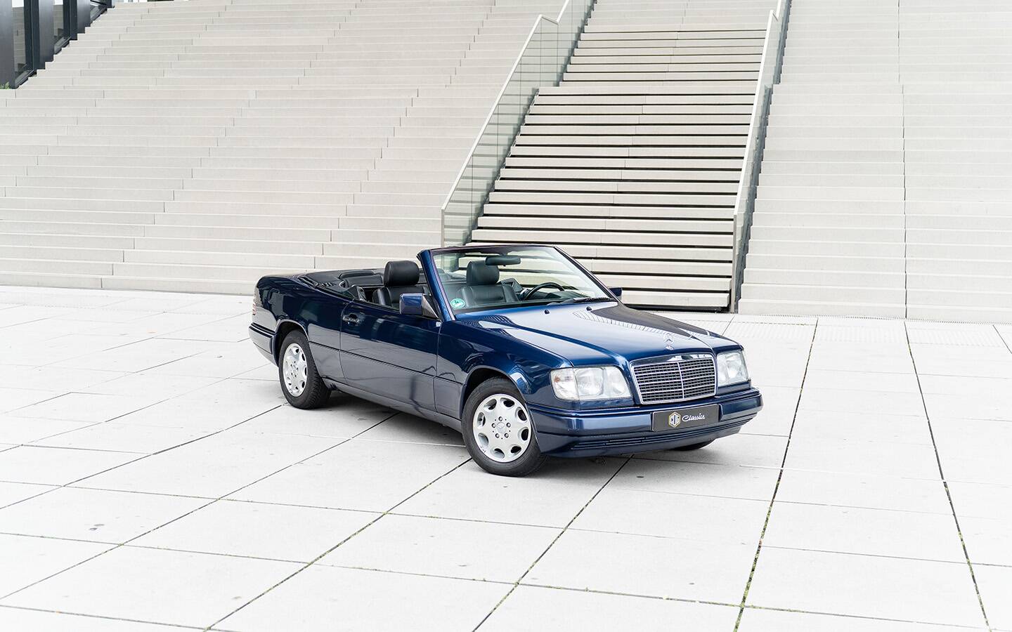 Kaum ein Mercedes verkörpert die Tugenden der Marke so eindrucksvoll wie der W124: solide, zeitlos und nahezu unverwüstlich. Dieses E 220 Cabriolet in Azuritblau Metallic mit schwarzem Lederinterieur ist ein außergewöhnlich schönes Beispiel dieser Ära – ein Wagen, der seine gesamte Lebenszeit in einer einzigen Familie verbracht hat.