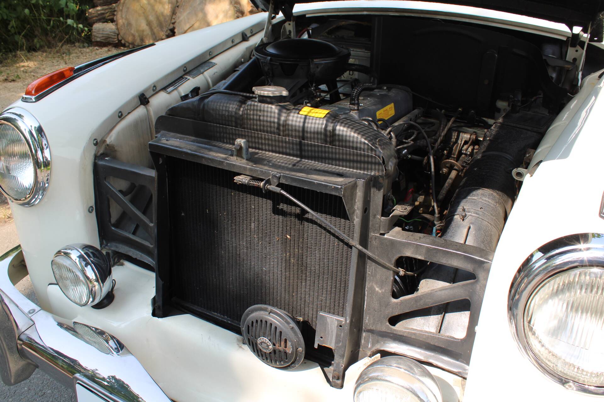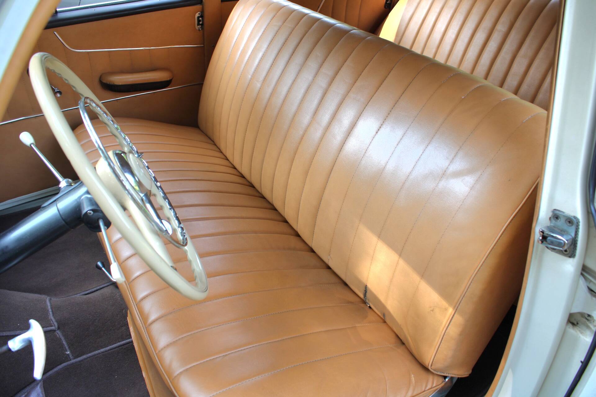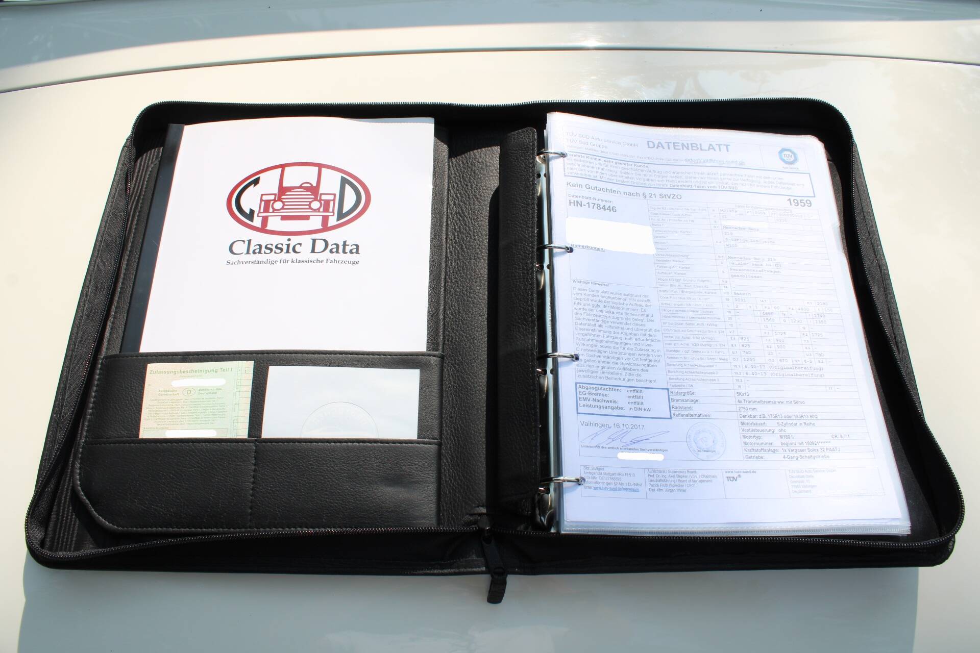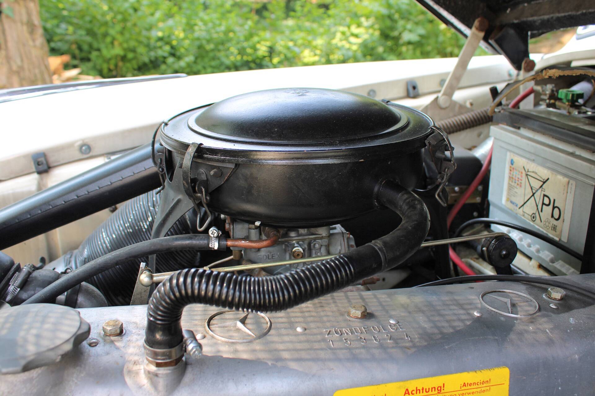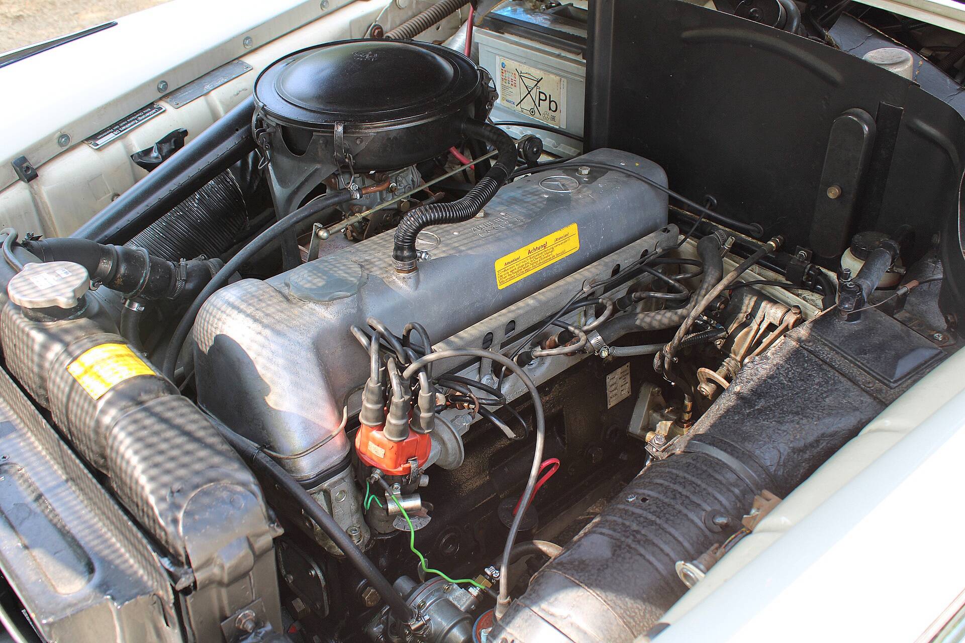 The Mercedes 219 was first introduced in 1956 and remained on sale until 1959. It represented an intermediate stage between the four-cylinder 190 model and the 220 S. The special feature of the 219 was that it had the front end and more powerful engine of the 220 and was only identical to the four-cylinder 190 model from the A-pillar onwards. As it was only produced half as often as the 220 due to lower demand, it is now one of the rarest models of its kind. According to the Federal Motor Transport Authority, there were only 89 vehicles still on German roads in 2005, making it a highly sought-after model. It is powered by a six-cylinder in-line engine (M180 II), which was the first new six-cylinder engine to be introduced after the Second World War. It has a Solex 32 single carburettor, produces approx. 90 hp and reaches a top speed of 148 km/h.