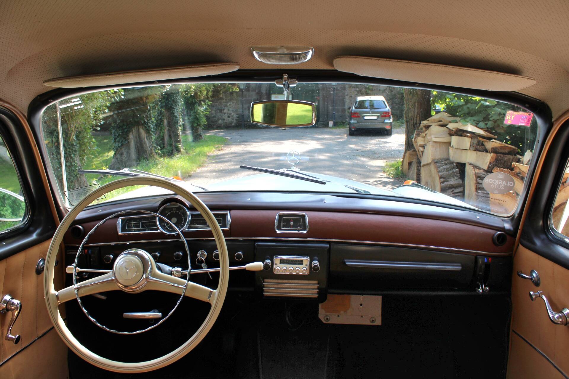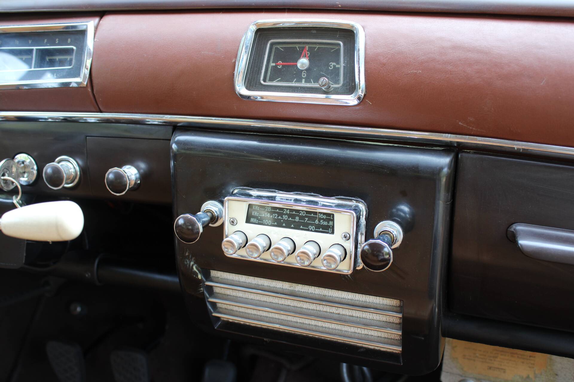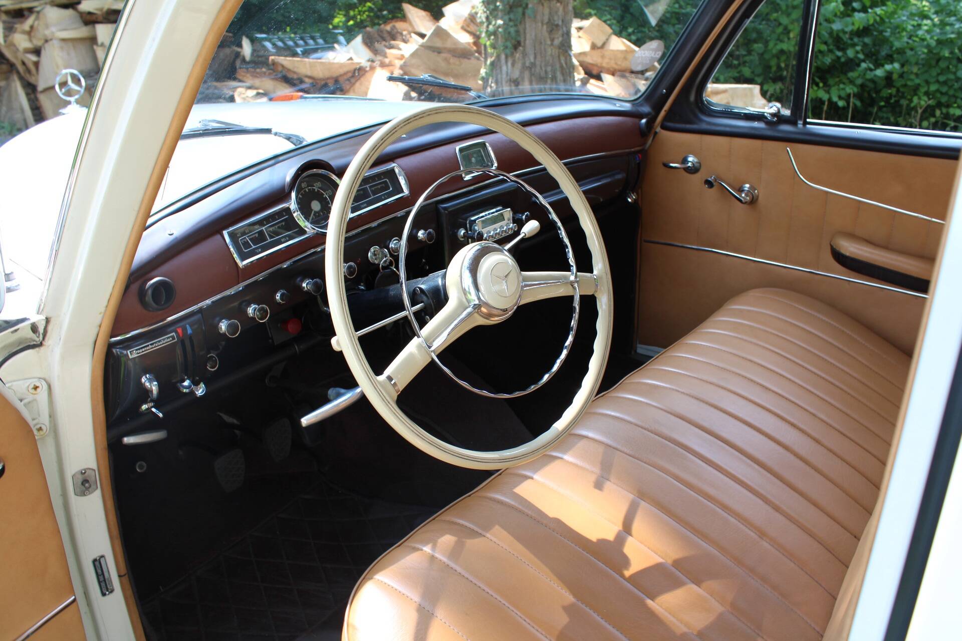 The 219 was positioned in the luxury class in the 1950s and offered a high level of driving comfort with its independent front suspension and rear swing axle – then as now. The continuous light brown bench seats also contributed to this. Power was transmitted via a 4-speed manual gearbox as standard. Our model is additionally equipped with an analogue clock and a radio.