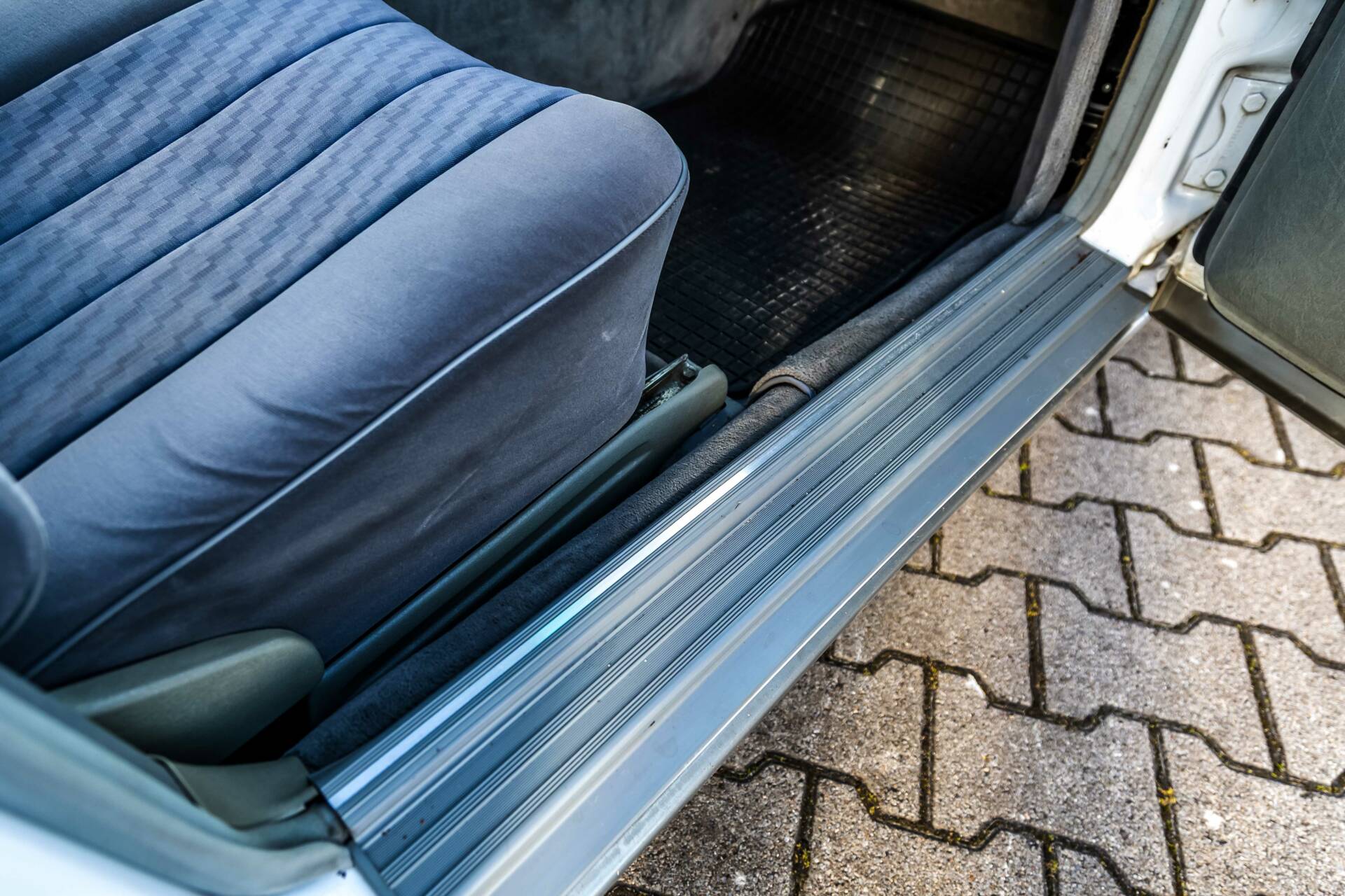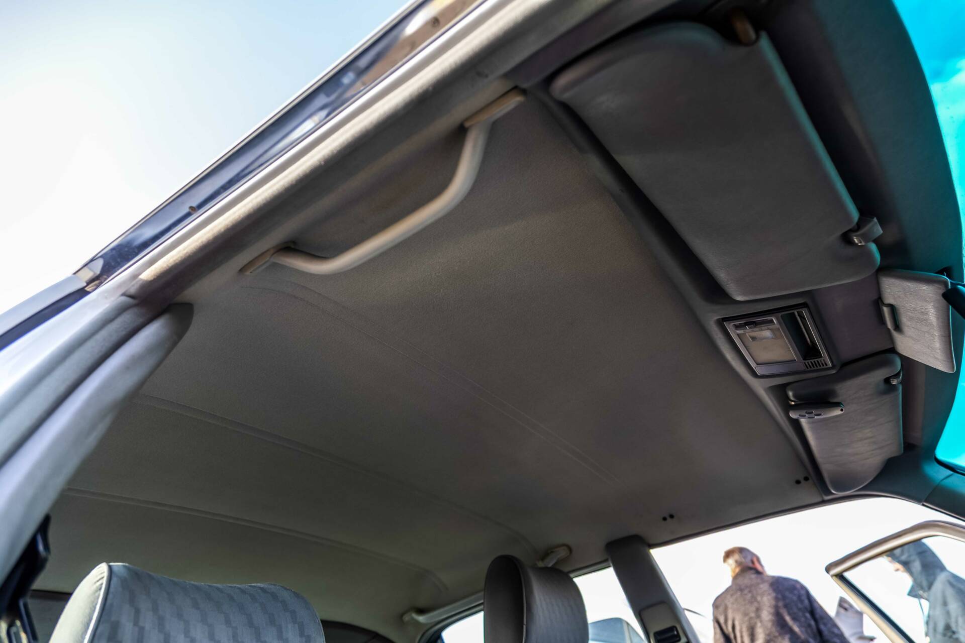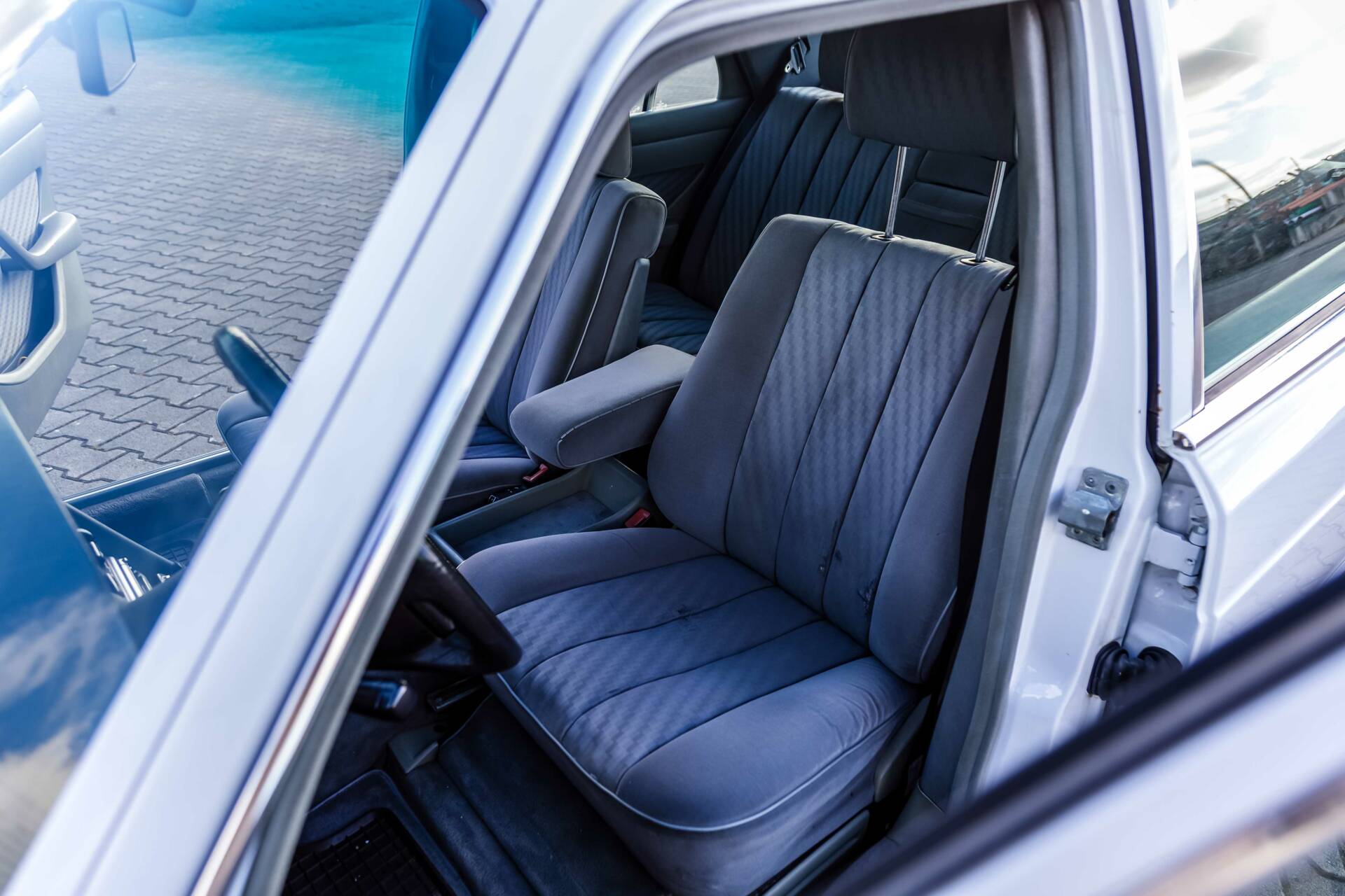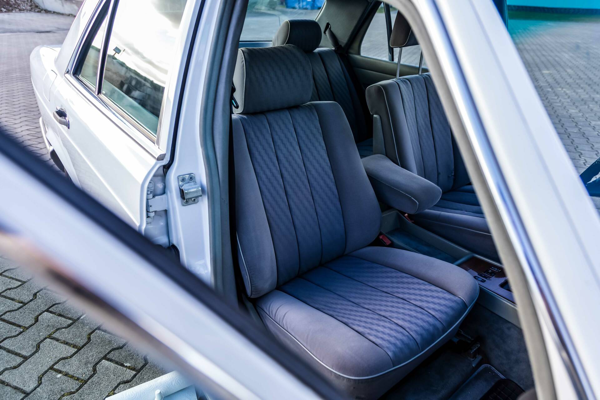 Keine vergilbten Ledersitze oder wilde Umbauten. Stattdessen ein sachlicher, aber gepflegter Innenraum in grauem Stoff. Hier fühlt man sich eher wie in einem gut klimatisierten Vorstandsbüro als in einem Auto.