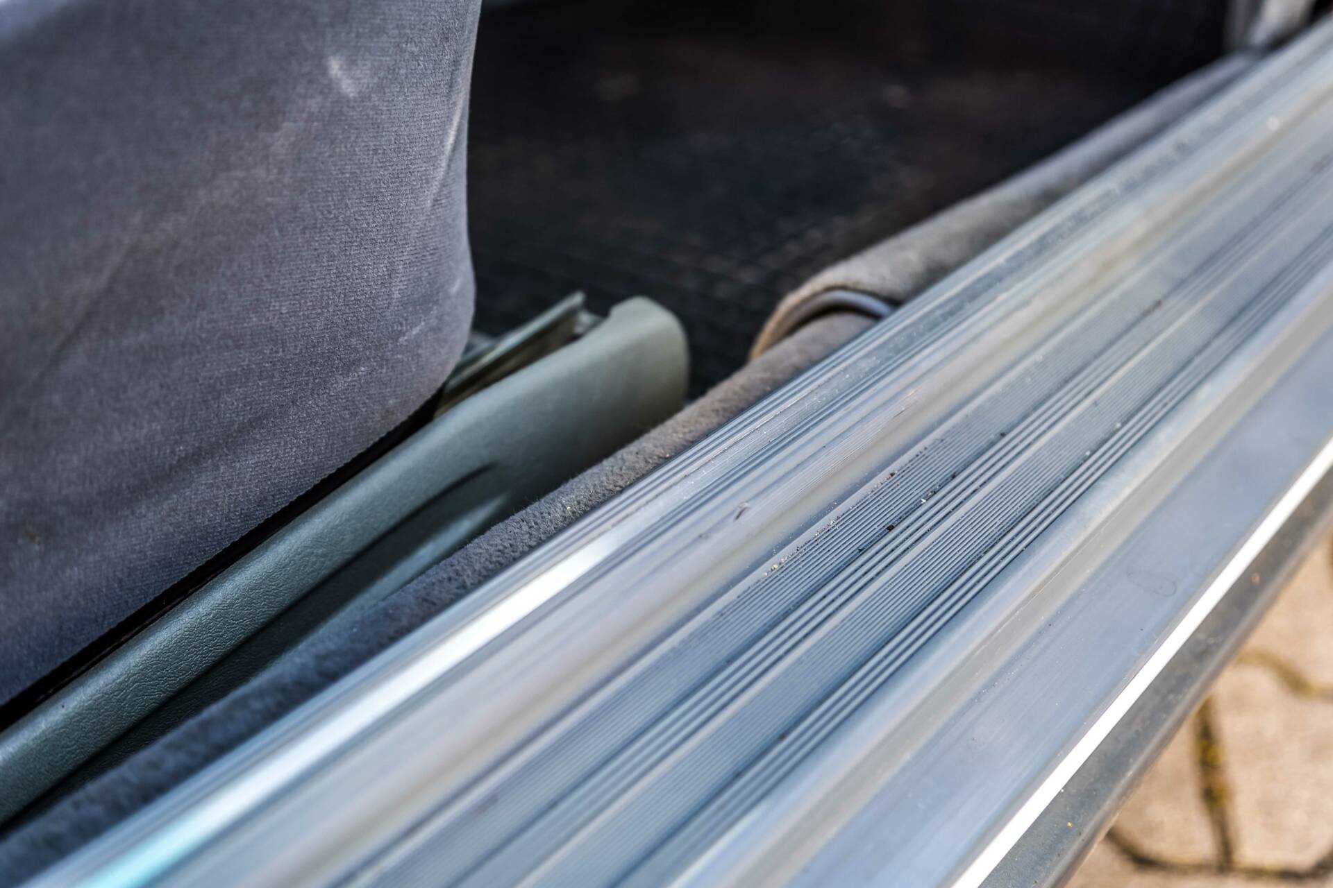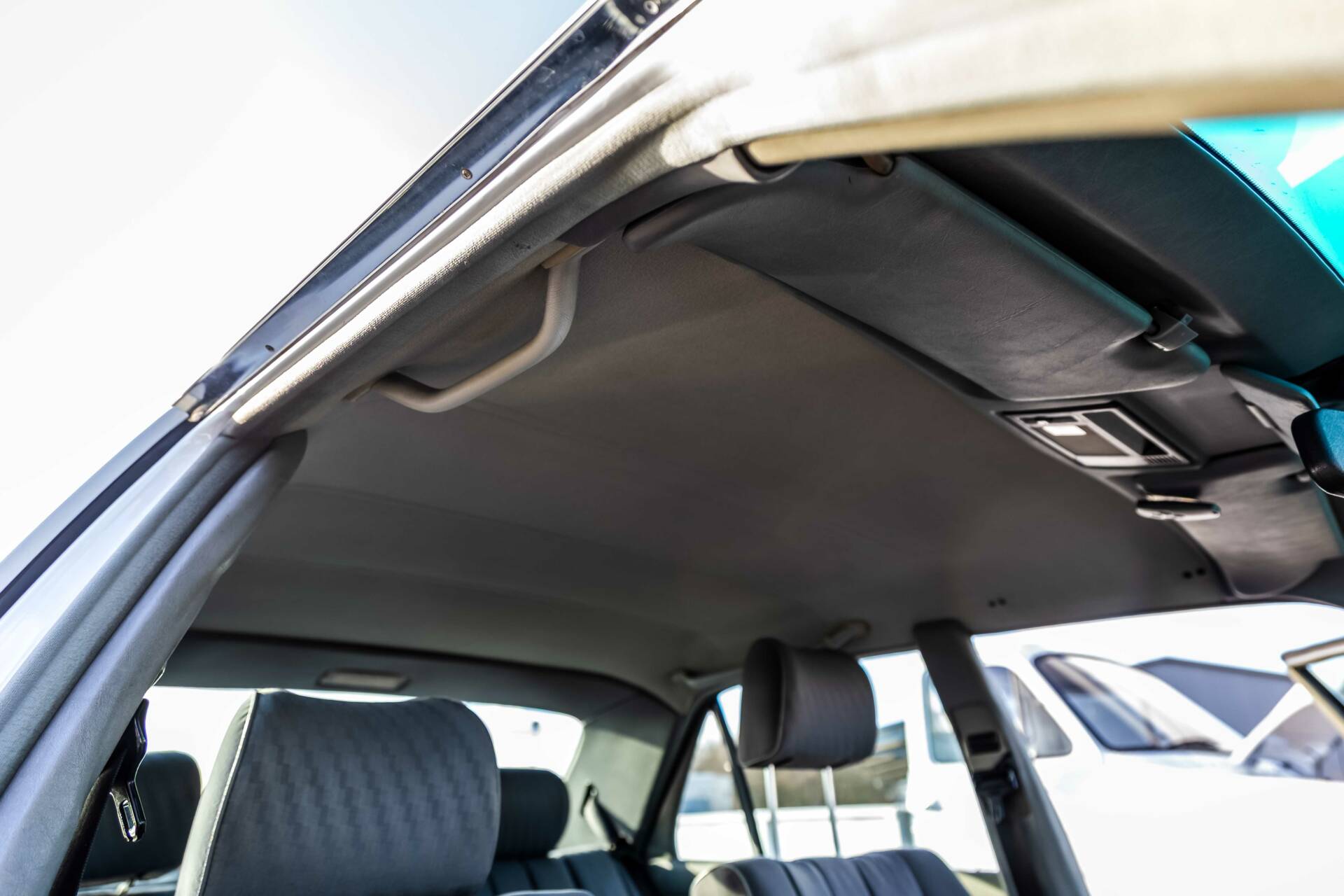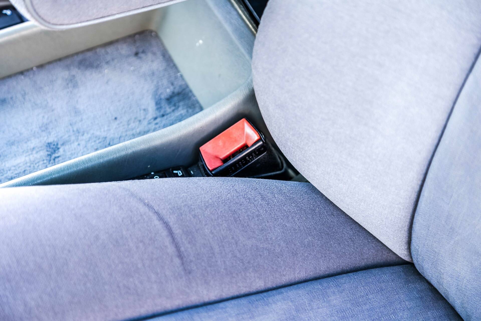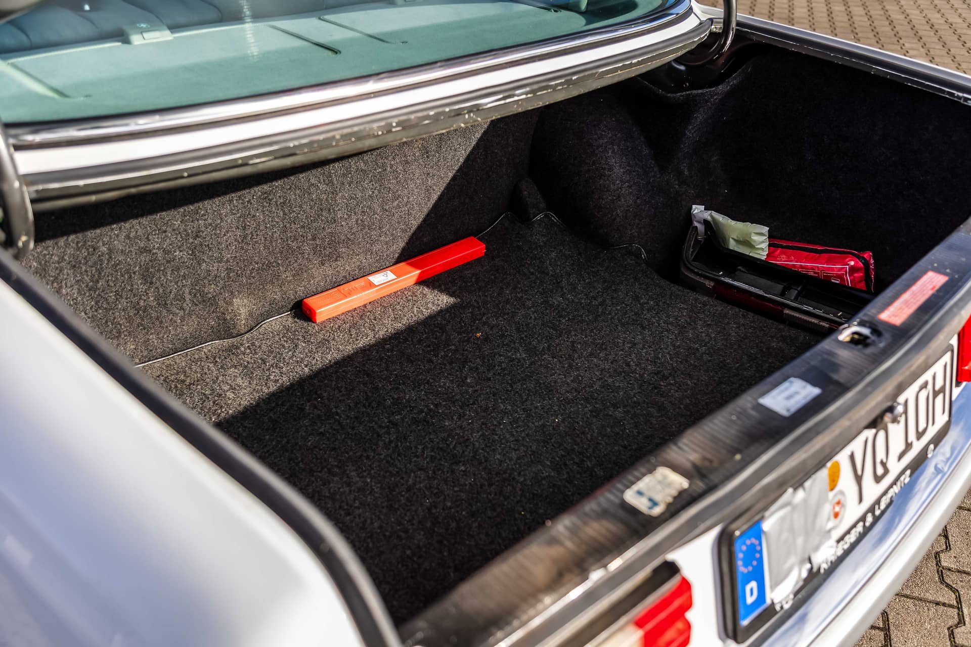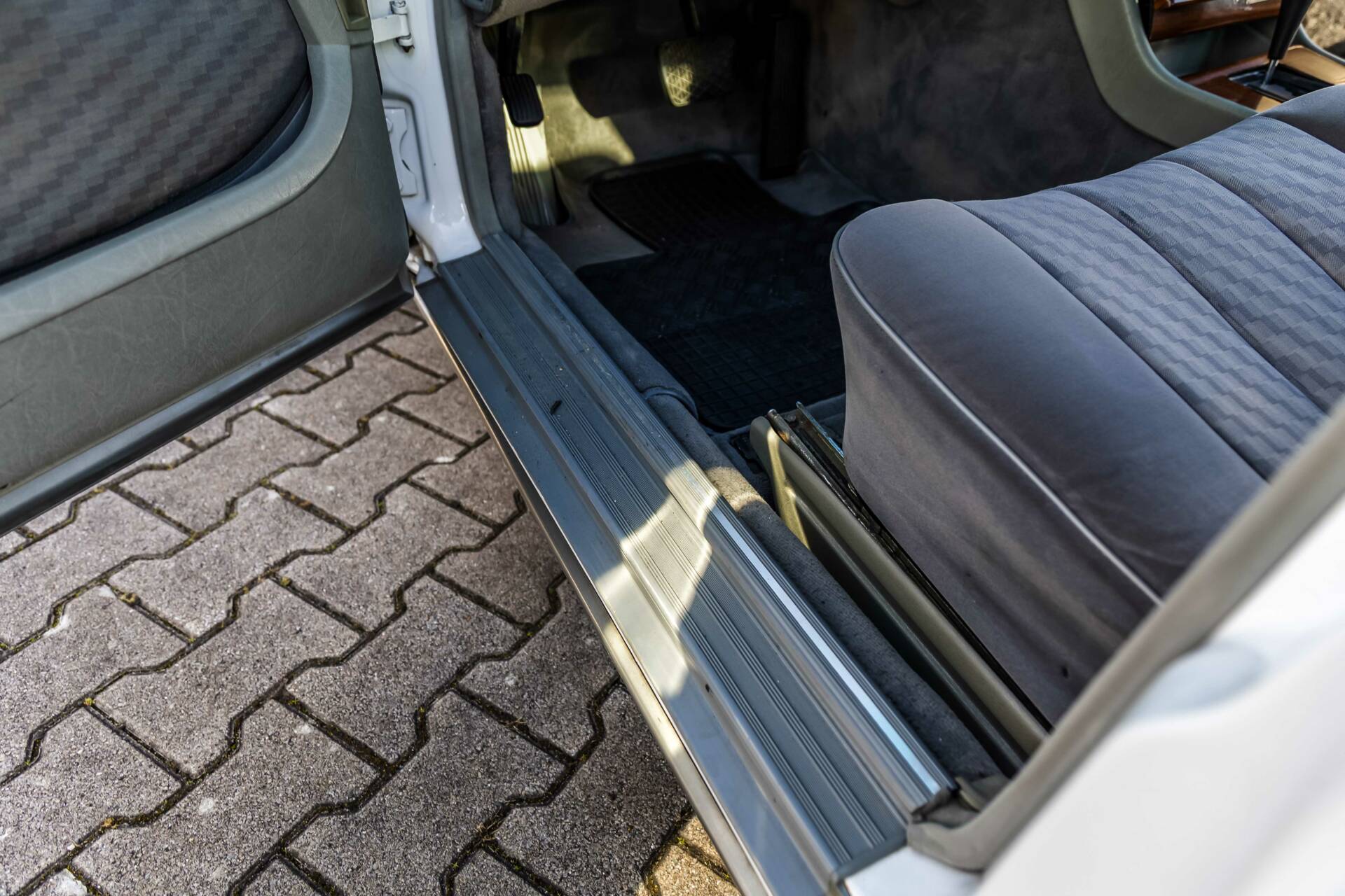 Keine vergilbten Ledersitze oder wilde Umbauten. Stattdessen ein sachlicher, aber gepflegter Innenraum in grauem Stoff. Hier fühlt man sich eher wie in einem gut klimatisierten Vorstandsbüro als in einem Auto.