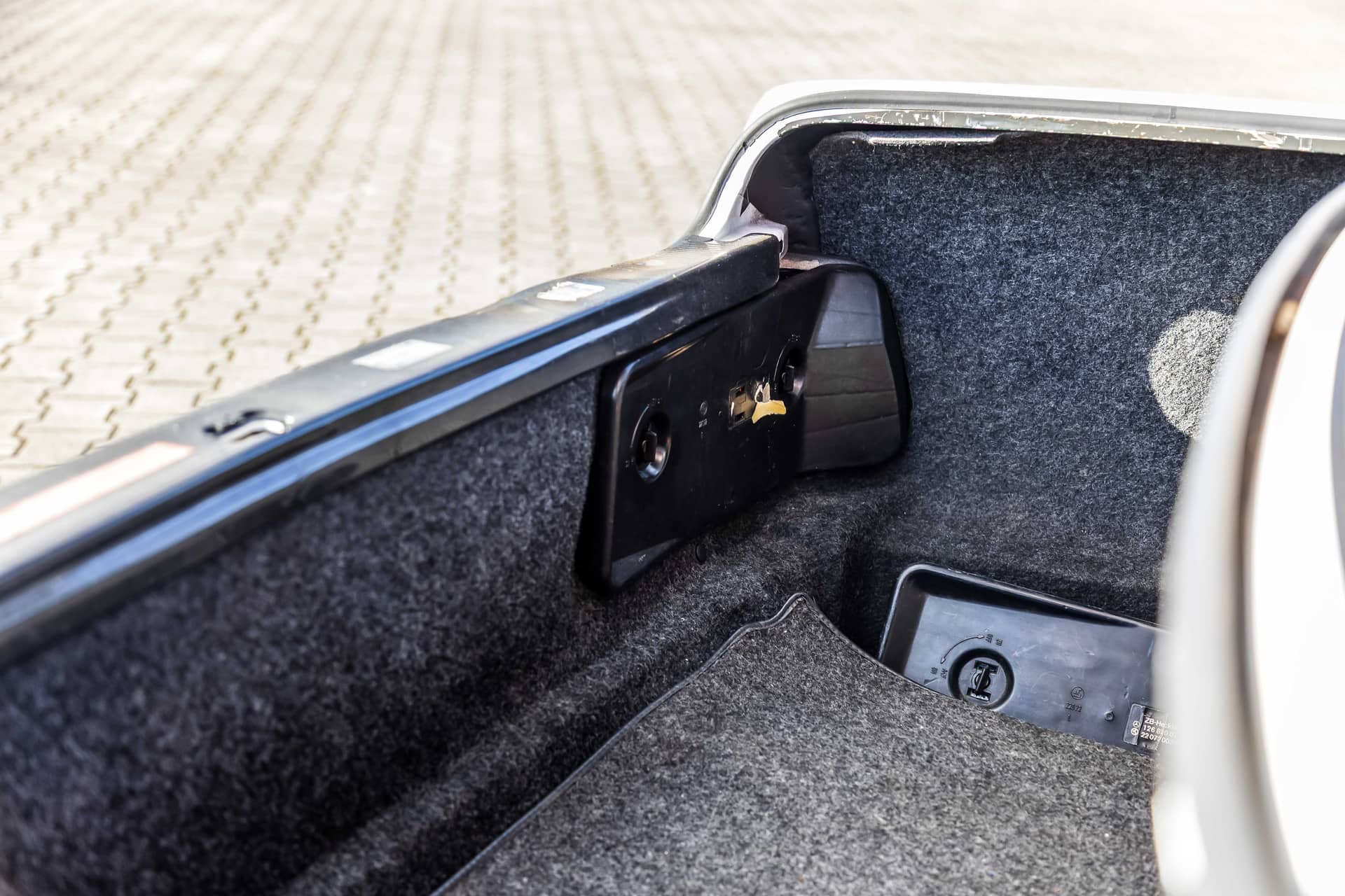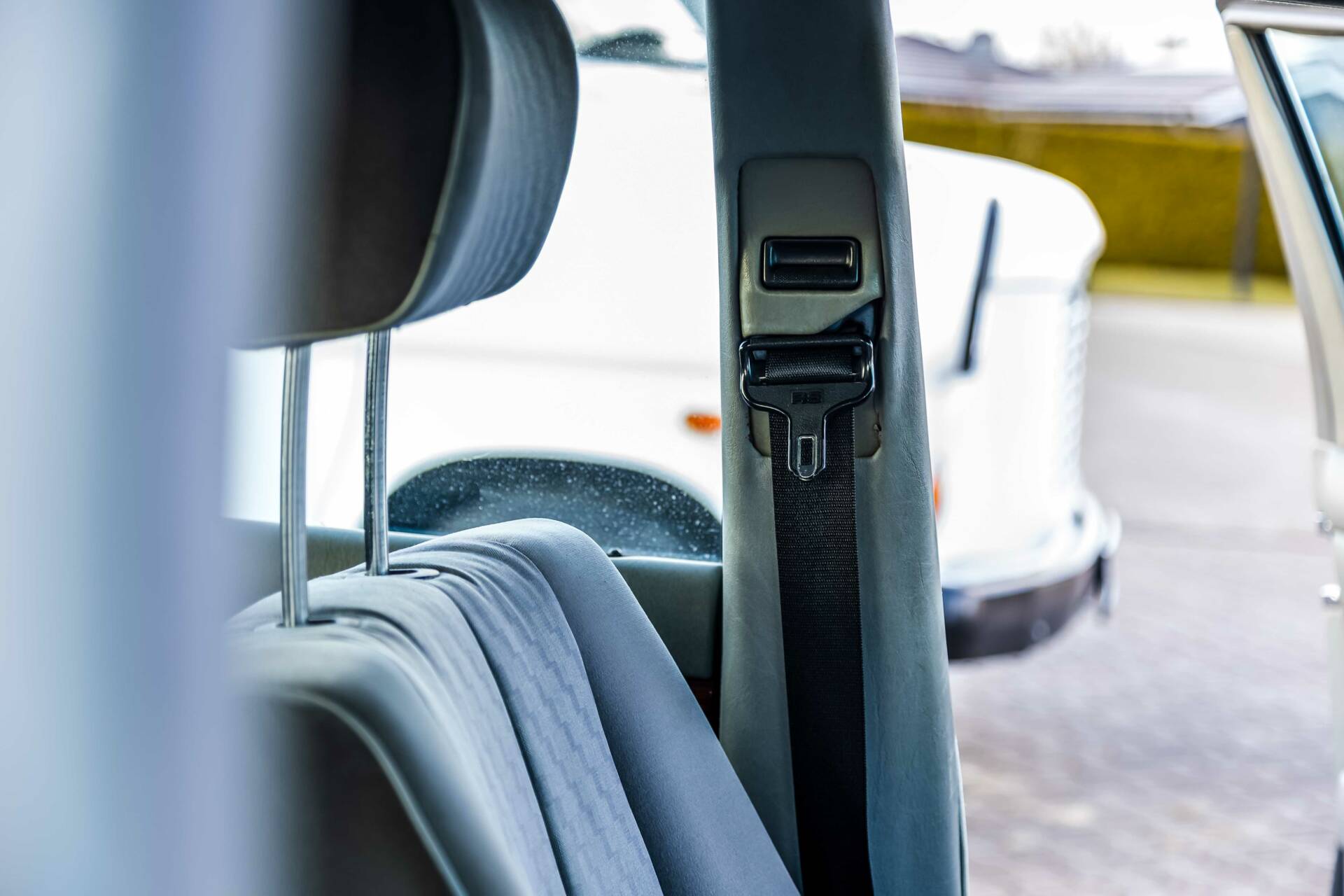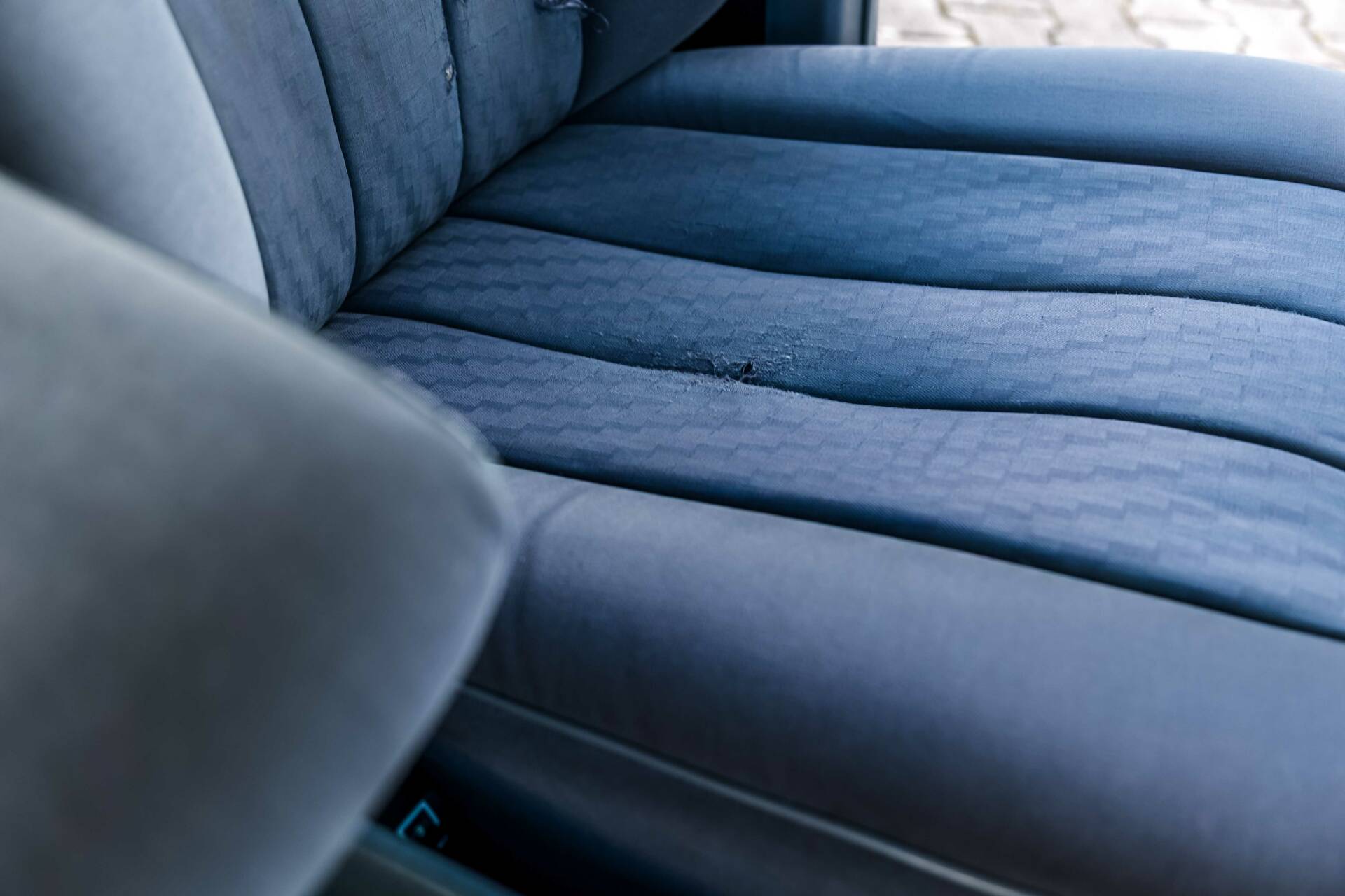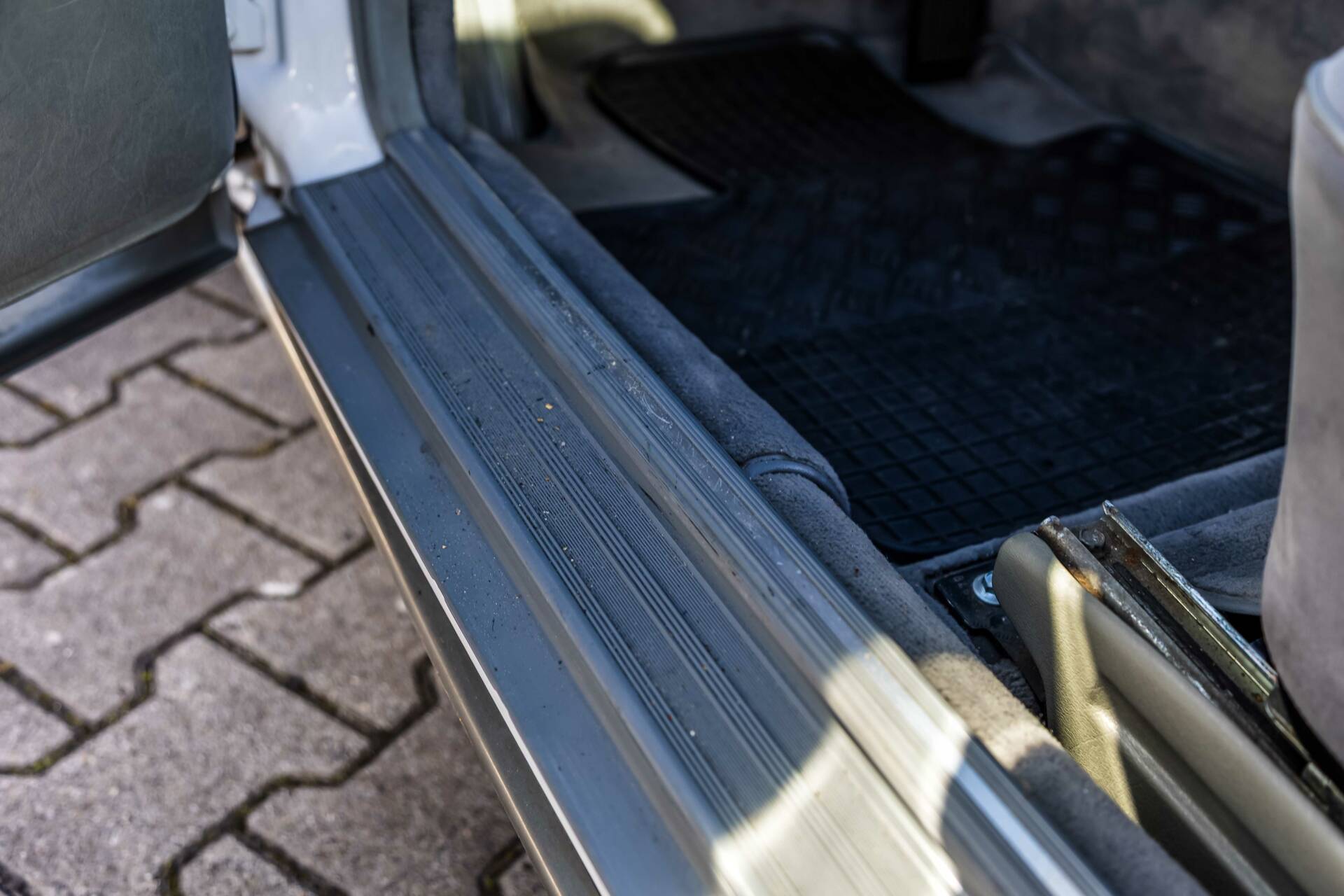 Keine vergilbten Ledersitze oder wilde Umbauten. Stattdessen ein sachlicher, aber gepflegter Innenraum in grauem Stoff. Hier fühlt man sich eher wie in einem gut klimatisierten Vorstandsbüro als in einem Auto.