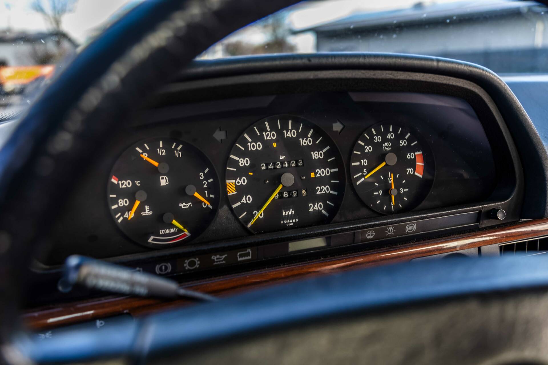 Die Baureihe W126 trat 1979 auf der IAA an, um die Welt der Luxuslimousinen neu zu ordnen – und genau das tat sie. Technisch durchdachter als der W116, aerodynamisch feiner, formschöner sowieso. Rund 890.000 Mal wurde er gebaut – bis heute ist das die meistverkaufte Oberklasselimousine von Mercedes. Und dieser hier? Ein 420 SE mit Kat, 1985 geboren und voll im Saft der 80er.