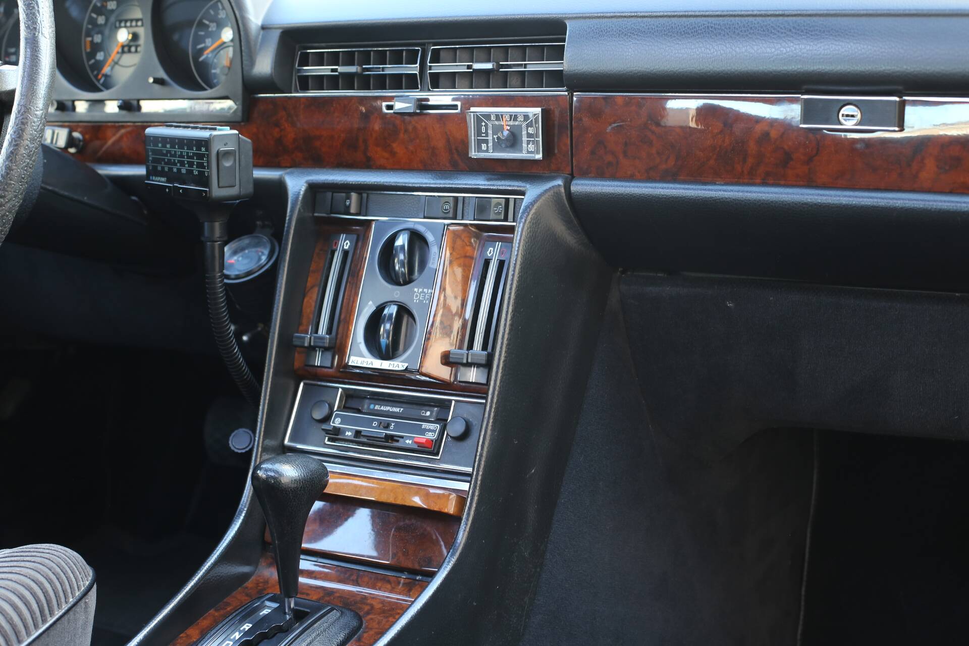 A particularly charming period feature is the top-of-the-range Blaupunkt radio cassette system, which was among the most expensive options available at the time. Complete with microphone and a separate, flexible cockpit control unit, and fully operational, it adds a distinctive touch of vintage character.