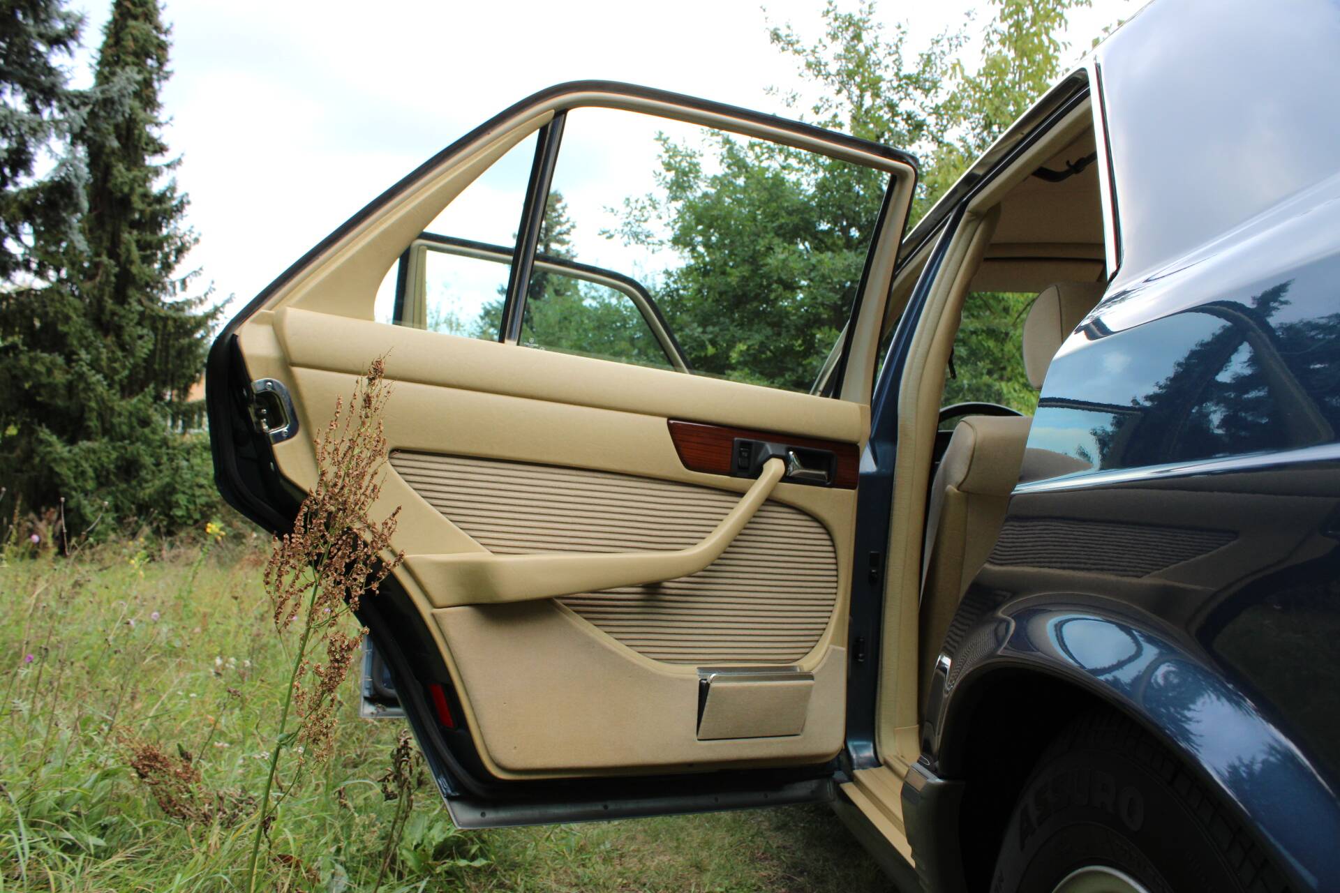 Innenausstattung Velours, Wurzelholzinterieur, Holzlenkrad, Sicherheitsgurte, Mittelarmlehne, Uhr, Radio Grundig, Antenne autom., Drehzahlmesser, 4x elektrische Fensterheber, Zentralverriegelung, Tempomat, Klimaanlage, Servolenkung, Airbag, ABS, Automatikgetriebe, beheizbare Hesckscheibe, Colorverglasung, Nebelscheinwerfer, Nebelschlussleuchte, LM-Felgen, Fulda Sommer- und Winterreifen, u.v.m