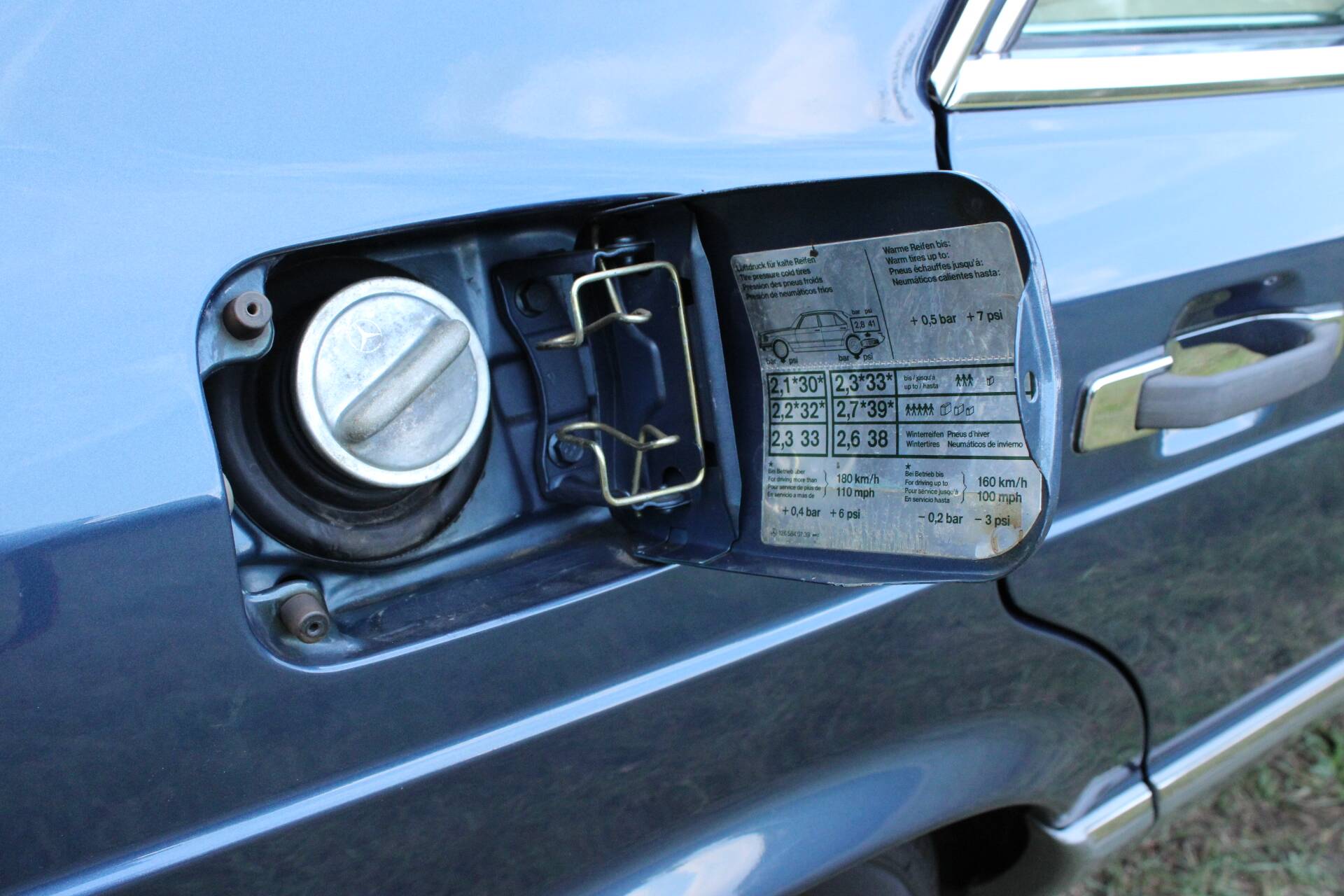 Der Benz hat eine ungewöhnliche Geschichte. Er wurde im Jahr 2015 an die Kinderkrebshilfe gespendet. Für mehr Infos s. Fotos.