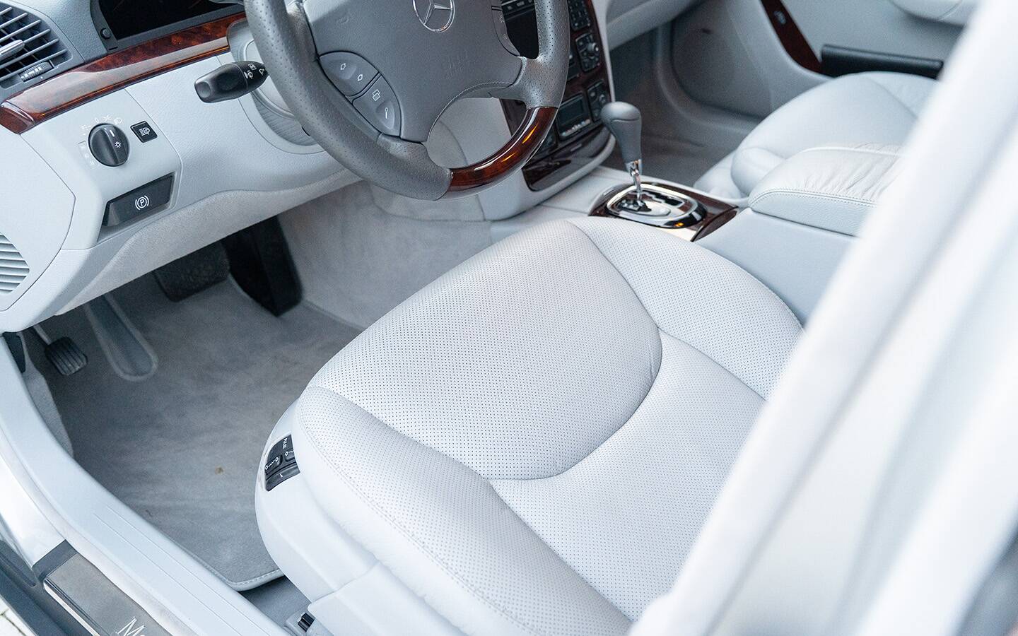 In Brillantsilber Metallic mit hellgrauem Lederinterieur verkörpert er die klassische Eleganz der frühen 2000er-Jahre – kombiniert mit der kraftvollen Gelassenheit des AMG-V8. Ein Wagen für jene, die wissen, dass wahre Stärke leise auftritt.