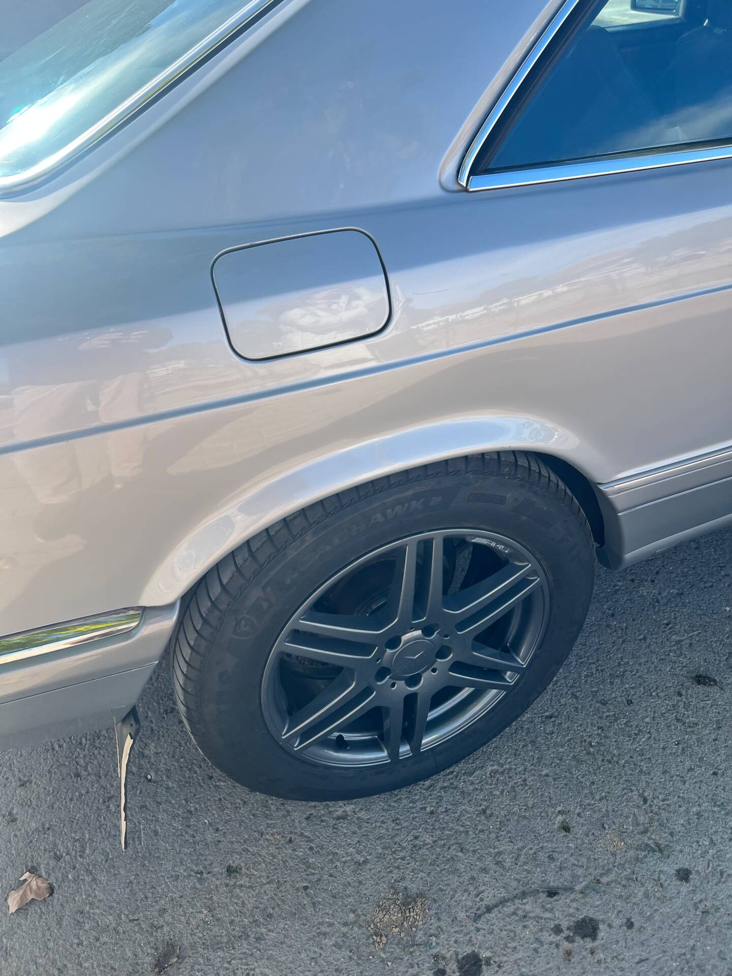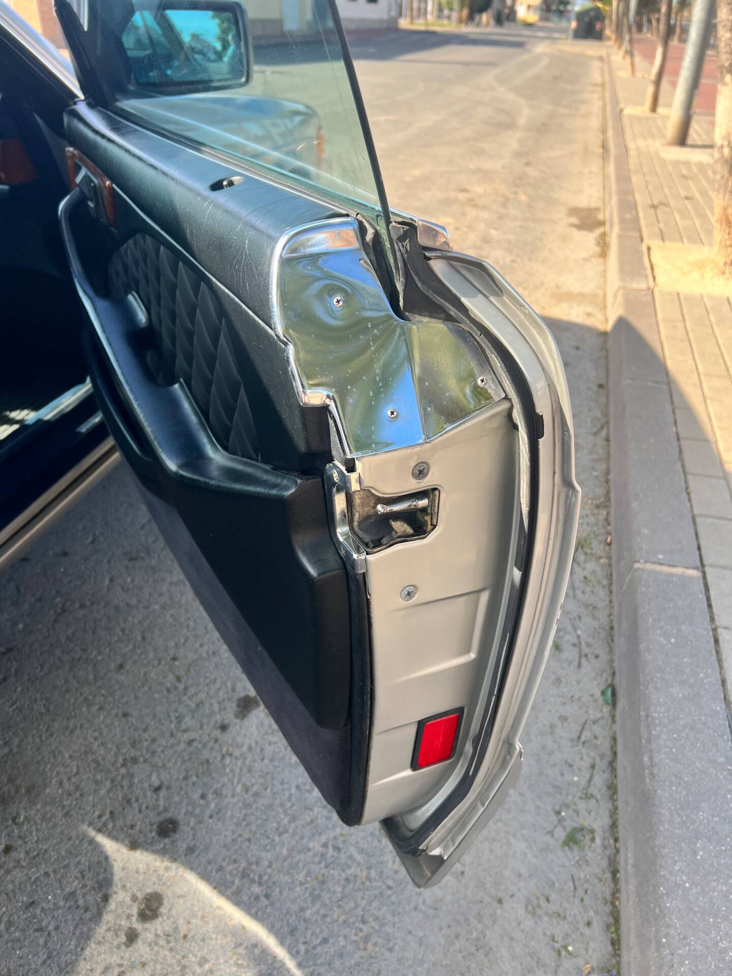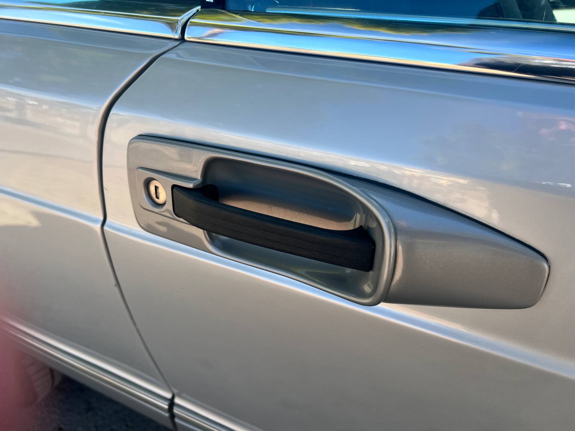 Painted in the most sought-after colour of the 1980s: Anthracite Metallic (deep charcoal grey). The paint is original except for the front wings and bonnet, which were professionally repainted years ago to Mercedes standards – today it is impossible to tell what was repainted. All chrome shines like new, rubbers and seals are impeccable.