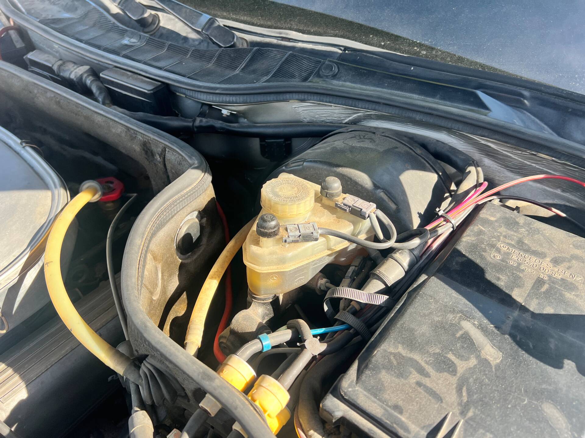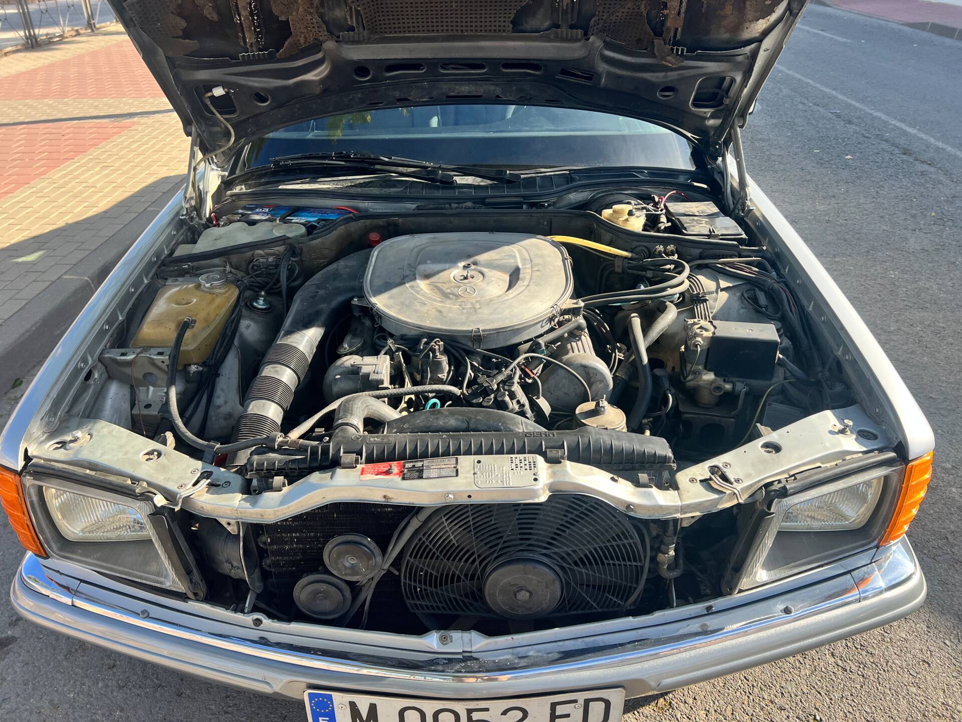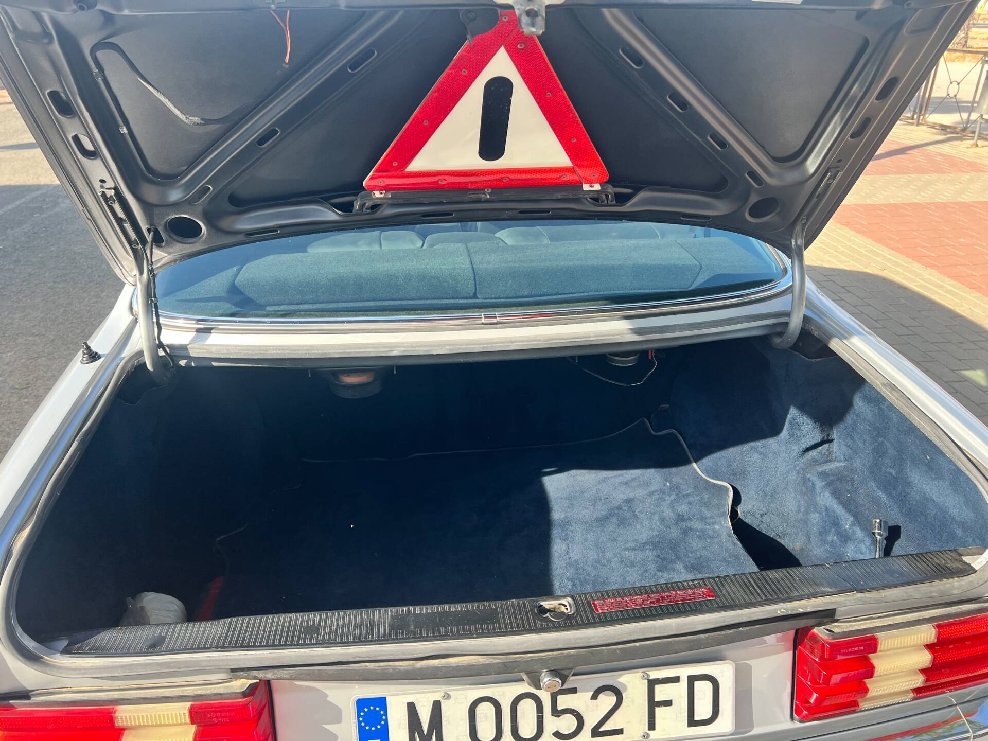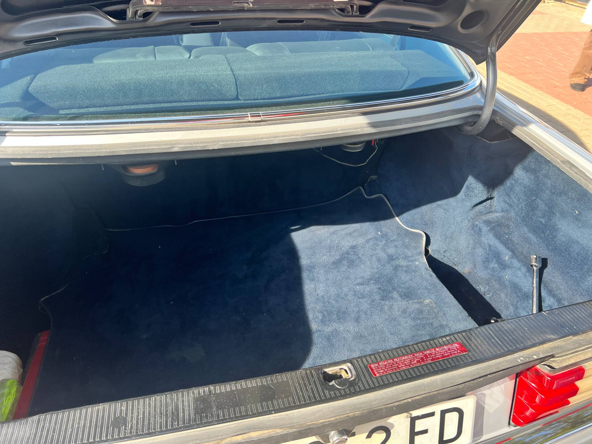 The moment you open the door, the aroma hits you: that unique blend of carefully preserved Spanish leather and MB-Tex that only comes from a car that has aged with love. Black leather seats (soft, no cracks, no hard spots), glossy Zebrano wood, perfect tight headliner, electric windows that work as smoothly as the day they left the factory (rare on a 43-year-old coupé). Ice-cold air conditioning after its latest service, original Becker Grand Prix radio still scanning for stations. Even the original first-aid kit and tool roll remain in the boot.