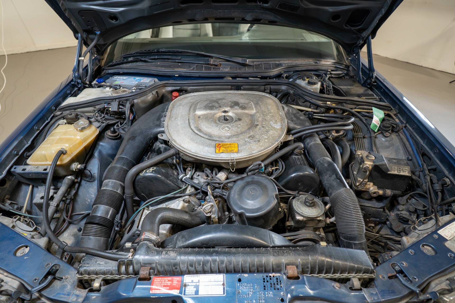 Der 500 SEC wird vom bewährten M117 V8-Motor mit 4.973 cm³ Hubraum und ca. 245 PS angetrieben, kombiniert mit der 4-Gang-Automatik, die für souveränen, komfortablen Vortrieb sorgt. Die Laufkultur ist ruhig und kraftvoll, das Fahrzeug fährt sich genauso, wie man es von einem SEC erwartet.