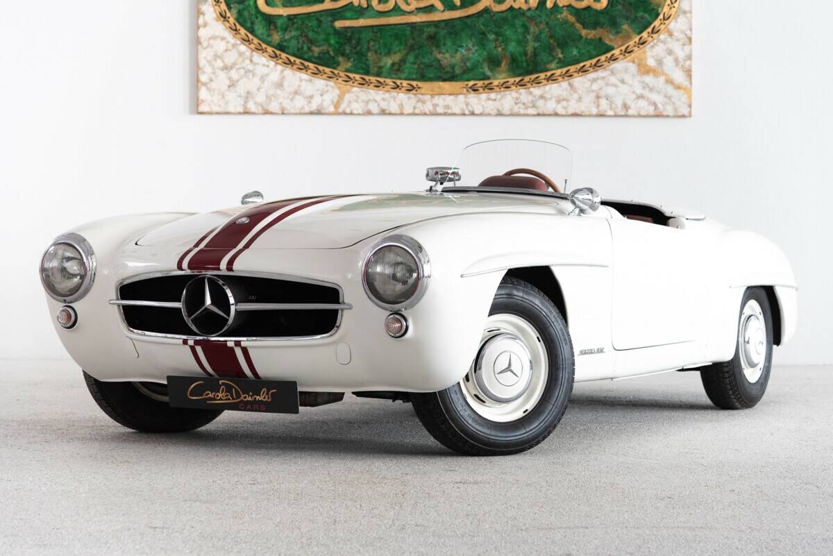 Hier zum Verkauf steht ein außergewöhnlicher Mercedes-Benz 190 SL-Clubsport, der nicht nur durch seine elegante Erscheinung, sondern vor allem durch seine bemerkenswerte Historie besticht. Laut beiliegender Kopie des originalen Mercedes-Benz Lieferscheins wurde dieser Wagen am 29. September 1955 an Josef F. Weckerle, den damaligen Generalvertreter von Mercedes-Benz in Marokko ausgeliefert. Der Kunde überführte den Wagen auf eigener Achse, was bereits damals für eine besondere Verbindung zum Fahrzeug sprach.Ausgeliefert in klassischem Weiß mit rotem Lederinterieur und mit einer umfangreichen Sonderausstattung versehen, war dieser 190 SL weit mehr als ein typischer Vertreter seiner Baureihe. So verfügte er über ein Becker Le Mans Radio mit automatischer Antenne, ATE-Bremsanlage mit Alfin-Trommeln, Stoßstangenhörner, zwei Nebelscheinwerfer mit gelbem Glas, Außenspiegel beidseitig sowie zwei vollwertige, bereifte Reserveräder.Besonders bemerkenswert: Es wird stark angenommen, dass es sich bei diesem Fahrzeug um eines der äußerst seltenen Exemplare mit originalem Clubsport-Paket handelt, eine Option, die nur 1955 und 1956 erhältlich war und auf Kunden mit motorsportlichem Anspruch abzielte. Es gibt zahlreiche Indizien dafür, dass genau dieser 190 SL der Wagen war, mit dem Josef F. Weckerle den Klassensieg in der 2-Liter-Kategorie beim Großen Preis von Casablanca errang, ein Triumph, der ihm zu regionalem Ruhm verhalf und dem Fahrzeug seine historische Bedeutung verleiht.Der Wagen verblieb bis 1988 in Marokko und wurde anschließend nach Deutschland exportiert, wo er im Jahr 2000 erstmals mit deutschen Papieren zugelassen wurde. 2009 erfolgte der Transfer nach Österreich. Im Laufe der Jahre wurde der Motor durch ein 190 SL-Aggregat mit Kompressor ersetzt.Der Wagen zeigt sich in durchgehend gutem, originalgetreuen Zustand und bedurfte nie einer Komplettrestaurierung ein weiteres Indiz für seine Substanz und Wertigkeit.Da das Clubsport-Paket nie werkseitig eingebaut, sondern nur als Zubehör angeboten wurde, ist ein eindeutiger Nachweis über die Rennhistorie formal nicht möglich. Doch die Summe der Fakten, die Auslieferung an Josef Weckerle, die zeitliche Einordnung und der Zustand, lässt kaum Zweifel daran, dass es sich hierbei um eines der historisch bedeutendsten Exemplare des Mercedes-Benz 190 SL handelt. Von Beginn an erfreute sich der Mercedes-Benz 190 SL großer Beliebtheit. Dank seines soliden Potenzials wurde er nicht nur als stilvoller Reisewagen geschätzt, sondern diente auch zahlreichen Privatfahrern und Rennteams als sportliches Einsatzfahrzeug. Zwar war der 190 SL konstruktiv eher als komfortabler Gran Turismo denn als reinrassiger Sportwagen ausgelegt, und viele zeitgenössische Wettbewerber boten höhere Fahrleistungen zu einem günstigeren Preis – doch dem Erfolg des eleganten Roadsters tat dies keinen Abbruch. Besonders in den Vereinigten Staaten feierte der 190 SL einen durchschlagenden Erfolg: Ein Großteil der knapp 26.000 zwischen 1955 und 1963 gebauten Exemplare wurde in die USA exportiert.Angetrieben wurde der 190 SL vom M121-Vierzylindermotor mit 1.897 cm³ Hubraum. Das Triebwerk war zusammen mit dem manuellen Vierganggetriebe, der Vorderradaufhängung und der Lenkung auf einem separaten Fahrschemel montiert – ein technisches Konzept, das für Komfort und gute Fahrbarkeit sorgte. Über zwei Solex-Fallstromvergaser beatmet, leistete der Motor 105 PS bei 5.700 U/min. Damit beschleunigte der Roadster in 14,5 Sekunden auf 100 km/h und erreichte eine Höchstgeschwindigkeit von 171 km/h – ausreichend für dynamisches Reisen mit stilvollem Auftritt.Für den motorsportlichen Einsatz bot Mercedes-Benz ab 1955 ein exklusives Clubsport-Paket für den 190 SL an. Dieses seltene Sonderpaket, das bis 1956 erhältlich war, verwandelte den eleganten Tourenwagen in eine deutlich dynamischere Variante – den 190 SL Clubsport, auch bekannt als 190 SLR. Nur wenige Exemplare wurden tatsächlich gefertigt, doch sie kamen bei ausgewählten internationalen Wettbewerben erfolgreich zum Einsatz. So gewann ein 190 SL Clubsport 1956 den Großen Preis von Macao, 1957 den Großen Preis von Casablanca in Marokko und 1958 die Rallye von Hongkong. Diese eindrucksvollen Rennerfolge belegen das sportliche Potenzial des 190 SL ein Fahrzeug, das weit mehr war als nur ein stilvoller Begleiter für die große Reise.