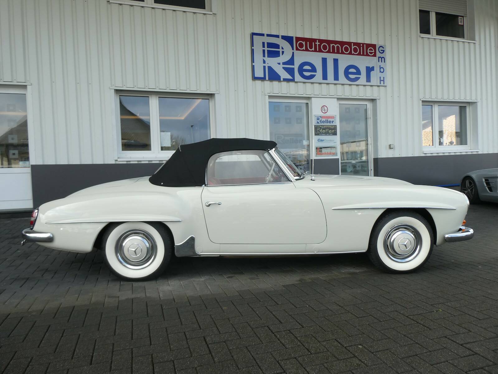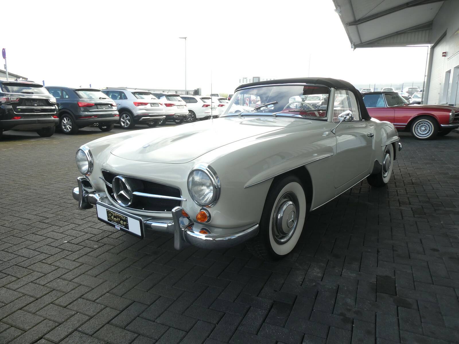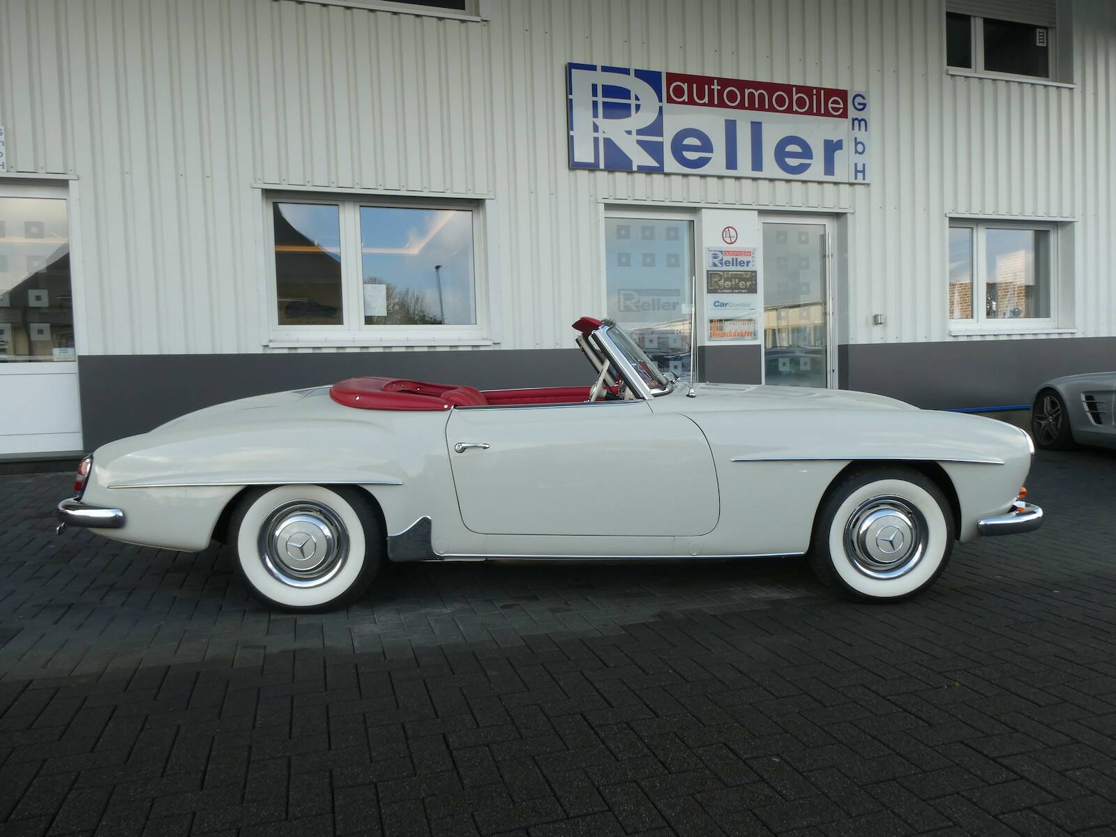Dieser 190 SL wurde 1961 ausgeliefert und erstrahlt in der beliebten Farbkombination weißgrau (158) kombiniert mit einer roten Lederausstattung. Der 190 SL befindet sich im teilrestaurierten Zustand und verfügt über hervorragende Fahreigenschaften mit den originalen Solex-Vergasern.