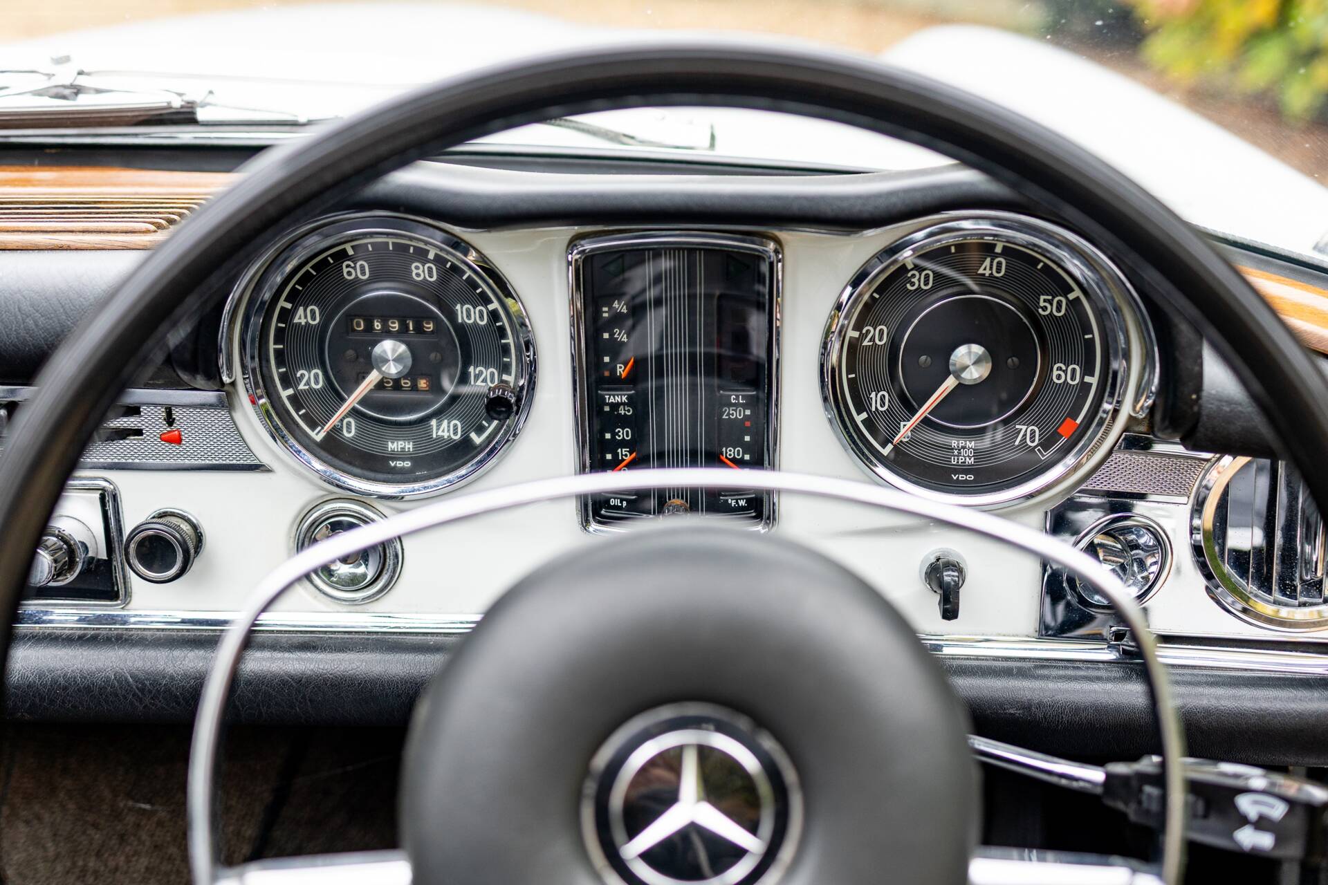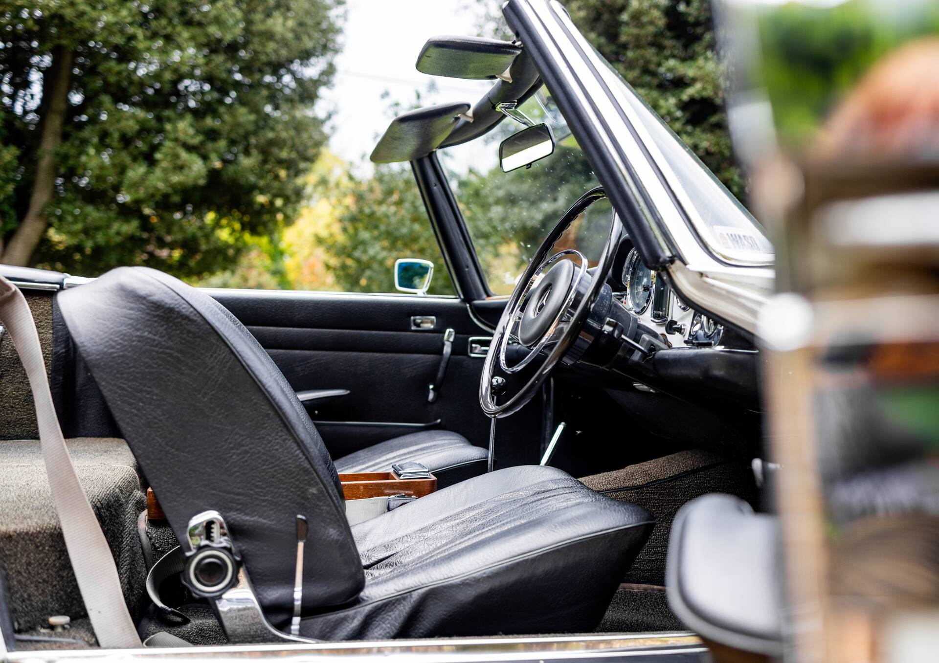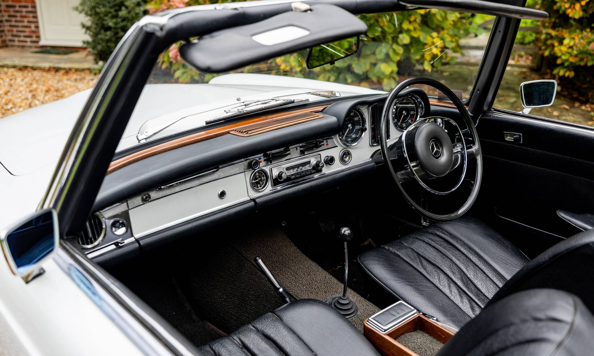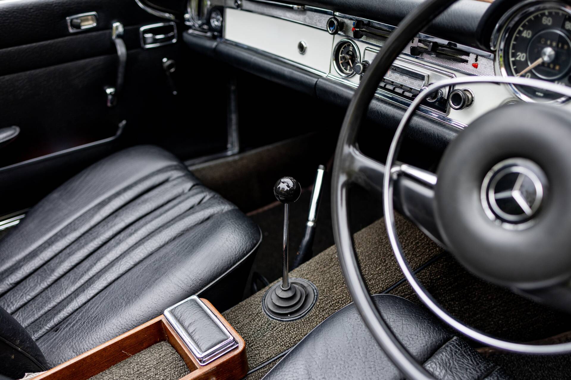 The Mercedes-Benz 280 SL was introduced in December 1967 and continued in production until February 1971. An all new design by Paul Bracq to replace the 190 SL and 300 SL Roaster. The 280 SL had a powerful 2.8 litre version of Mercedes inline-six and used Bosch fuel injection. To save on weight, the bonnet, boot lid and tonneau cover were all composed of aluminium. The nickname 'Pagoda' was quickly adopted thanks to the slightly concave roof on the optional removable hardtop that resembled a pagoda roof. The comparatively short and wide chassis, combined with an excellent suspension, powerful disc brakes and radial tyres gave the W113 superb handling for its time. These roadsters also have one of the most beautiful bodies produced in the 1960s. Thanks to their robust inline-six and their luxurious Mercedes interior, they are wonderful cars to be driven and enjoyed. The styling of the front paid homage to the legendary 300 SL with its characteristic upright Bosch 'fishbowl' headlights and simple chrome grille, dominated by the large three-pointed star in the nose panel.