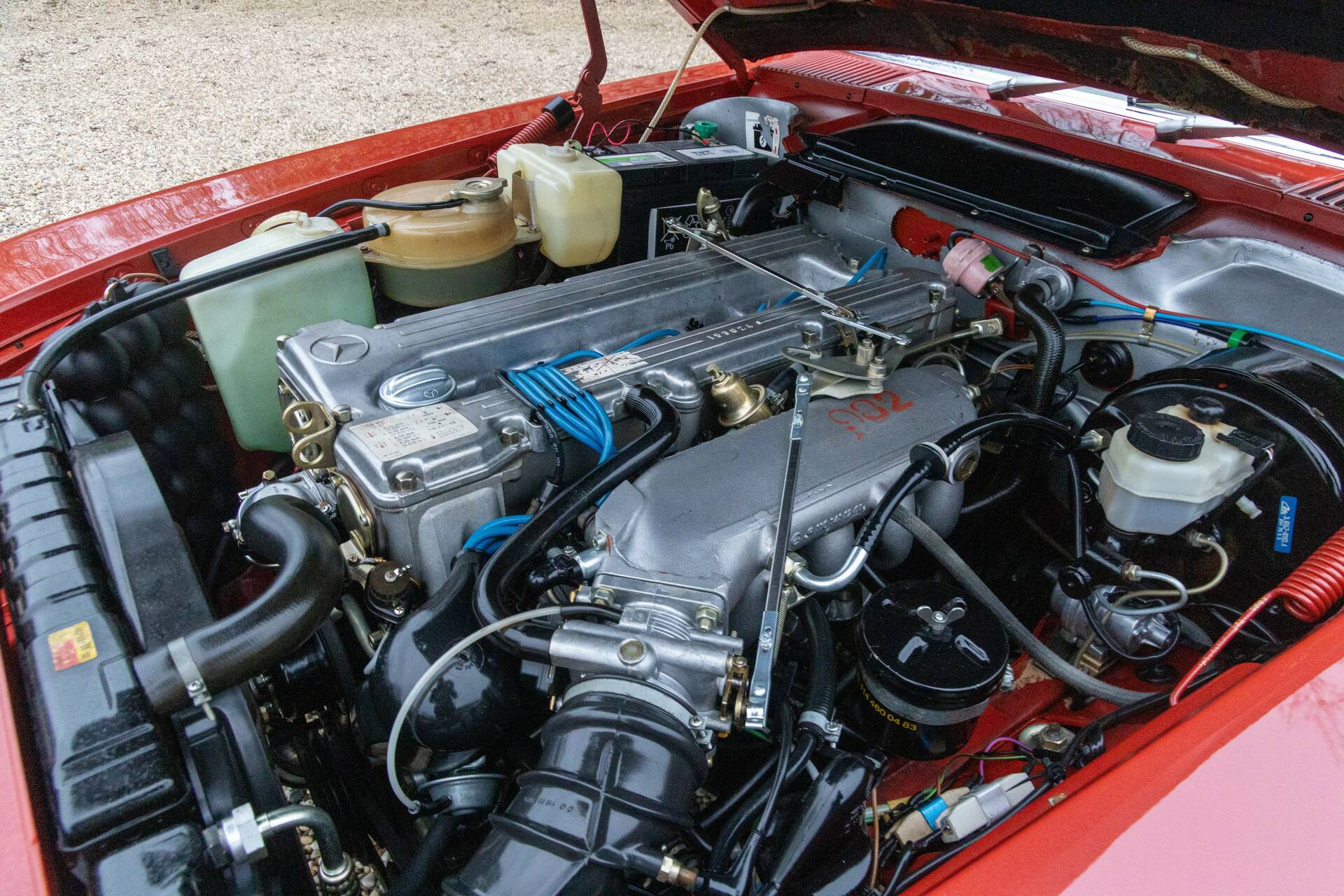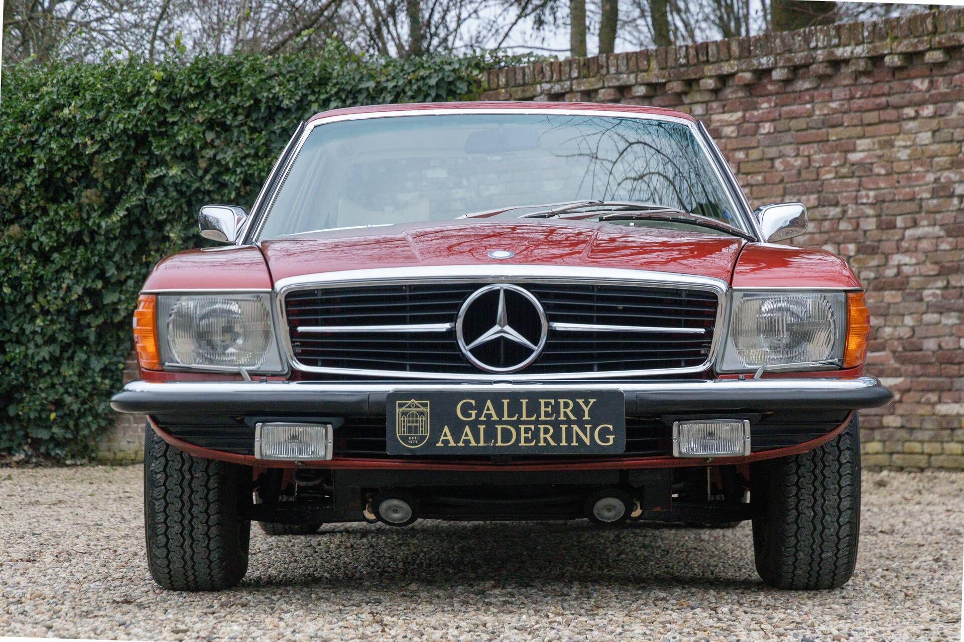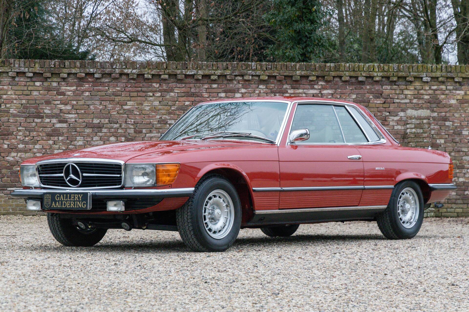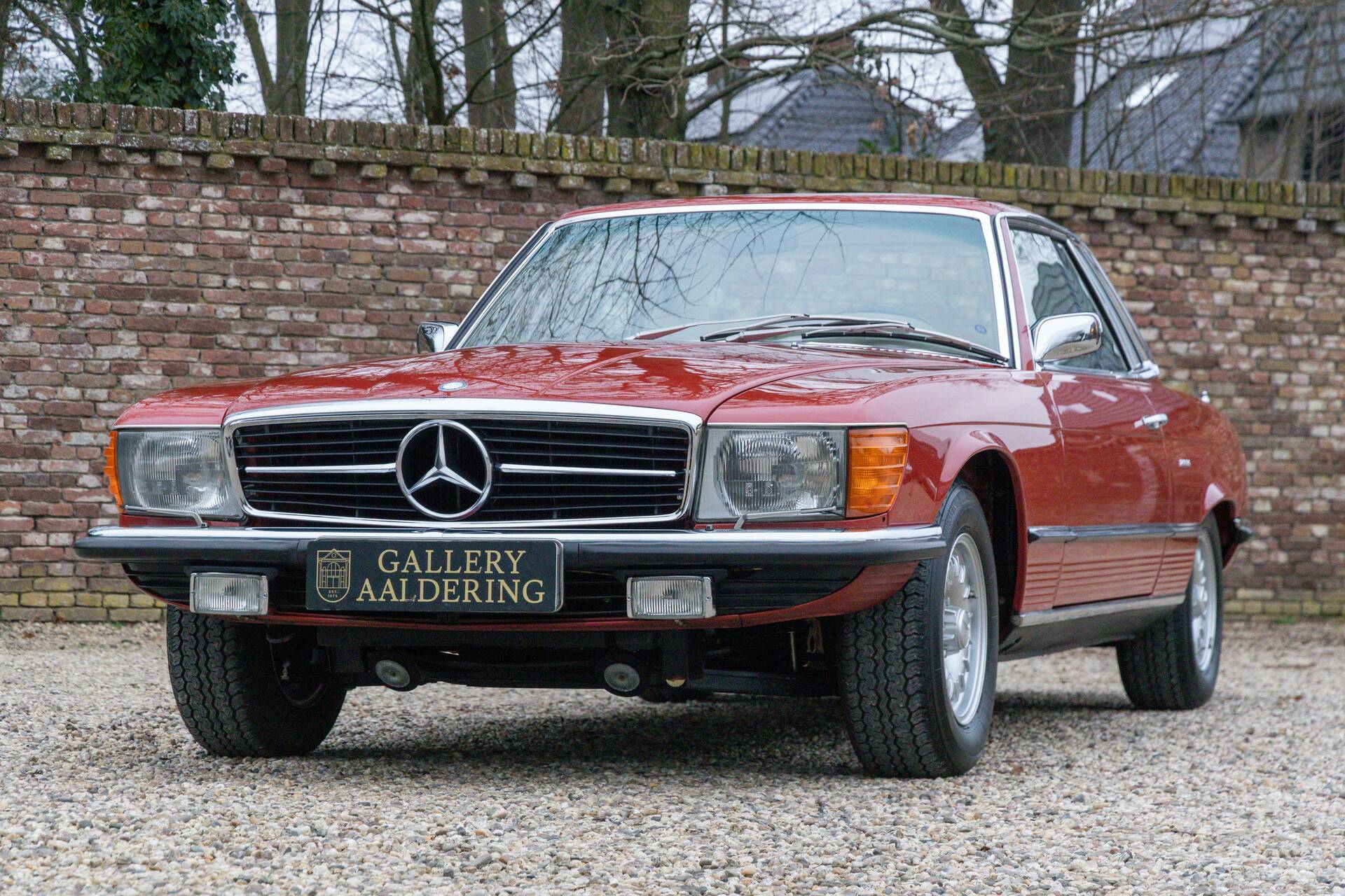 Mercedes Benz 280 SLC "8.191 kms - Exceptionally low mileage" Documented from the day of delivery in 1975, All-First Lacquer in Brilliant Red Metallic over creme leather, Offered with original booklets in MB-pouch, Equipped with the sliding roof, Unfindable on the current market and a true quality collector's item,