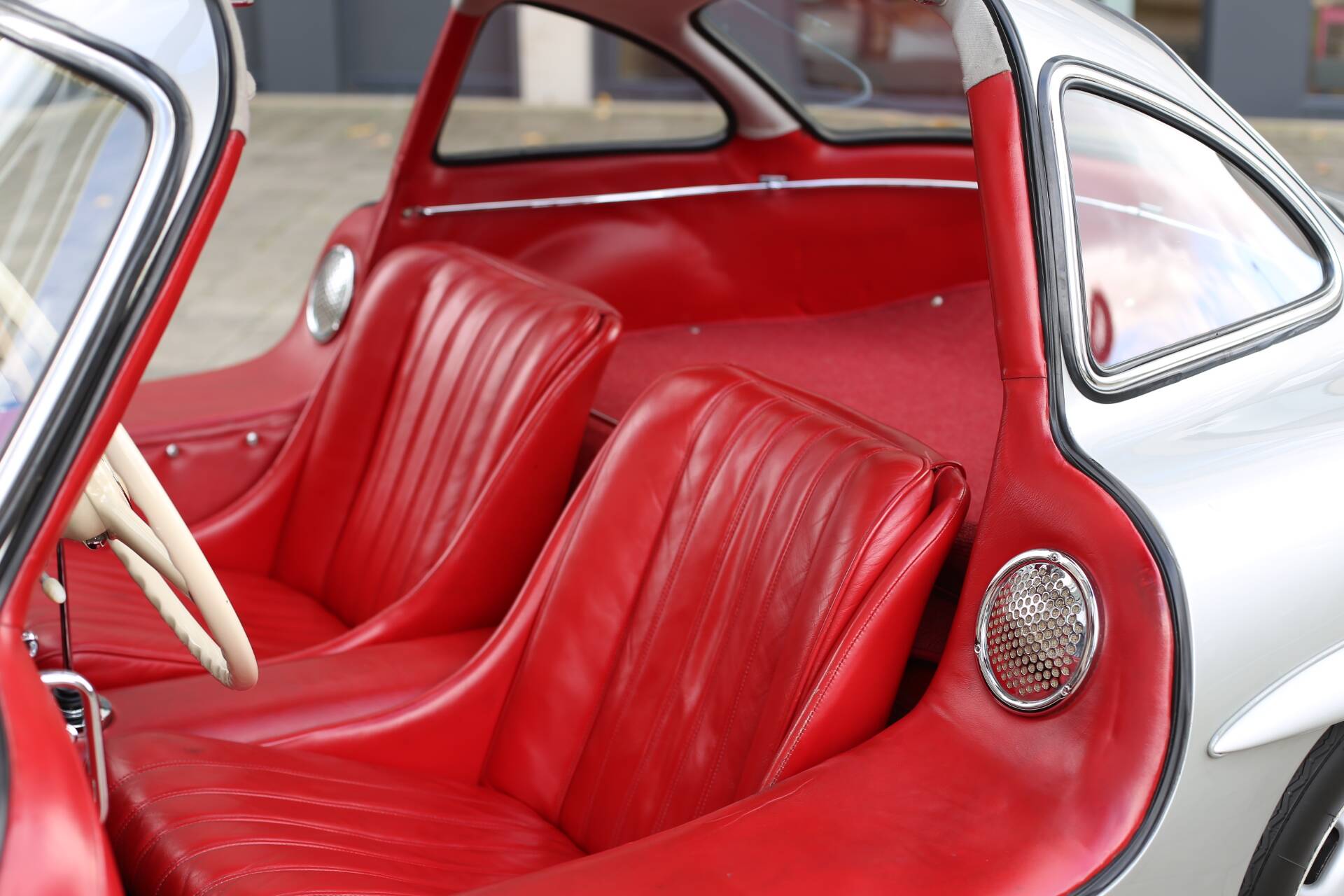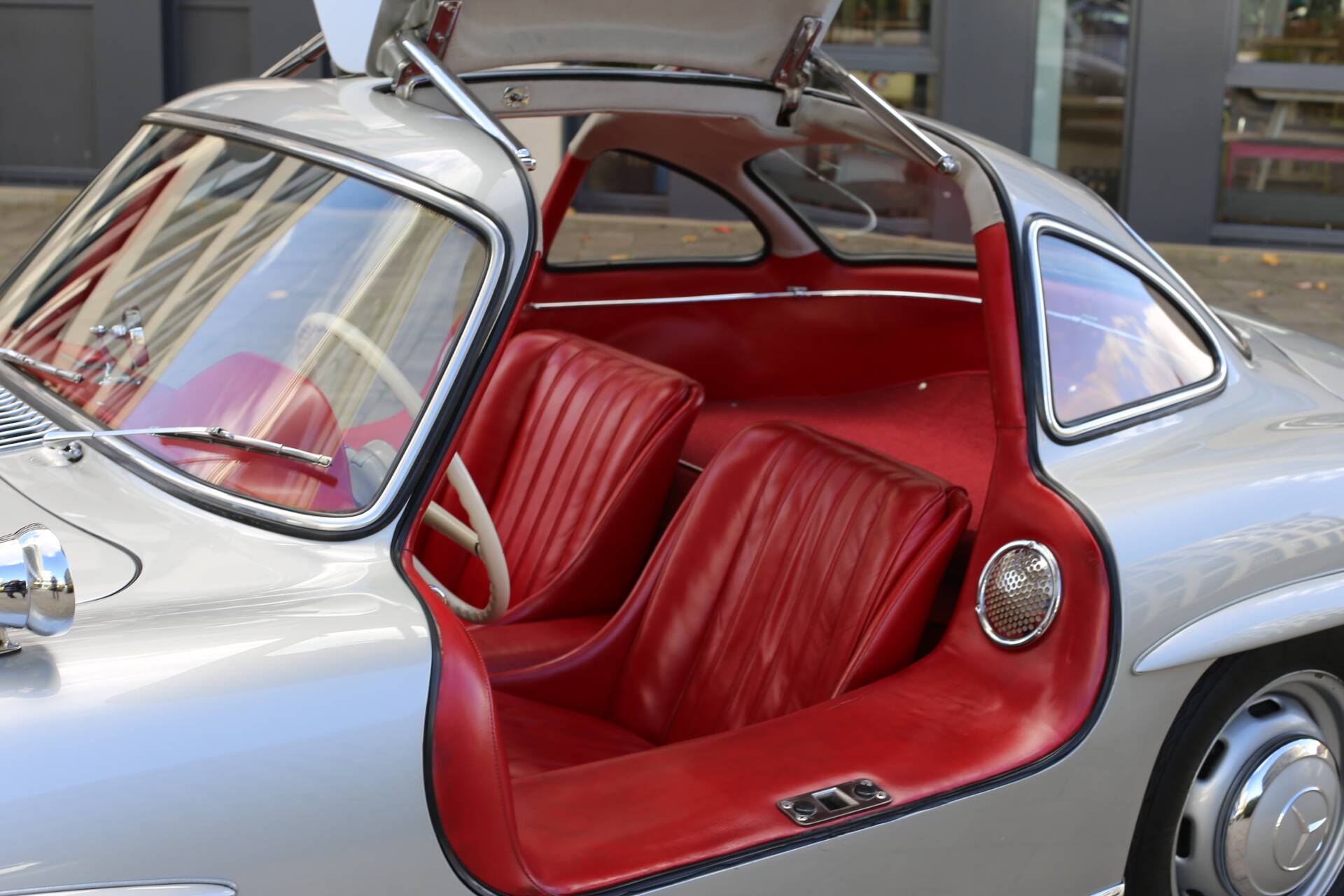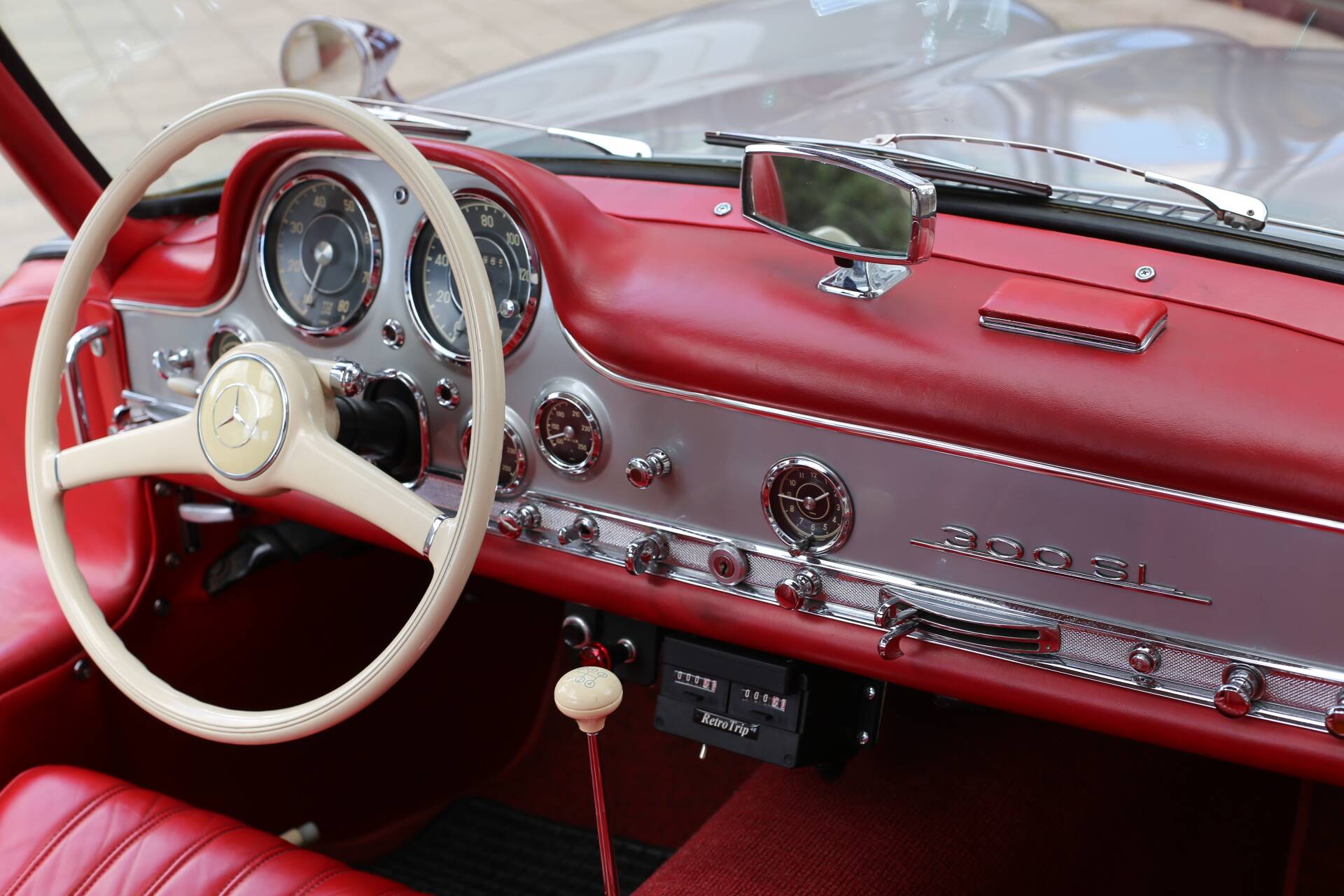 The next three American owners are all documented in the renowned Eric Le Moine Gullwing Register. During its time in the U.S., the car underwent a comprehensive restoration, during which the original blue-grey check cloth interior (code L1) was replaced with the current red leather upholstery. The restoration was completed in the car’s original factory color, DB 180 Silver Metallic, matching its body number (198. 040. 4500026).
