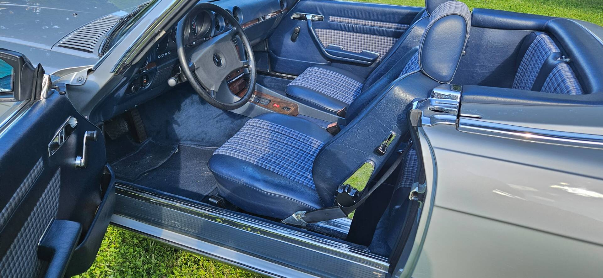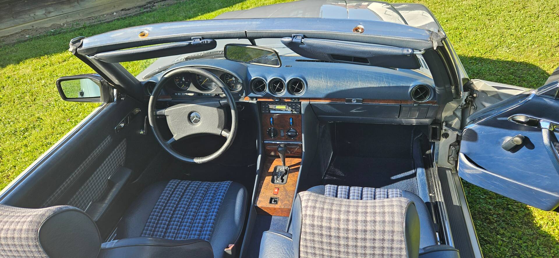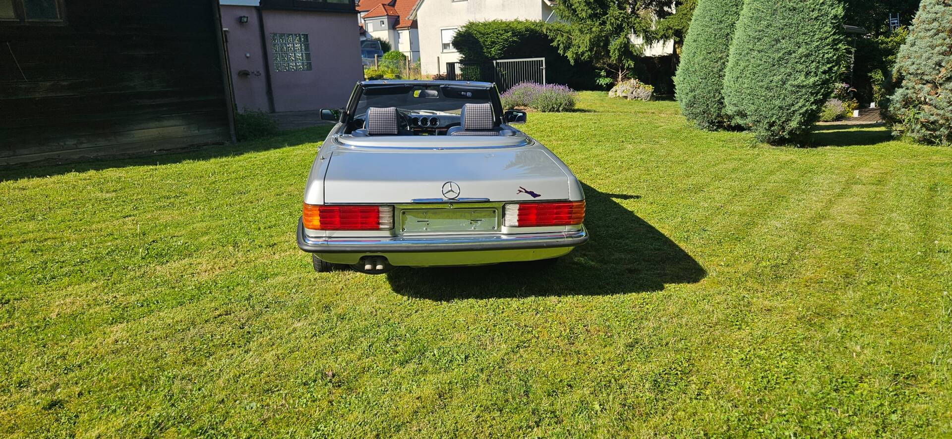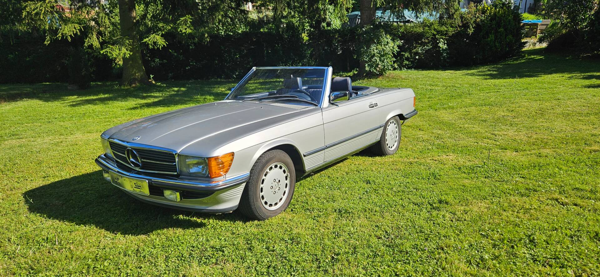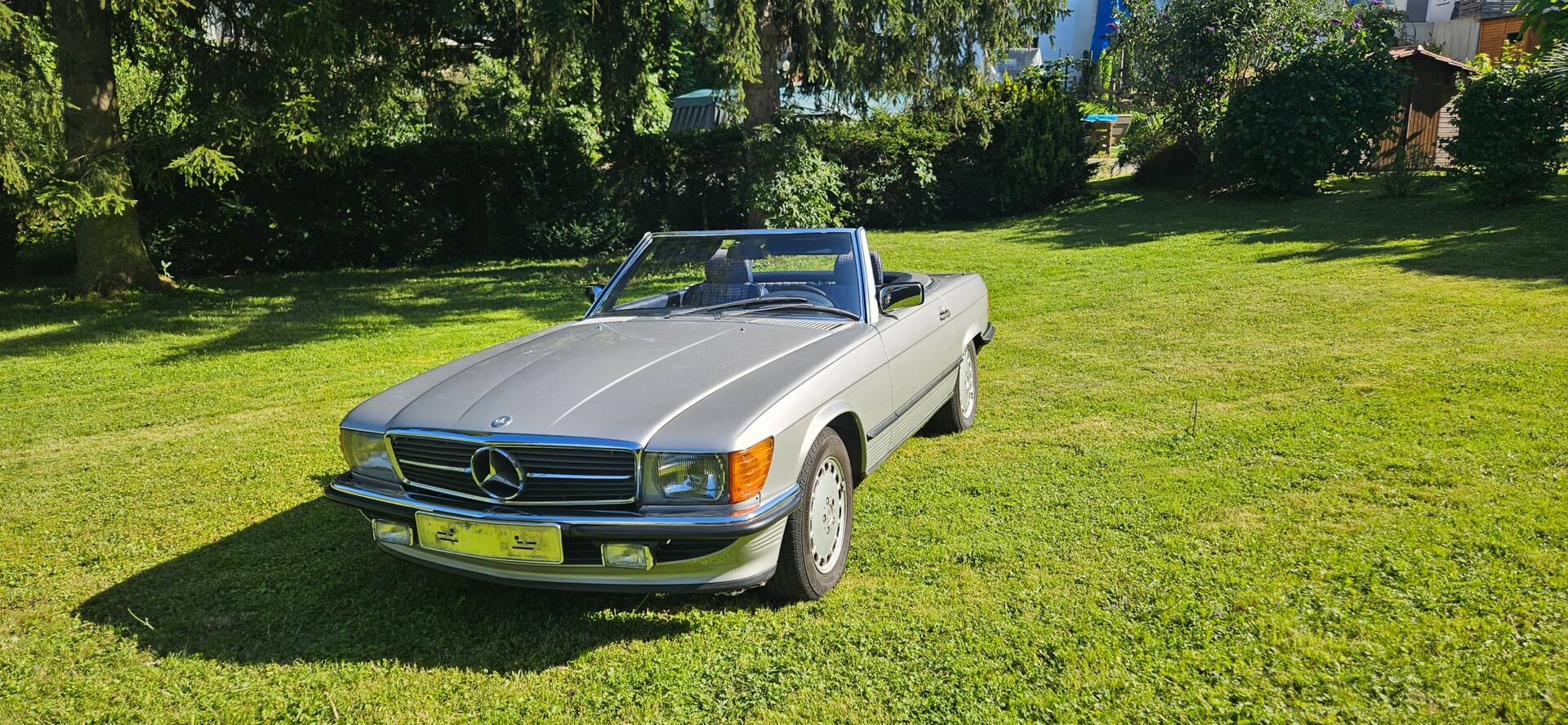 Silberfarbener SL 300, BJ 1988, sehr gepflegt, regelmäßig gewartet, 1. Hand. Bis 2002 hatte das Fahrzeug den überwiegenden Teil seiner derzeitigen Laufleistung absolviert. Danach wurde es nur noch relativ wenig bewegt. Im Mai 2013 wurden die Sitzflächen der beiden vorderen Sitze mit originalem Stoff blau-072 in einer Fachwerkstatt neu bezogen. Sonderausstattung: Hardtop, Radio Cass. Becker Mexico, Notsitze hinten, Metallic Lackierung. Wertgutachten von 02/2024 liegt vor. Preis lt. Wertgutachten €43800.-, Standort des Fahrzeugs: 73230 Kirchheim unter Teck