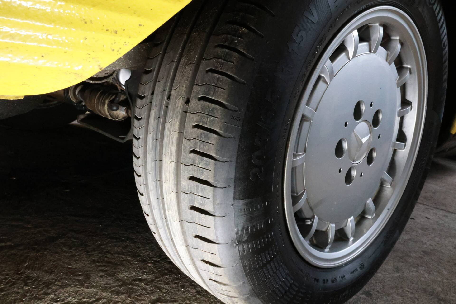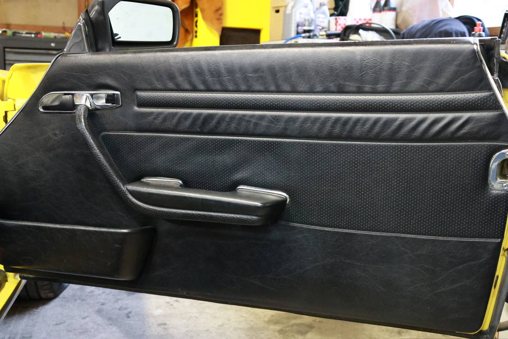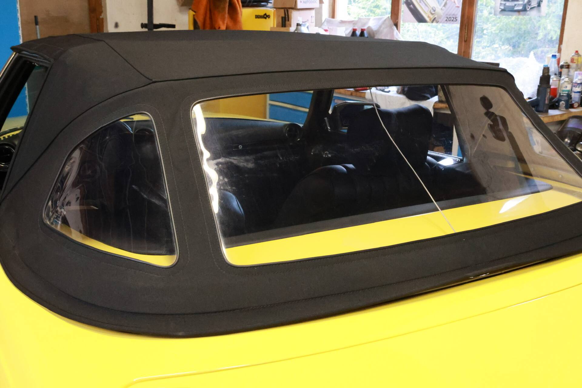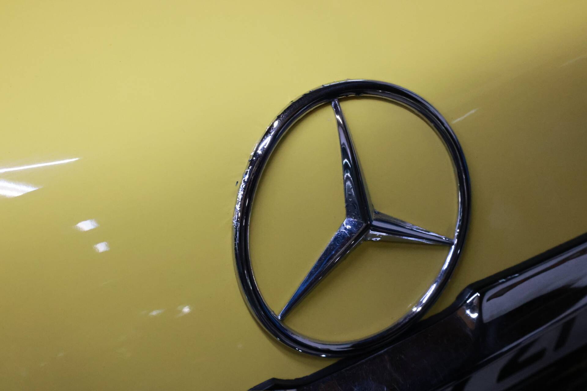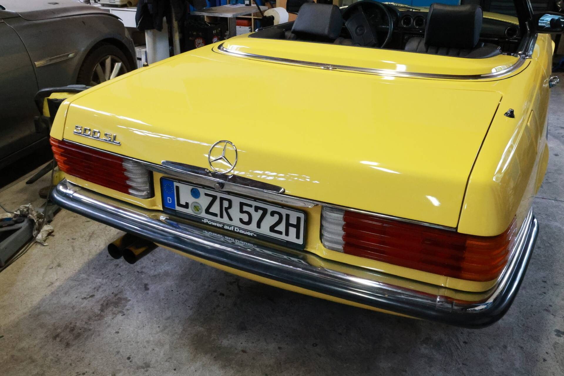 Zum Verkauf im Kundenauftrag steht ein Mercedes-Benz 500 SL der Baureihe R107 in markanter Farbkombination mit gelber Lackierung, schwarzem Verdeck und Leder Nappa anthrazit.