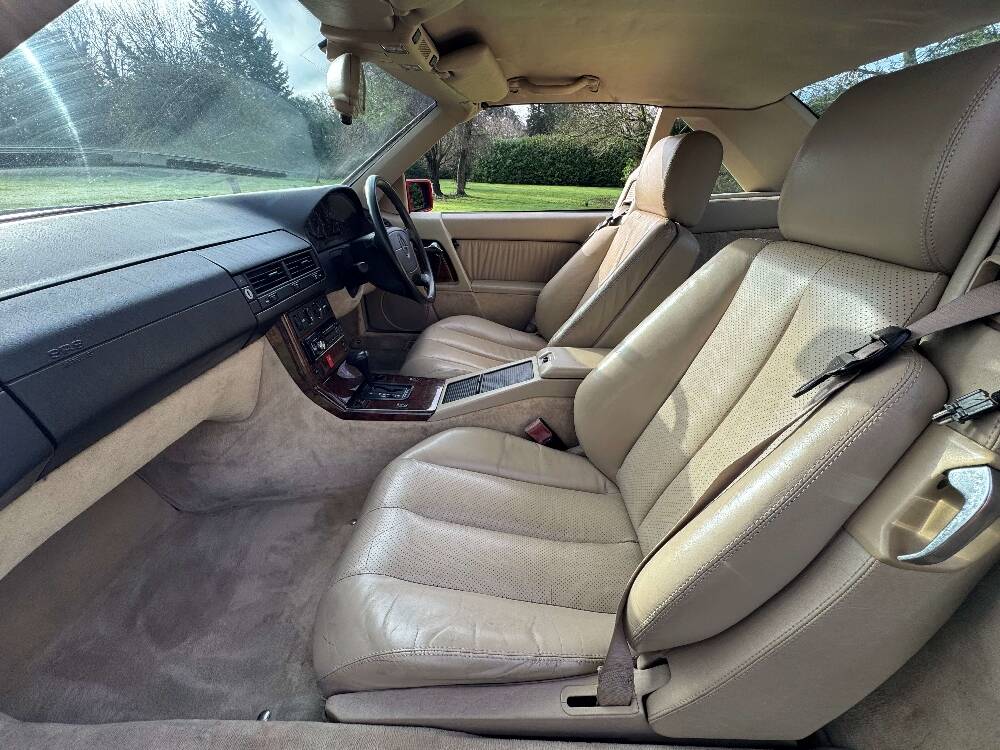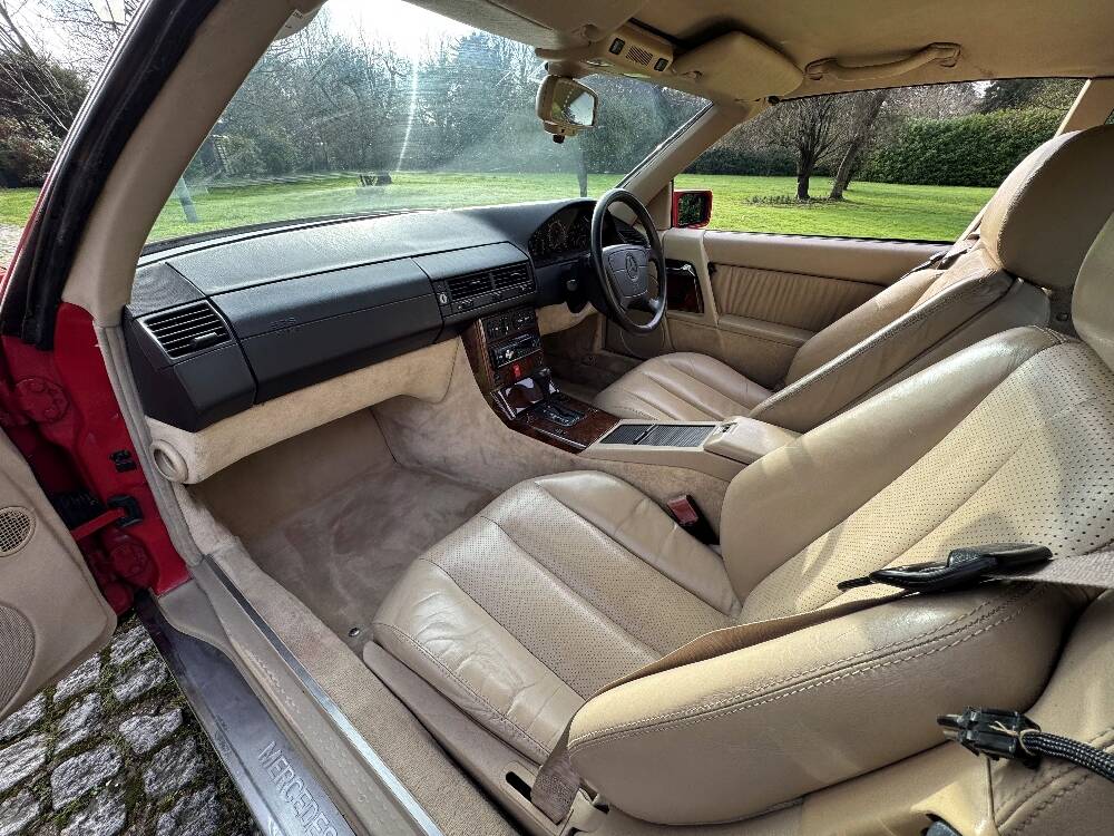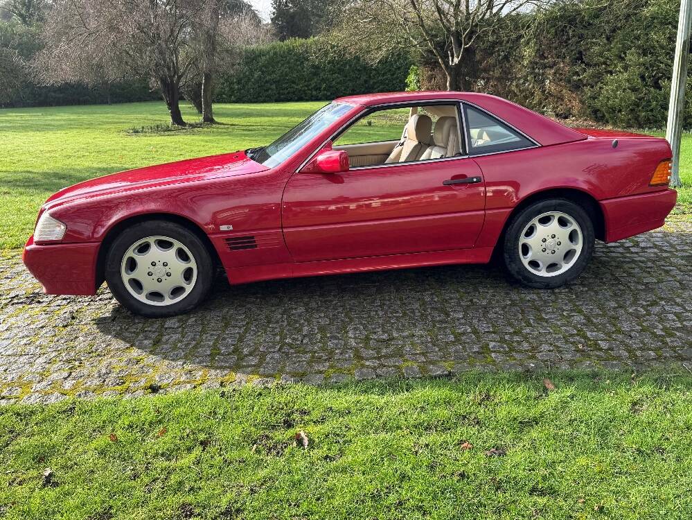 This bright red 1994 Mercedes 280SL has recentley arrived in part exchange against a Bentley Arnage Red Label. Not our normal stock but nevertheless it comes in nice all round condition for an attractive sportscar that is now 32 years old. Mercedes build quality in the early 90's was renowned throughout the motor industry for its superb finish and utter reliability. Both paintwork and interior trim of this motorcar are in very nice condition and judging by the number of service invoices that accompany the car, it has also been well cared for from a mechanical point of view. The interior is very well specified with full leather trim extending to the optional rear seats that are best suited for small children. The interior is complimented with Walnut veneers and the car has a removal hard top, beneath which is an easily errected soft top. The car sits on eight hole Mercedes alloy wheels and is a pleasure to drive. Not expensive in today's market place at £6,950