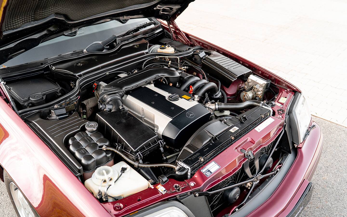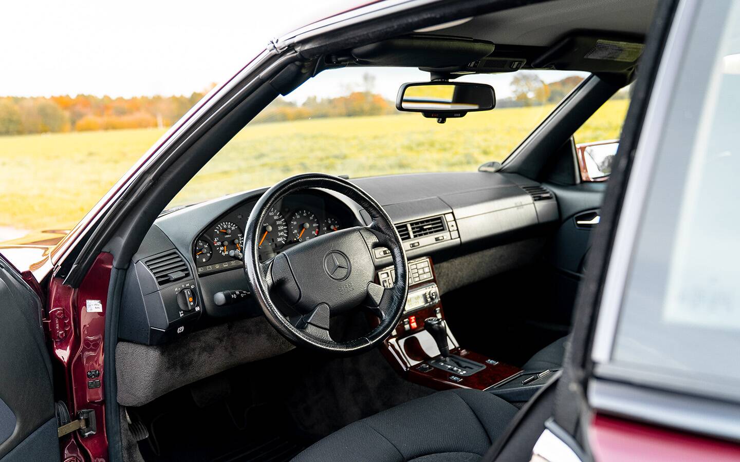 Der SL präsentiert sich in erstklassigem Originalzustand, elegant und authentisch – so, wie ihn Mercedes einst auf die Straße brachte. Ein R129, der nicht nur mit seiner tief schimmernden Rubinrot-Metallic-Lackierung begeistert, sondern auch mit einer Geschichte, die man spürt, sobald man den Schlüssel dreht.