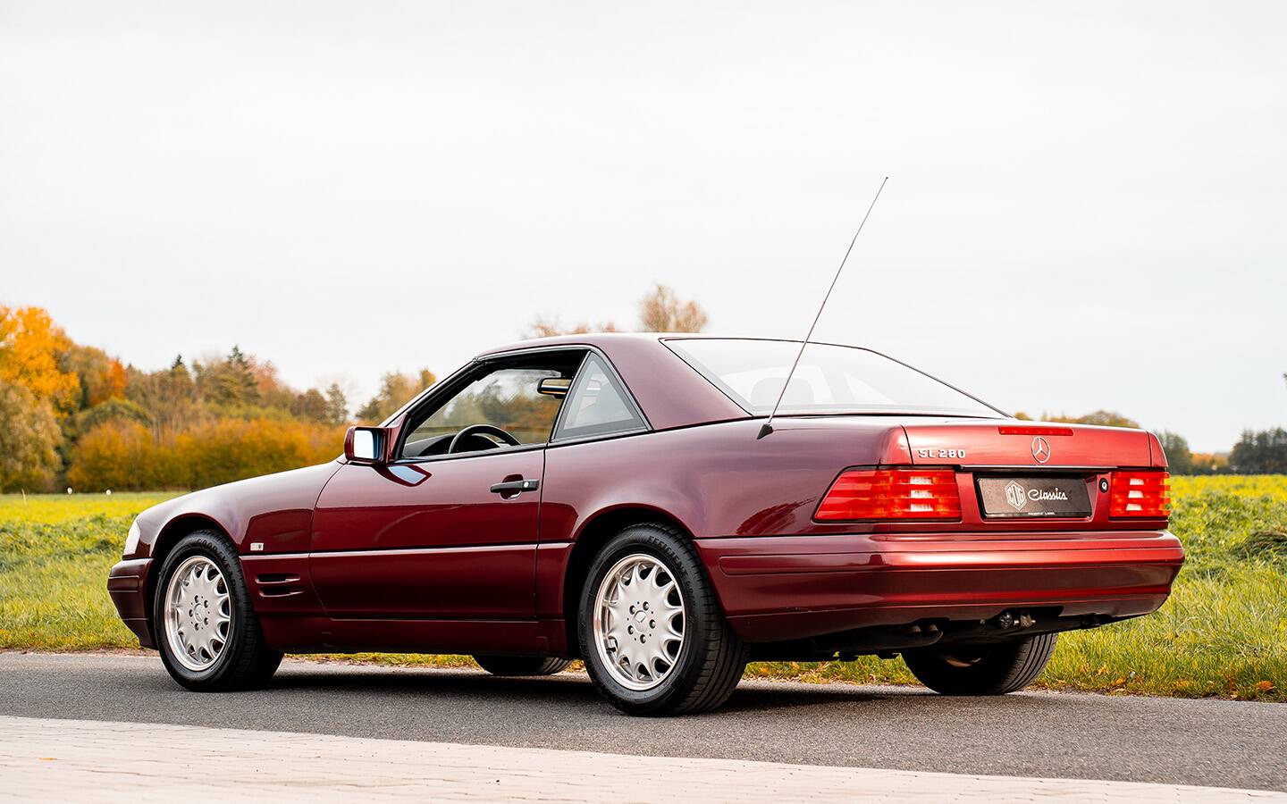 Der Mercedes-Benz SL (R129) steht wie kaum ein anderer für die große Ära des klassischen Roadsters: klare Linien, technische Perfektion und zeitlose Eleganz. Dieser SL 280 in Rubinrot Metallic verkörpert genau das – ein Auto, das mehr Geschichte als Kilometer gesammelt hat.
