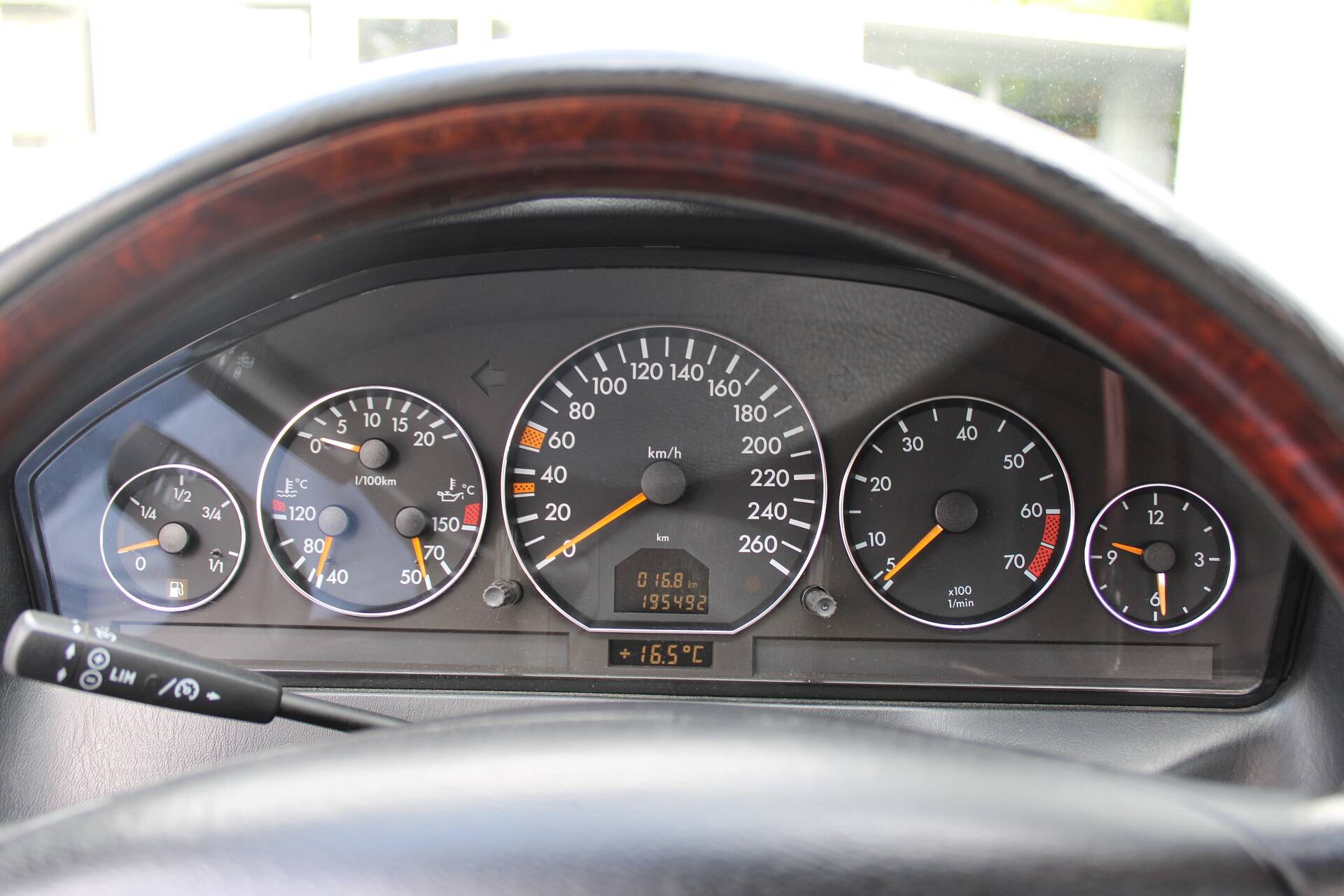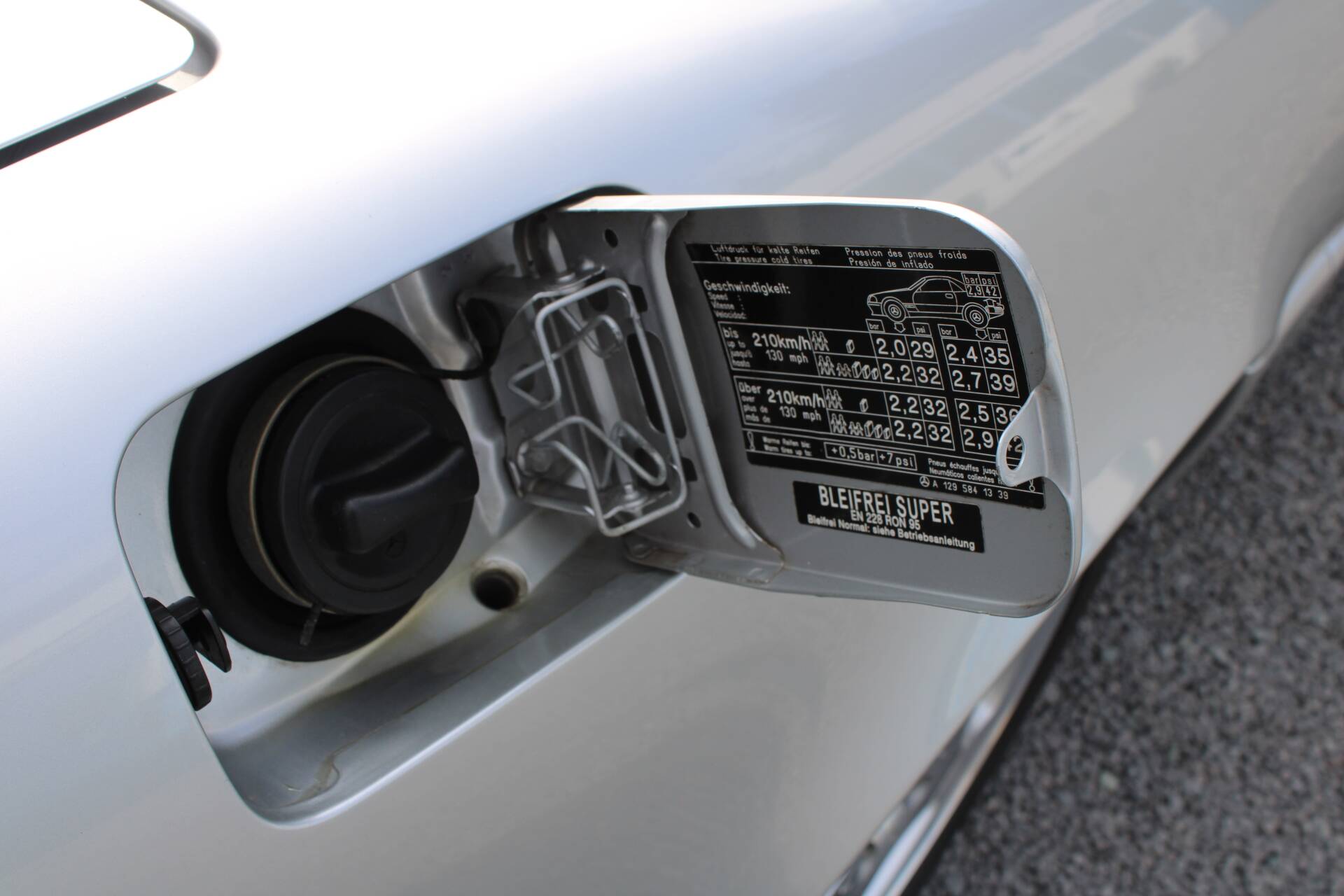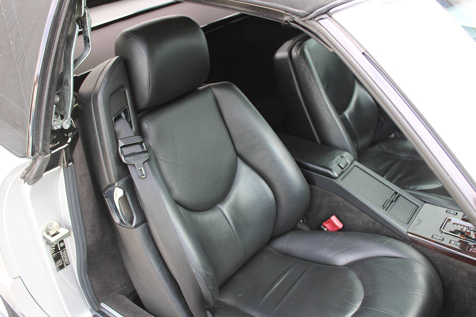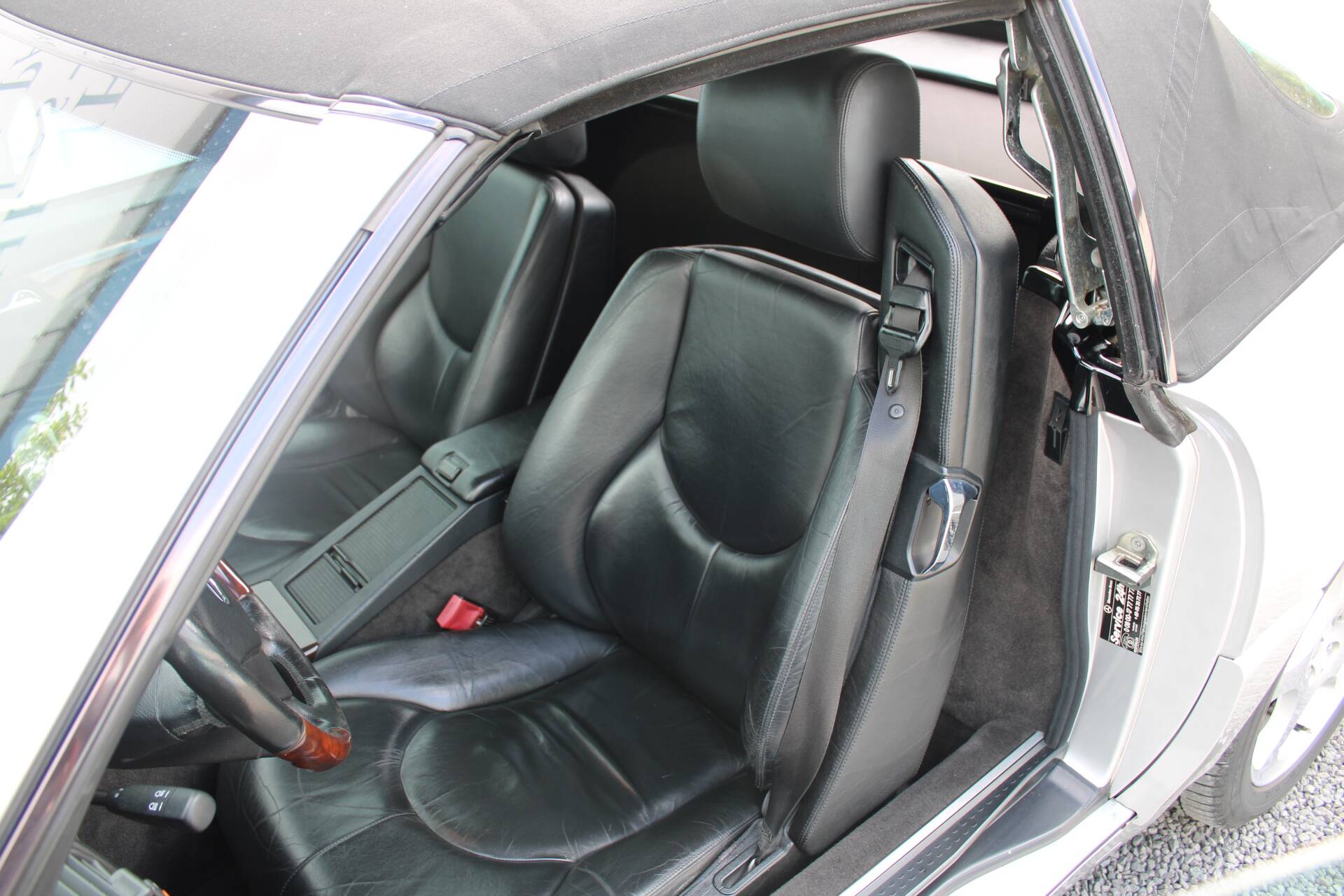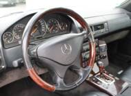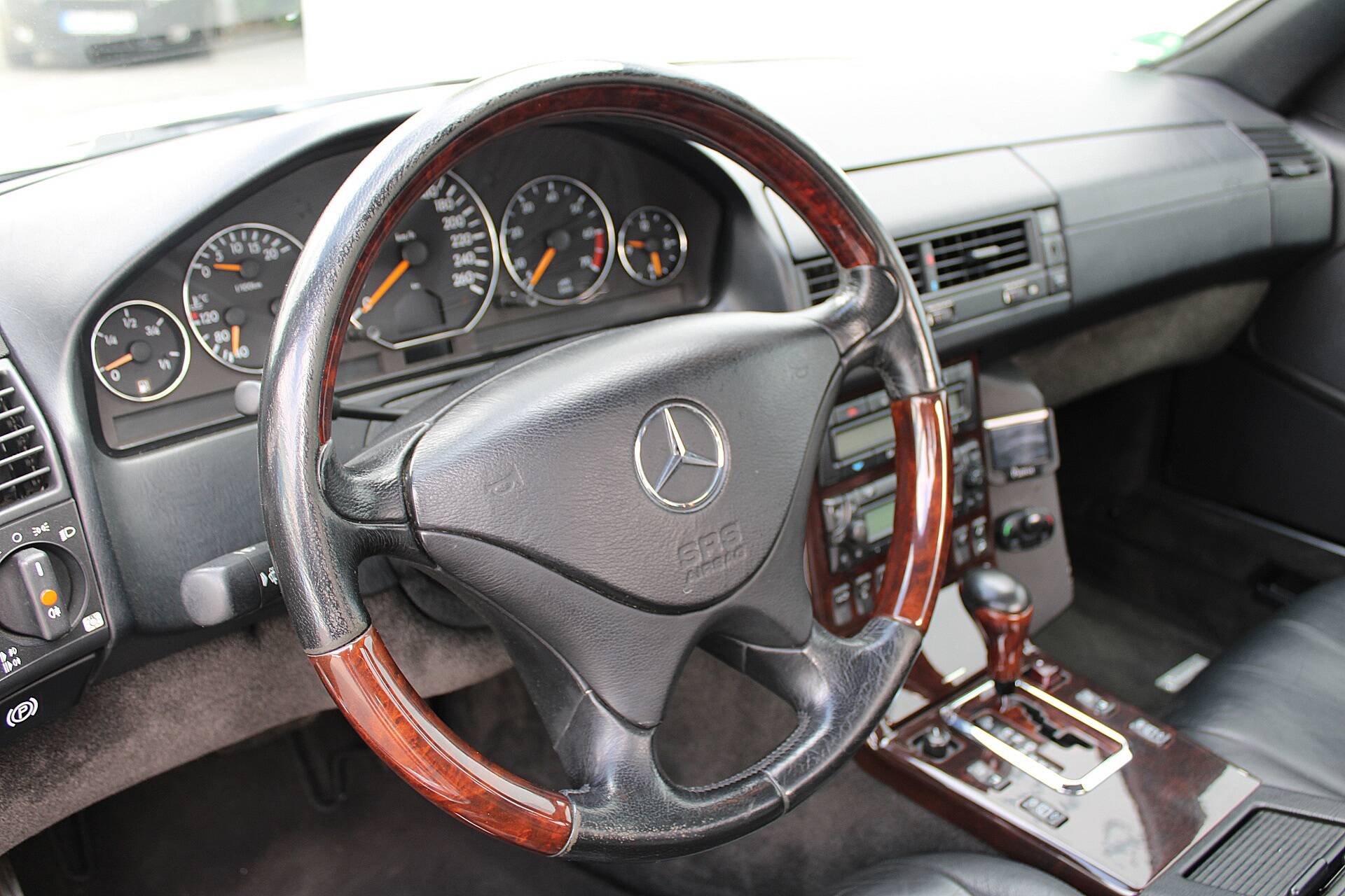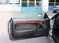 The specification of the R129 in Brilliant Silver Metallic (paint code 744) leaves nothing to be desired. Passengers are seated in ergonomically shaped, electrically adjustable seats. On the driver’s side, there is also a memory function. Heated seats on both sides and an auto-dimming rear-view mirror complete the package. Leather and wood, including on the steering wheel and gear lever, create a high-quality interior ambience. As this is a late-model car, it features xenon headlights, which still provide excellent illumination today. Finally, there is a headlamp washer system and an intrusion and theft warning system (EDW).