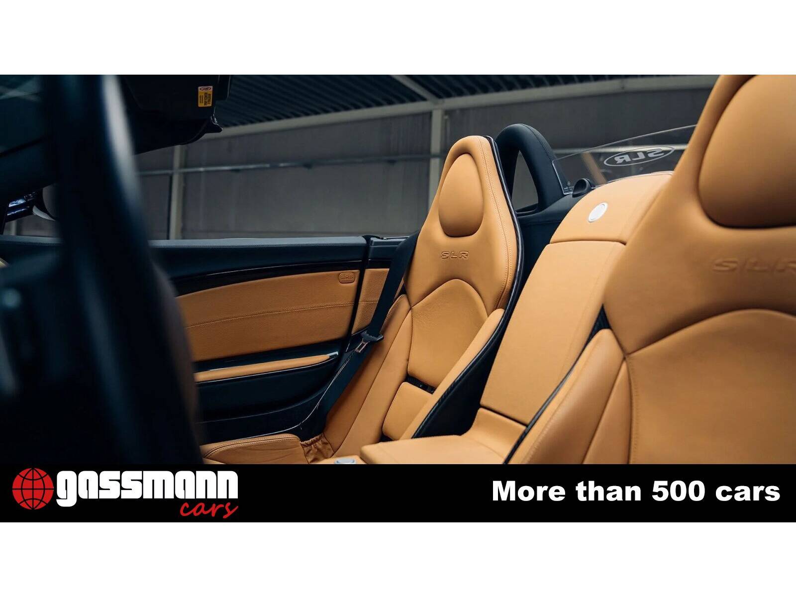 Der SLR wird von einem 5,4-Liter-Kompressor-V8 mit 626 PS (460 kW) angetrieben handgefertigt im AMG-Werk in Affalterbach. Der vorn mittig montierte Motor mit Trockensumpfschmierung und Lysholm-Kompressor liefert eine beeindruckende Leistungsentfaltung, während das aus Kohlefaser und Aluminium gefertigte Monocoque-Chassis eine außergewöhnliche Steifigkeit bei geringem Gewicht bietet. Eine aktive Aerodynamik mit Sechs-Stufen-Heckflügel und großdimensionierte Keramikbremsen unterstreichen den Hochleistungscharakter des Fahrzeugs.