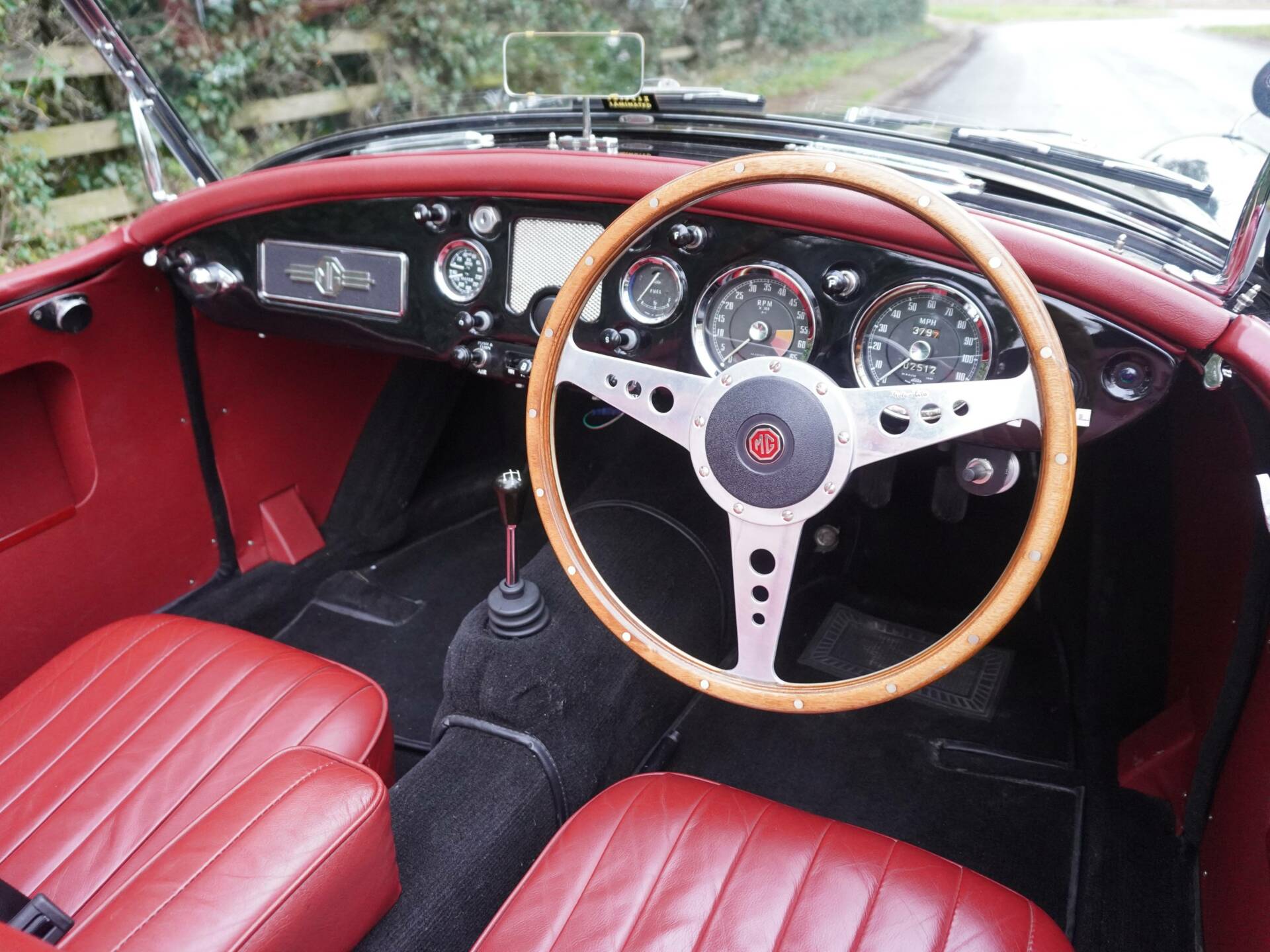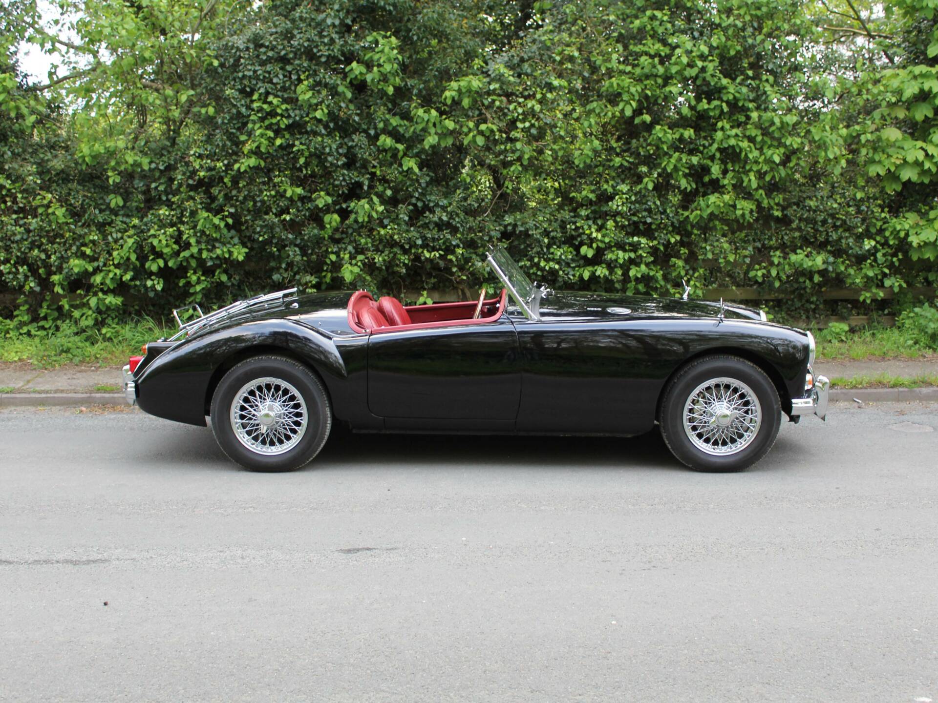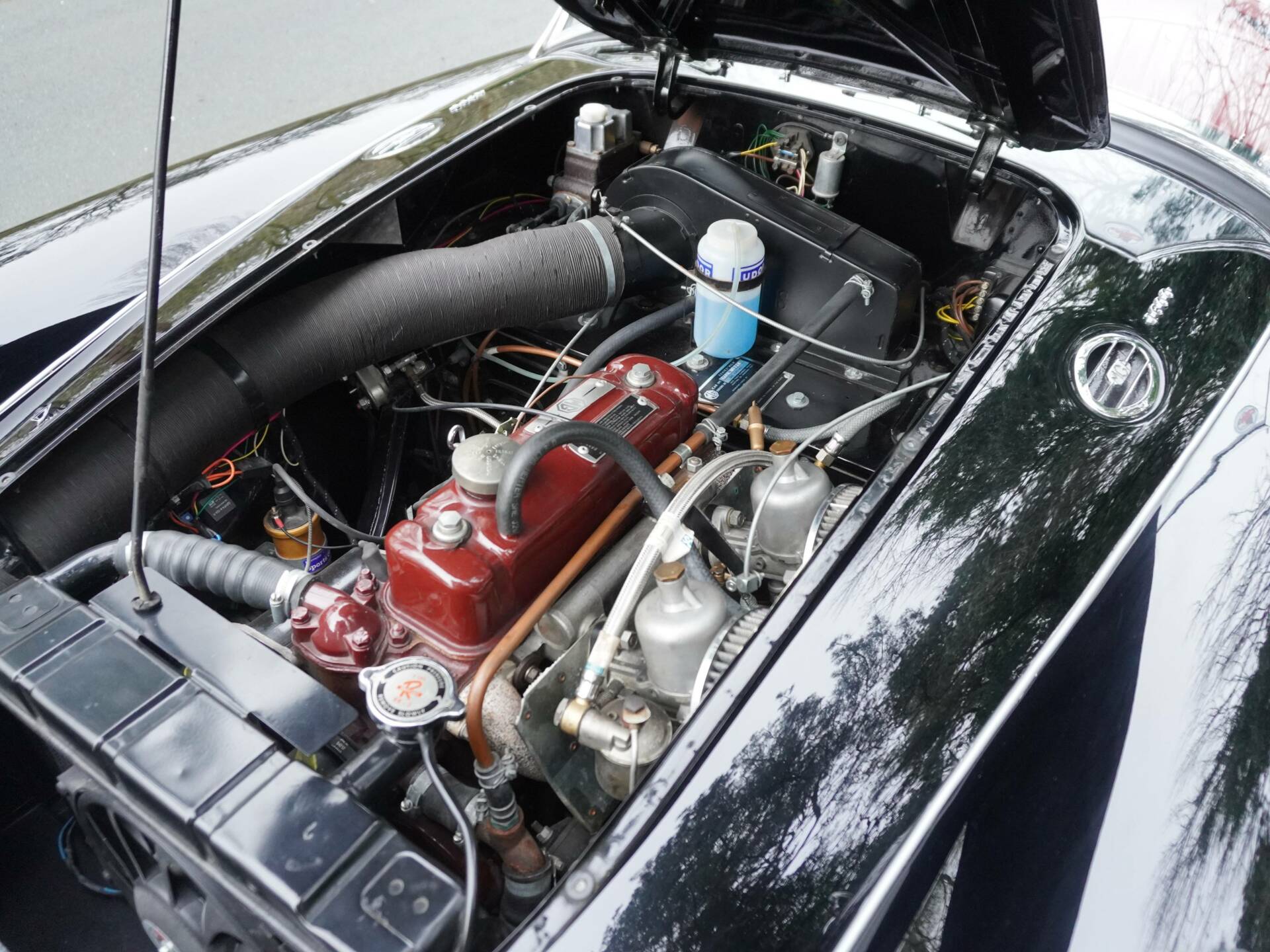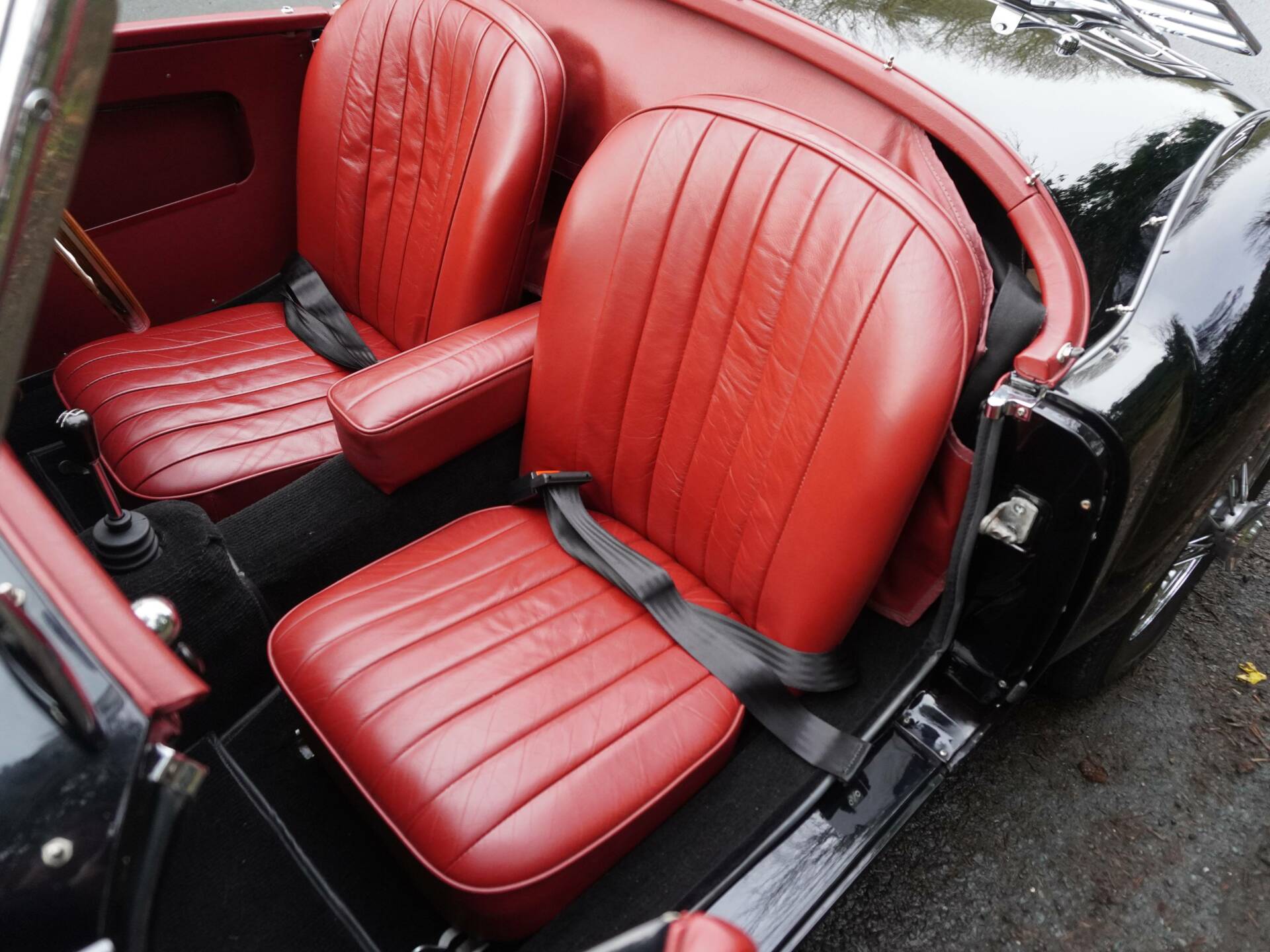 This MK1 MGA 1600 Roadster is beautifully finished, 11 years on it still presents superbly with exceptional bodywork, panel gaps and a first class chassis. The Black paint finish is stunning, brightwork and chrome wires are excellent, and the high quality expensive Red leather trim is stunning. The MGA comes with full weather equipment, all mohair, stainless steel boot rack and still retains a high class engine bay finish. On the road it's exceptional with less than 3000 miles since a full engine rebuild, gearbox rebuild, axle overhaul and fully rebuilt braking, suspension and steering systems. Ancillaries were all renewed, the wiring loom replaced and essentially, the whole entire car was taken to a show standard condition. The car today still drives like a fresh rebuild that has now nicely run in.