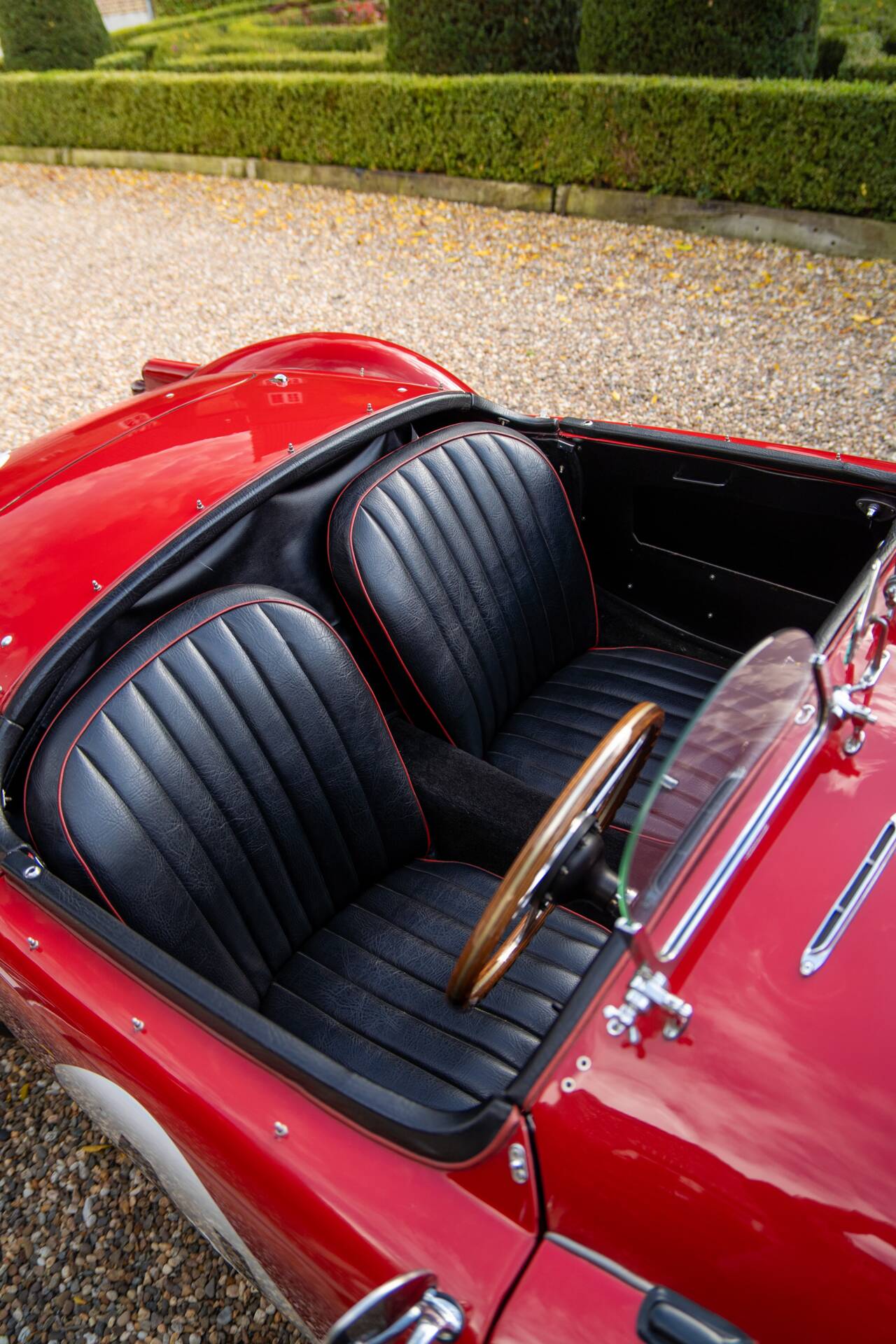 Het interieur van de auto is nog in originele staat, met uitzondering van het stuur, dat is vervangen door een Moto Lita-stuur, en de versnellingspookknop, die is vervangen door een aluminium exemplaar.