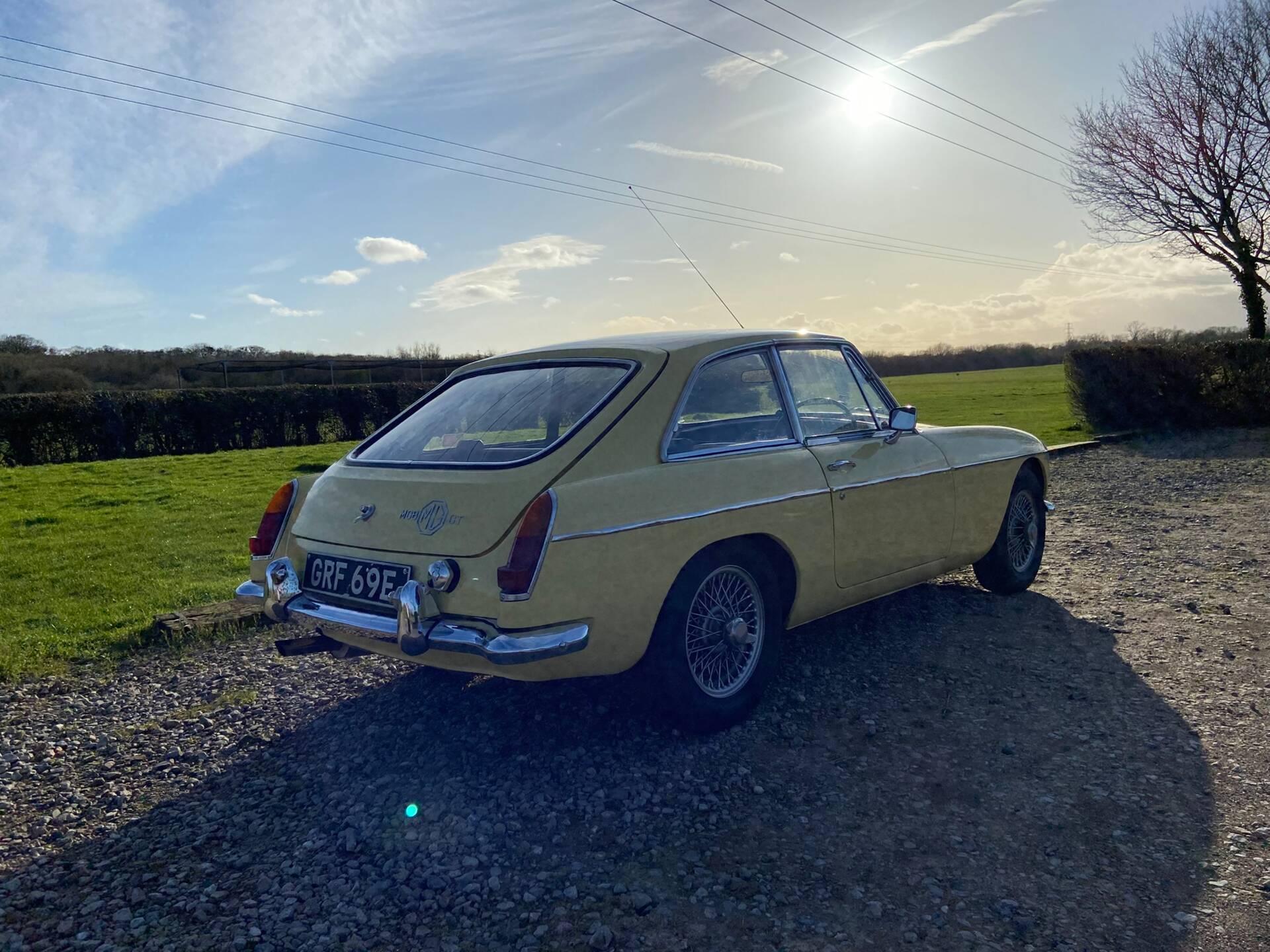 MGB GT Mk1 1967 chrome bumper and wire wheels.
