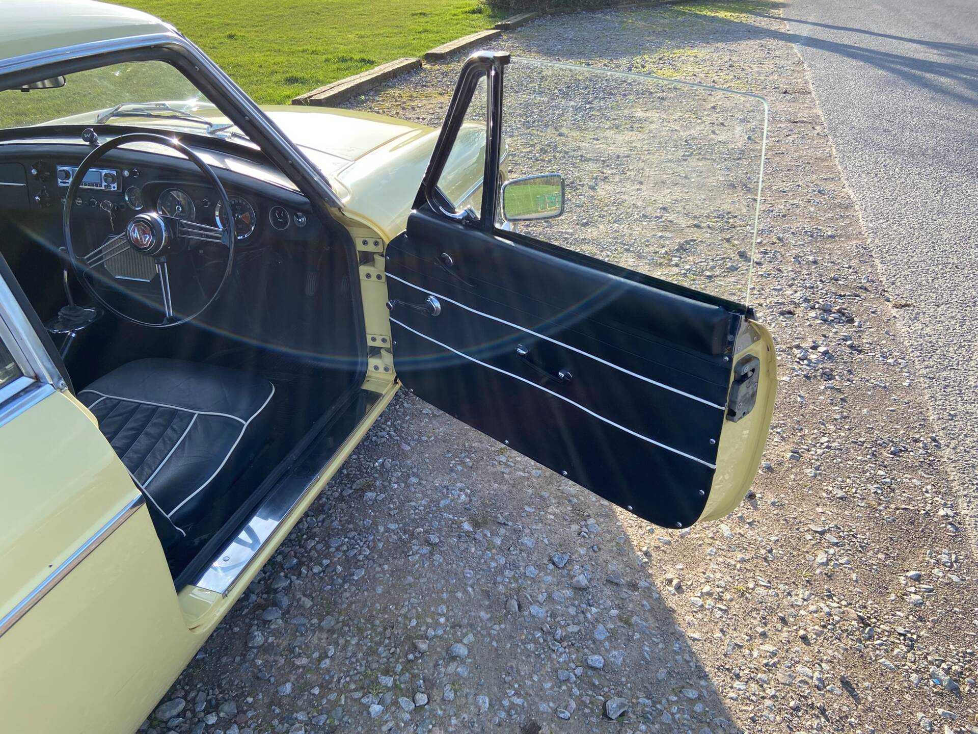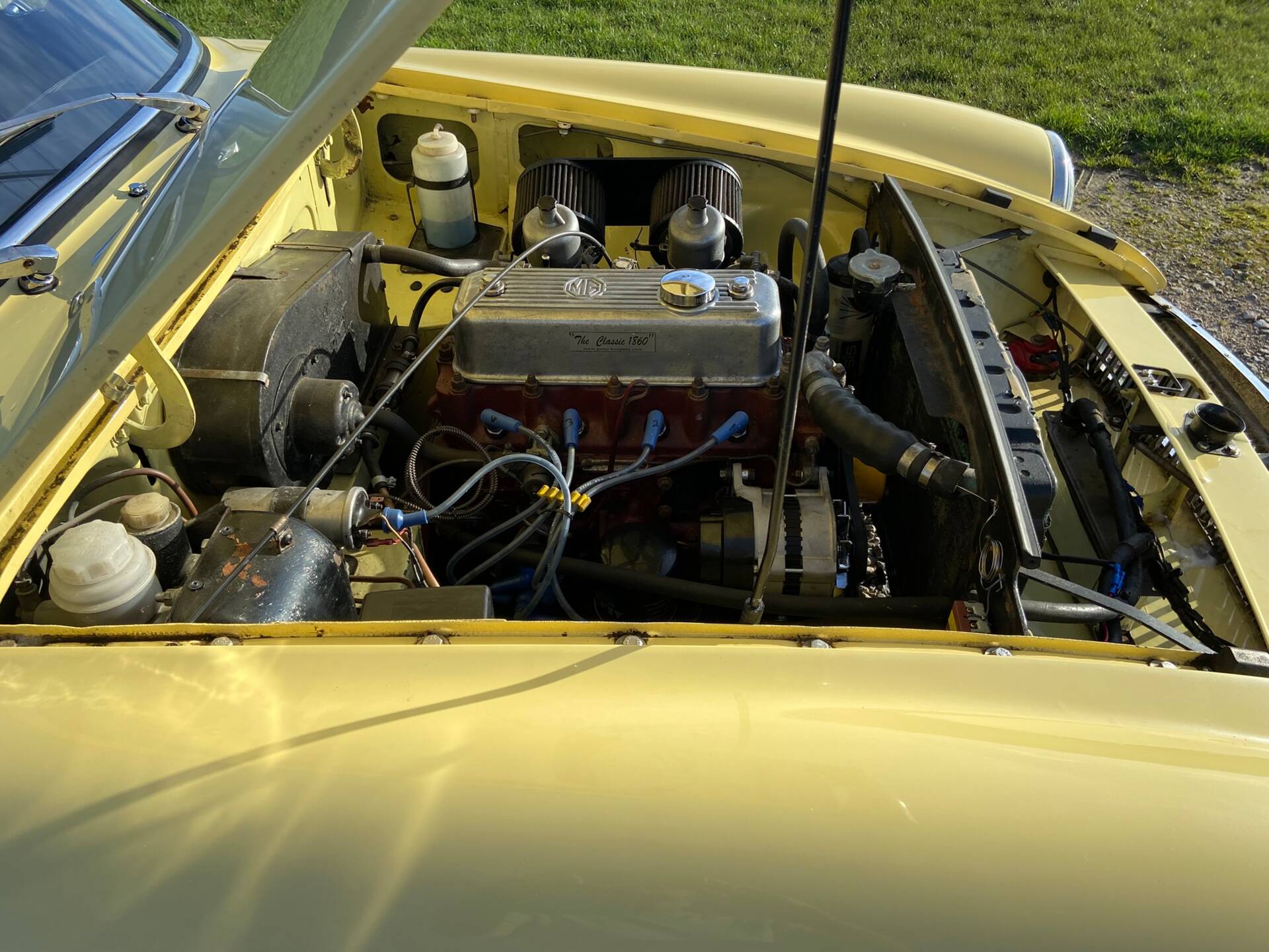 MGB GT Mk1 1967 chrome bumper wire wheels primrose yellow Peter Burgess engine