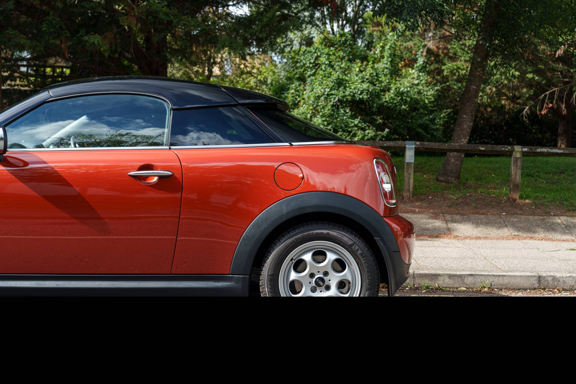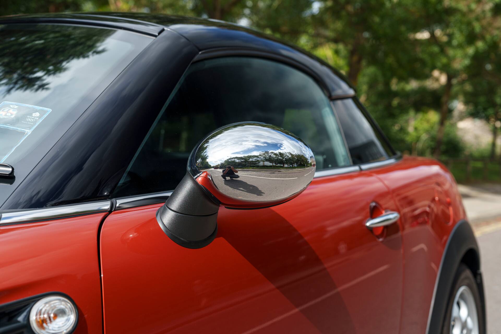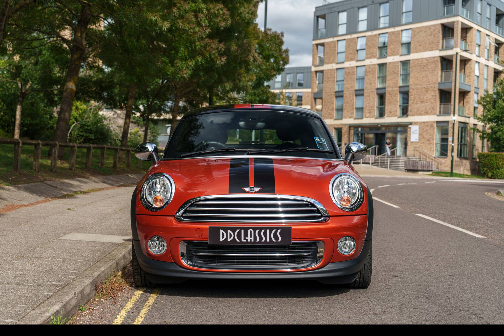 This outstanding one-owner Mini Cooper Coupé, finished in striking Spice Orange Metallic with a Cosmos Black cloth interior, has covered a mere 5,800 miles from new. Optional extras include;
