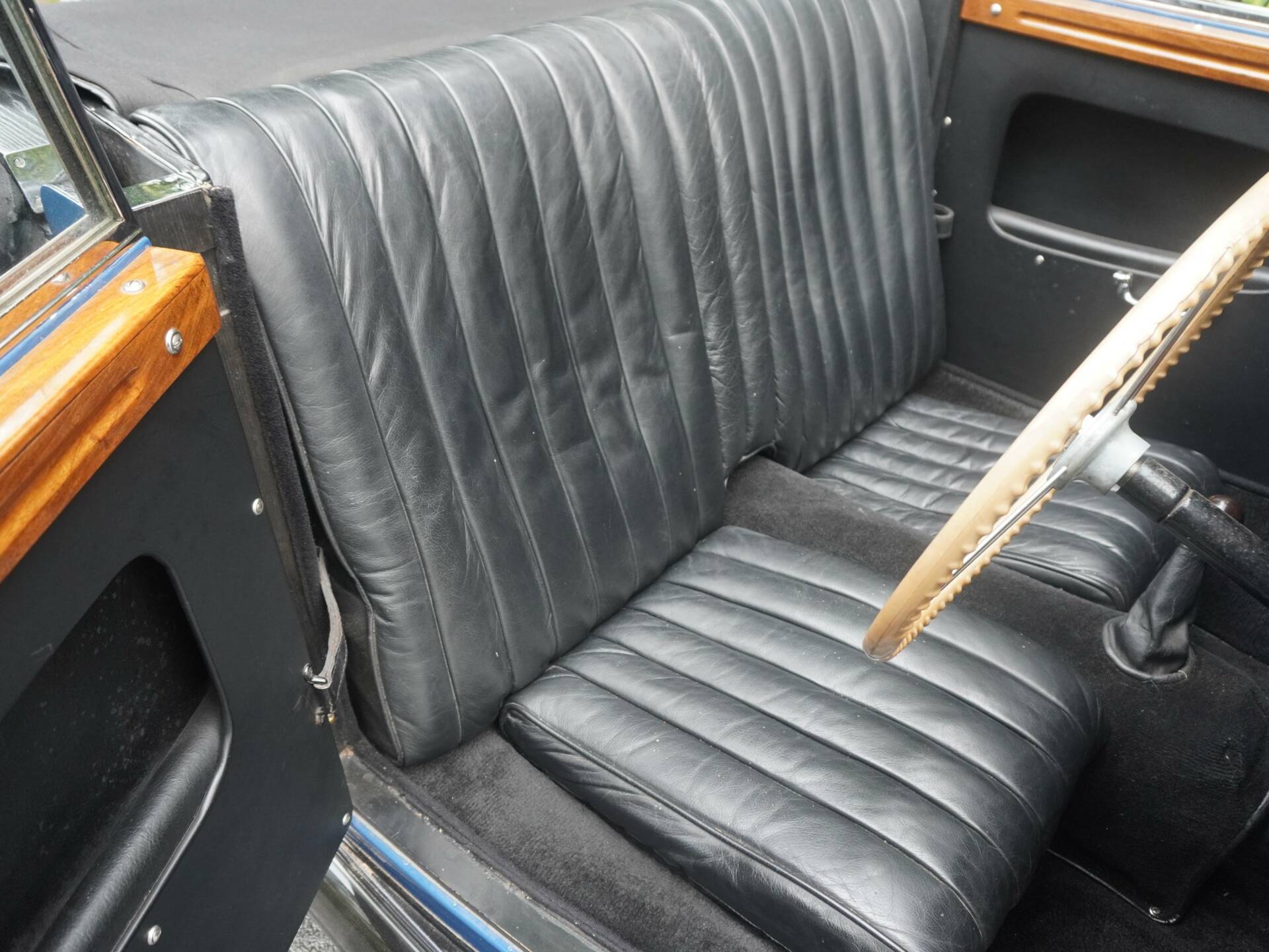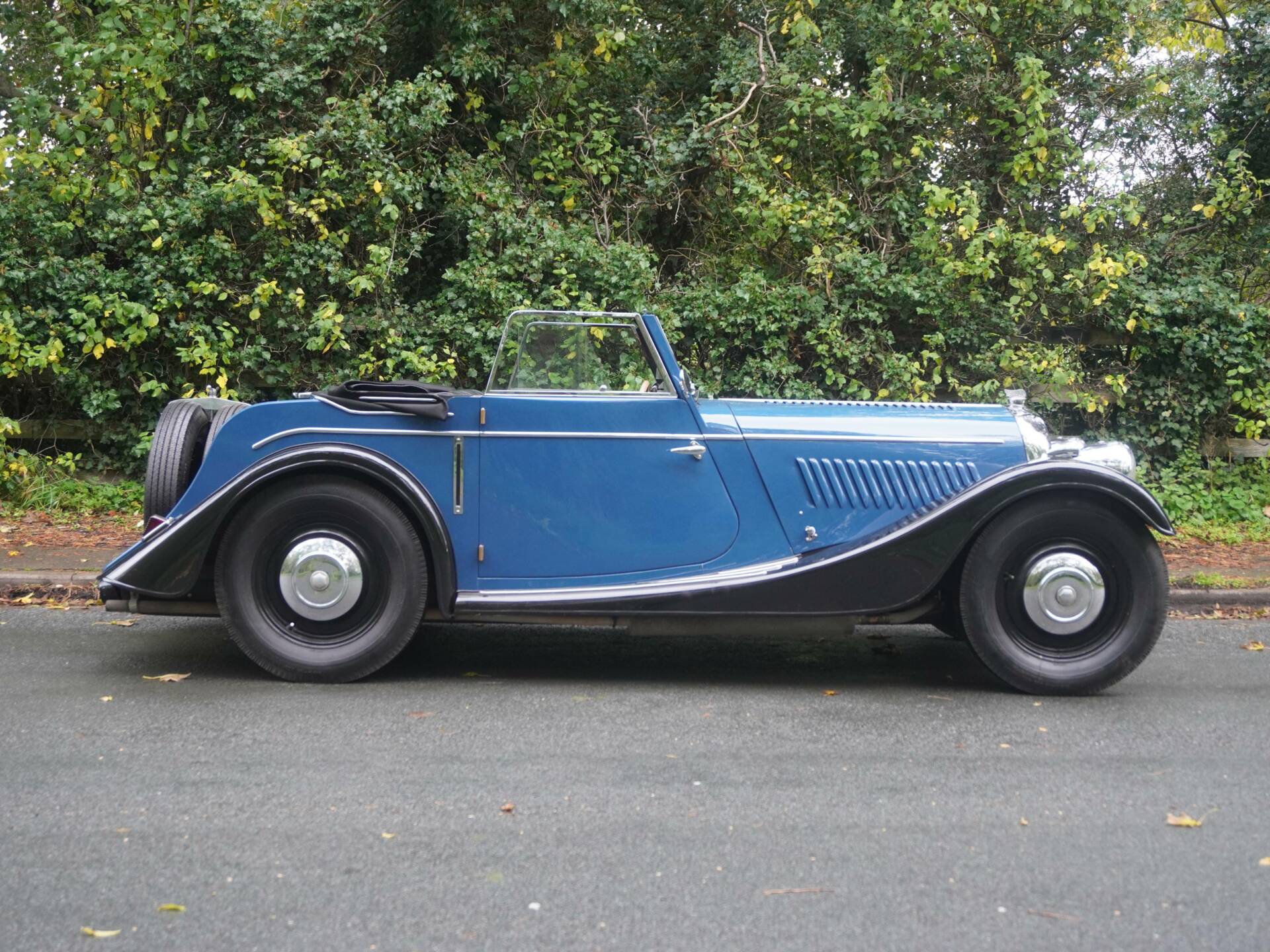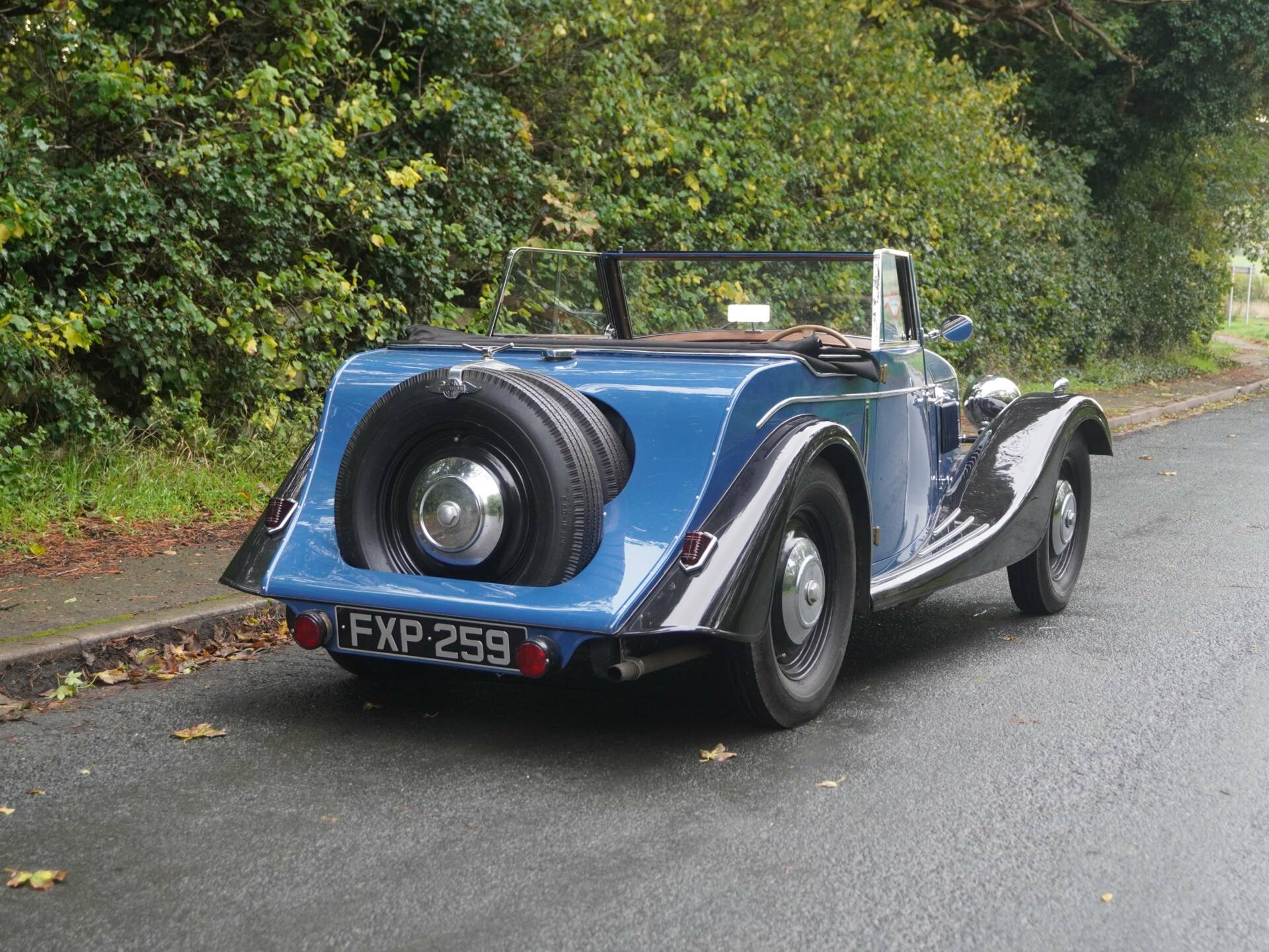 Introduced in 1936, this new Morgan model was the first to have both four cylinders and four wheels. Initially known as the 4-4, the car featured a Coventry Climax engine, but this was replaced in 1938 by a 1267cc Standard Special overhead valve unit mated to a four-speed Moss Gearbox. It soon gained a good reputation for lively performance and excellent handling, with many successes on the track Previously owned by a senior staff member at the Morgan factory, this is an ultra-rare Drophead Coupe, which was restored in the 1990s by marque specialists to concours condition. A matching numbers car, still in its original blue/black colour scheme, it is the fourth production example of only fifteen Standard Special Coupes built before the outbreak of WWII. It was a national concours winner at MOG 2015 and has been carefully preserved in superb condition.