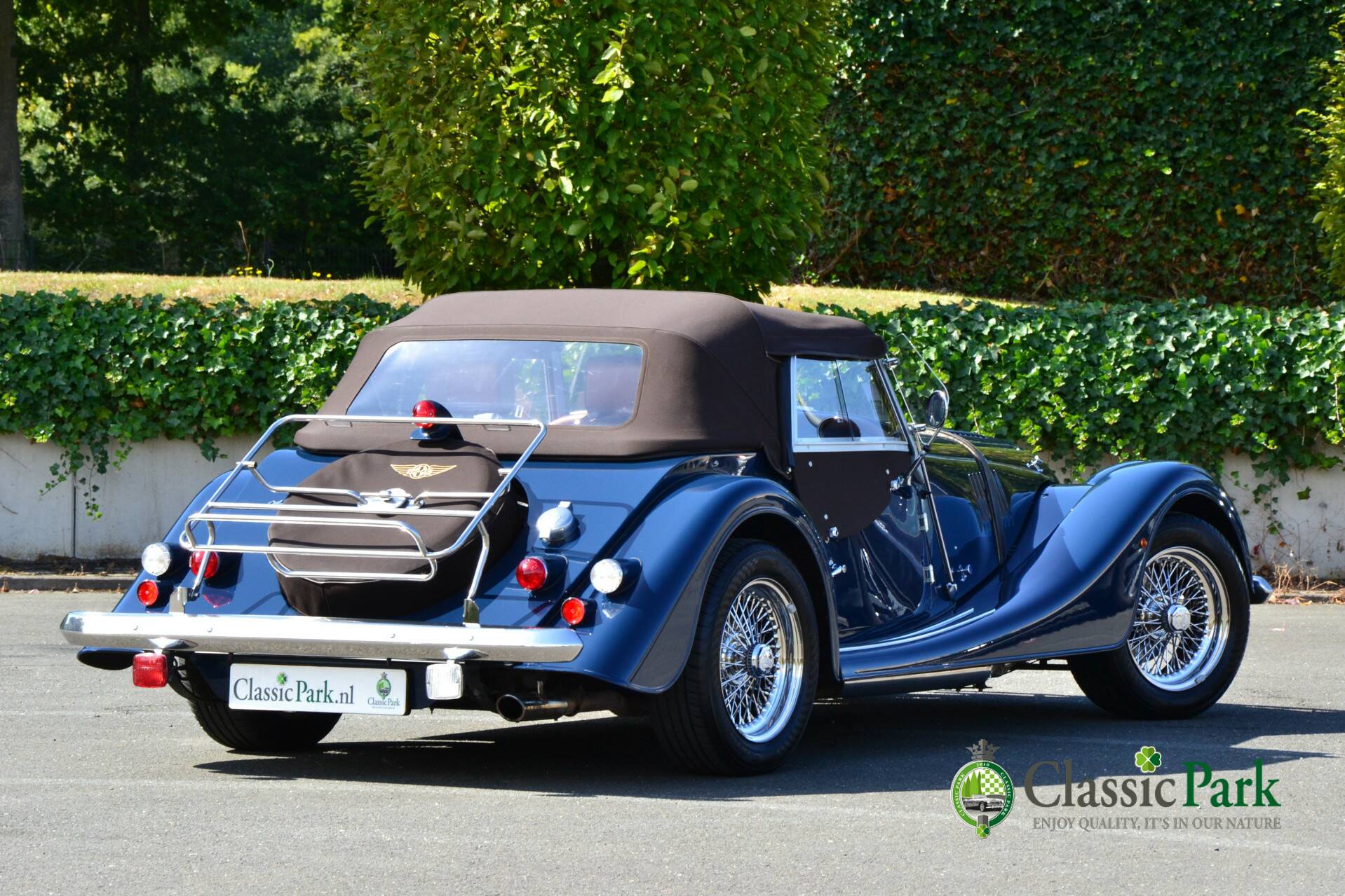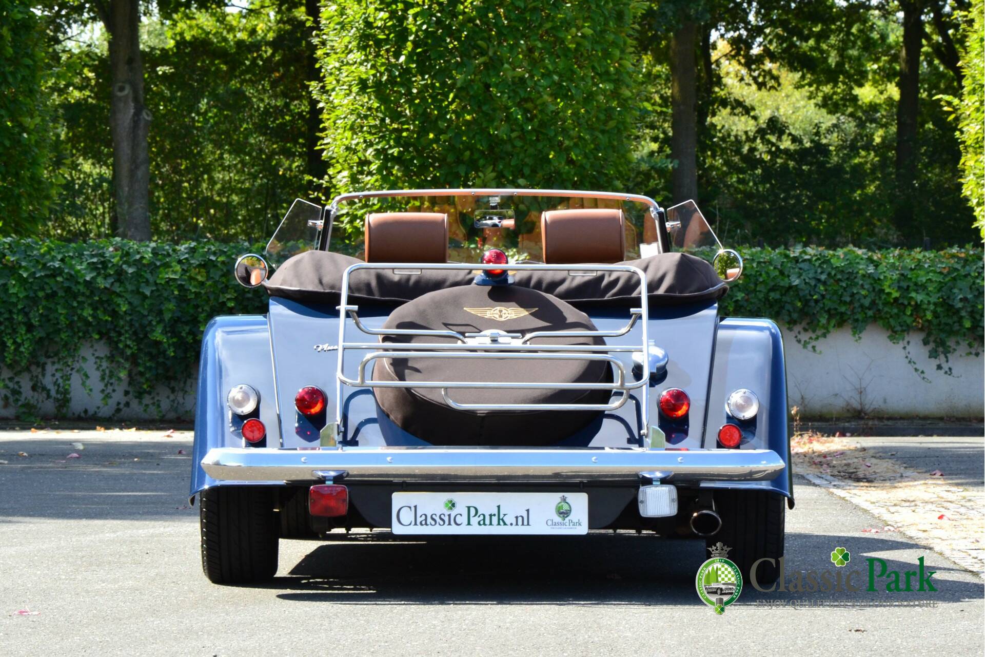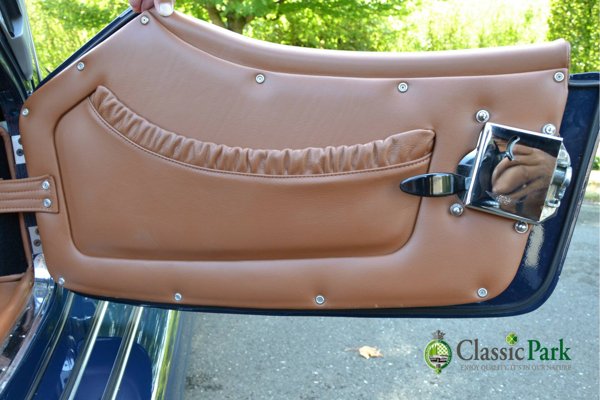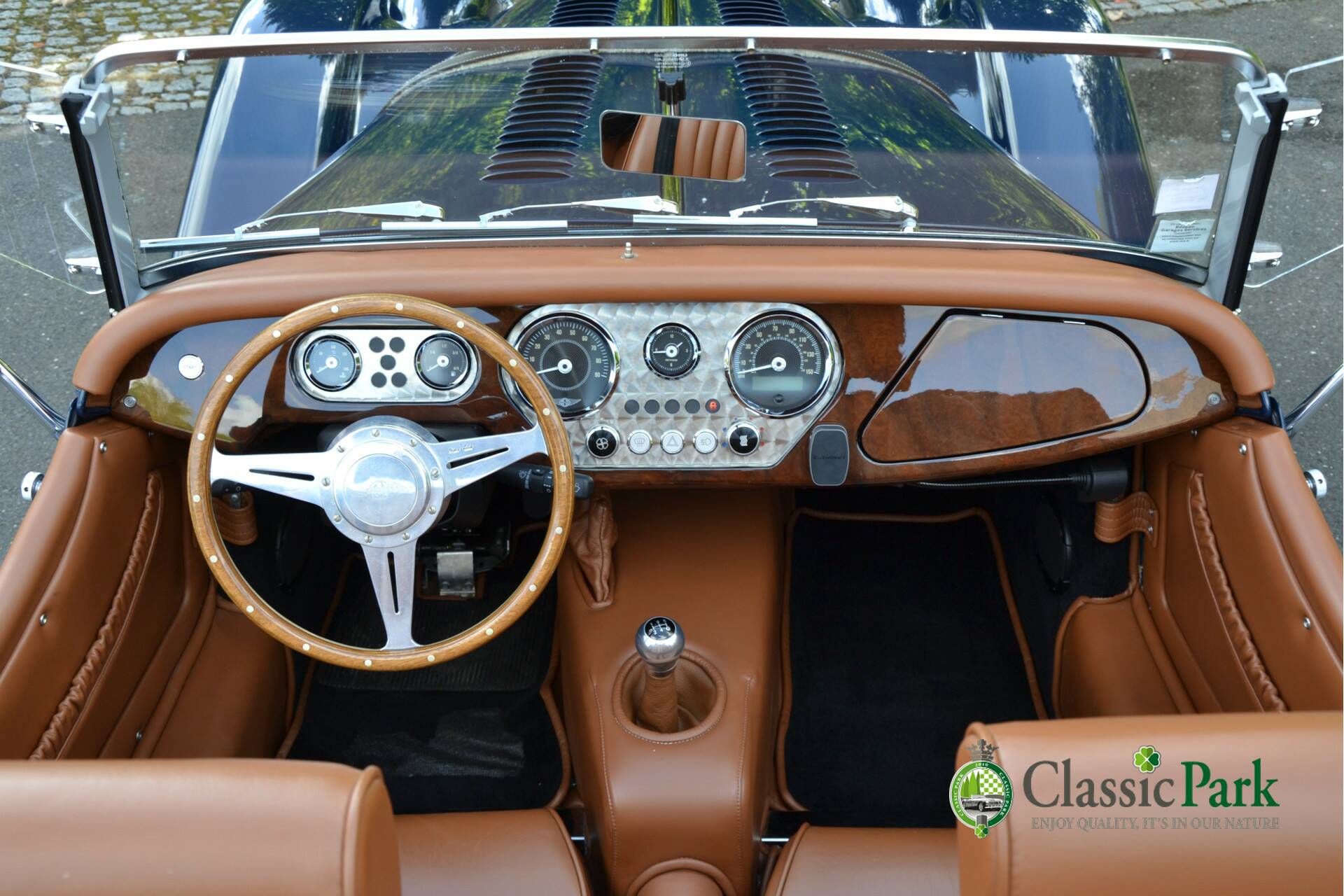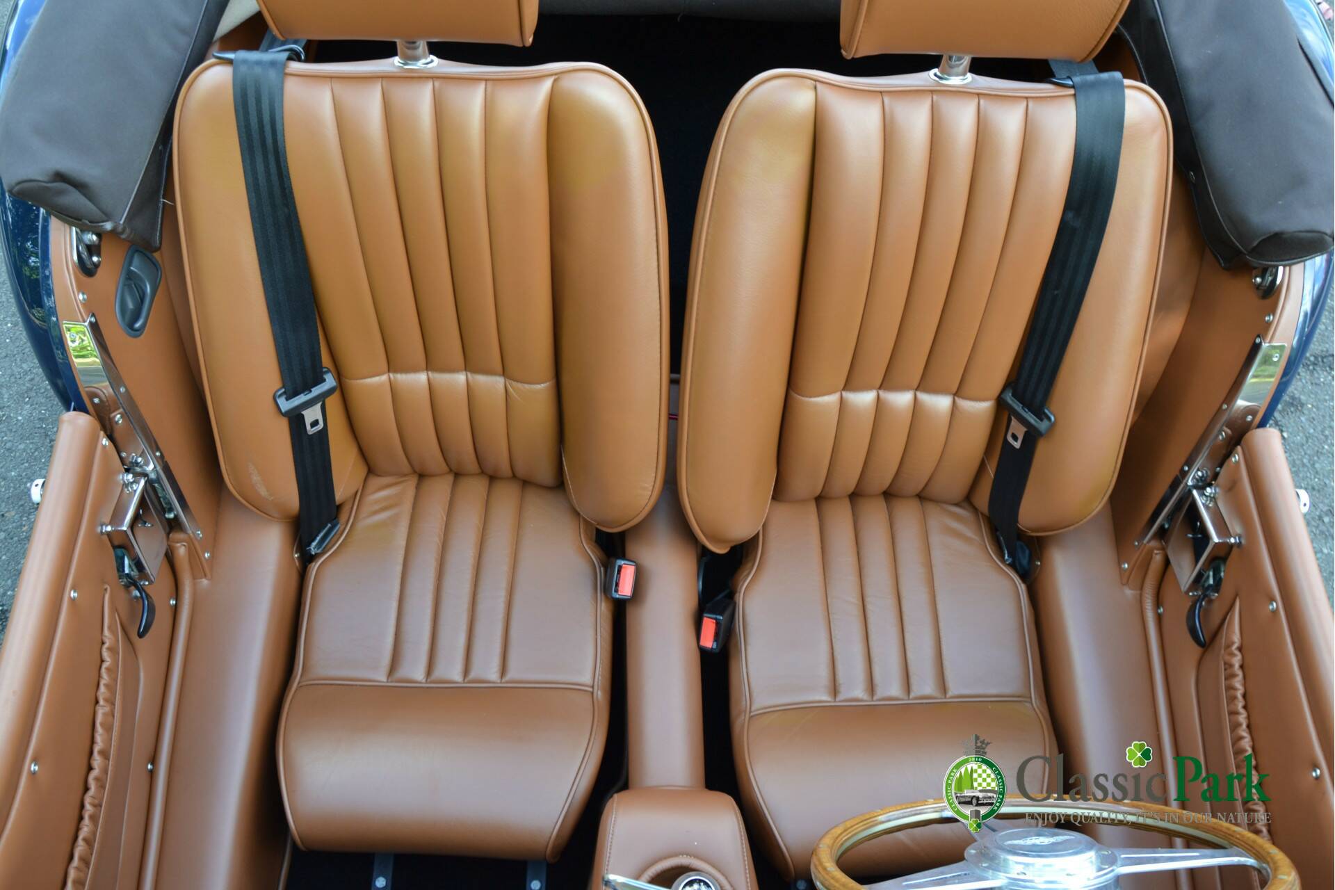 Under the long bonnet lies a smooth 2.0-liter Ford four-cylinder engine producing 156 hp, paired with a five-speed manual gearbox. Reliable, powerful, and refined enough for long European journeys, yet playful on winding roads. This Morgan looks stunning in Navy Blue, beautifully complemented by the brown mohair hood, spare wheel cover, and tonneau cover. The bodywork is straight, free from corrosion or damage, and the paintwork is in excellent condition.