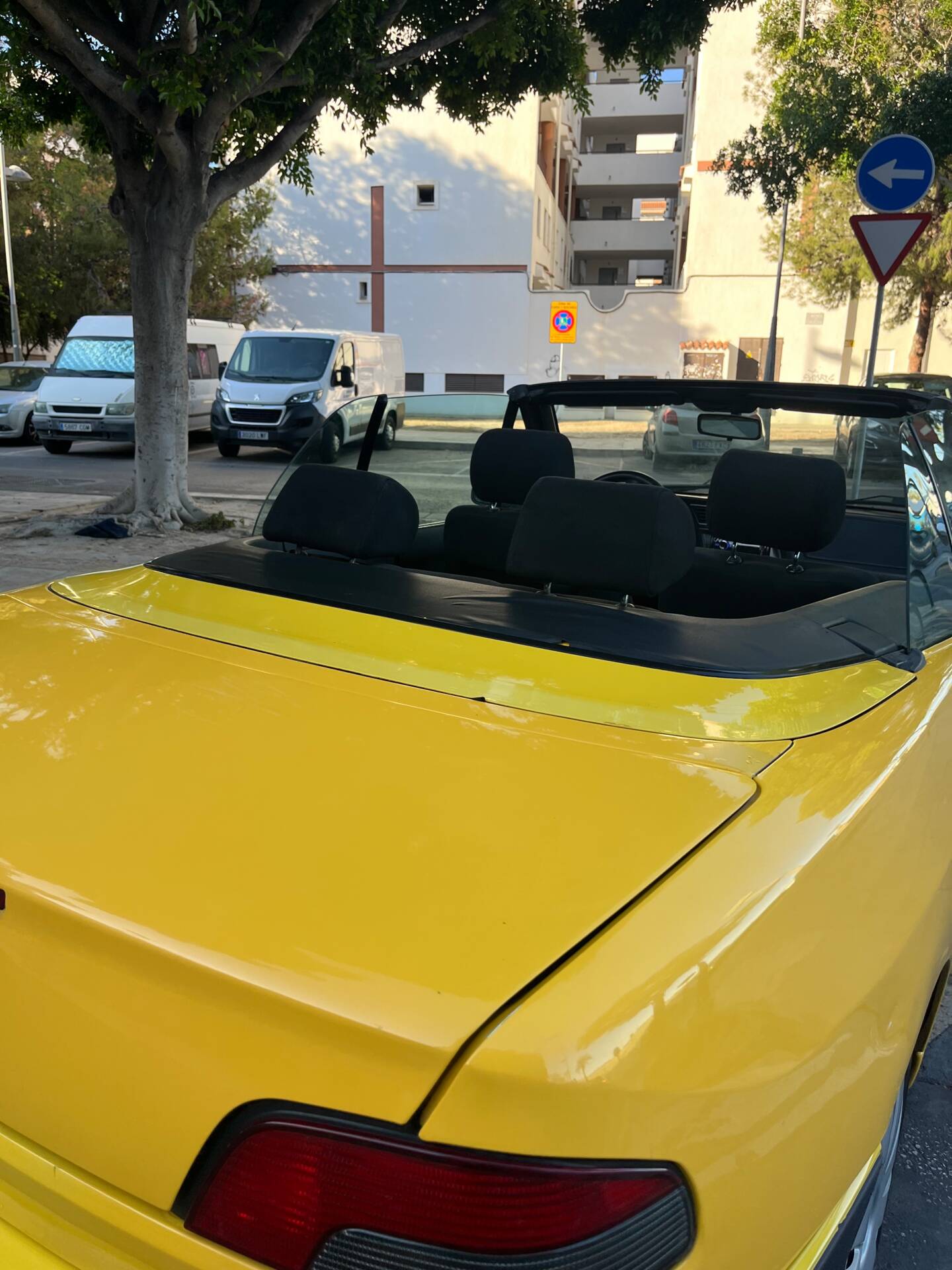 Peugeot 306 Cabrio 1.6 gasolina del año 2001 en color amarillo original. El coche se encuentra en excelente estado general, siempre guardado en garaje y con un mantenimiento muy cuidado.