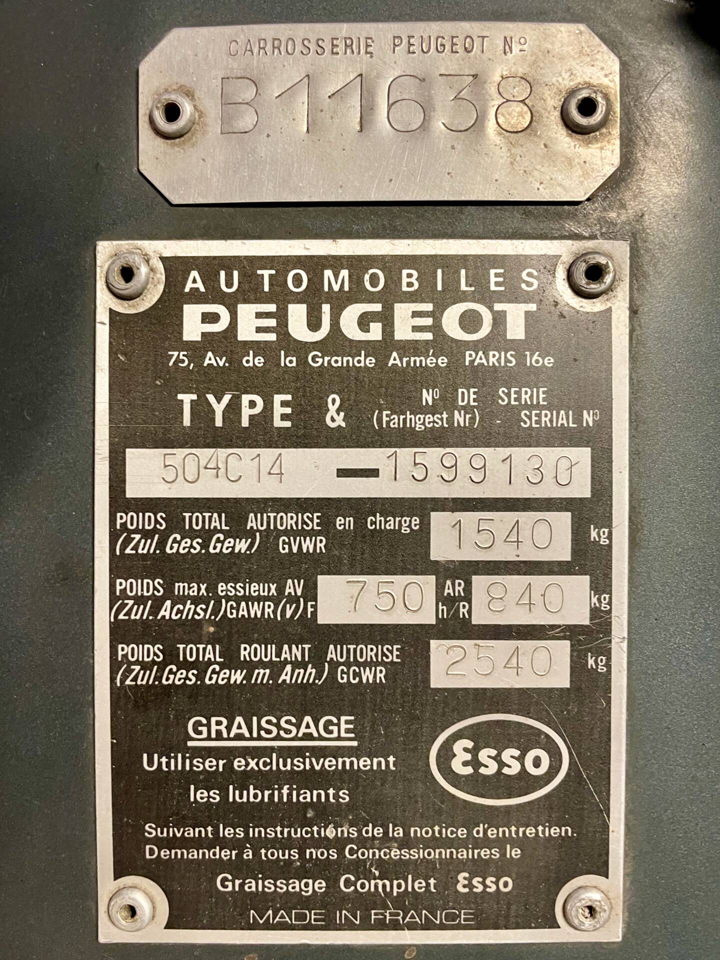Probabilmente una delle migliori Peugeot 504 Coupé 2.0 Automatiche (rara) con aria condizionata (optional rarissimo) oggi in Italia. Auto targata italiana con revisione valida fino a luglio 2027, appartenente al Segretario del Club Storico Peugeot Citroën Italia e provvista di Certificato di Rilevanza Storica ASI.