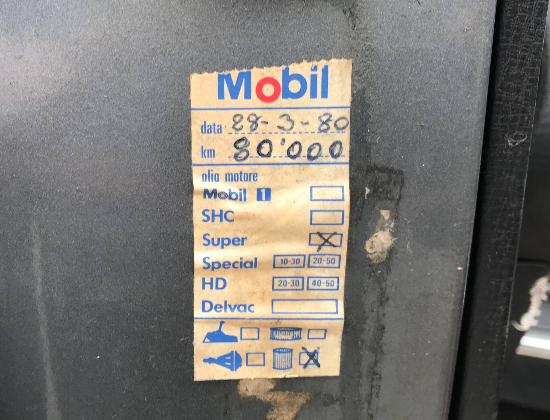 L’auto circola regolarmente. Il serbatoio benzina è stato completamente rifatto con trattamento Tankerite e prova in pressione superata. Il contachilometri segna circa 85.500 km, ritenuti autentici poiché la vettura è rimasta ferma dal 1982 (vedi fotografia relativa all'ultimo tagliando del 1980 prima del restauro). Da quello che si è compreso la vettura era unico proprietario.