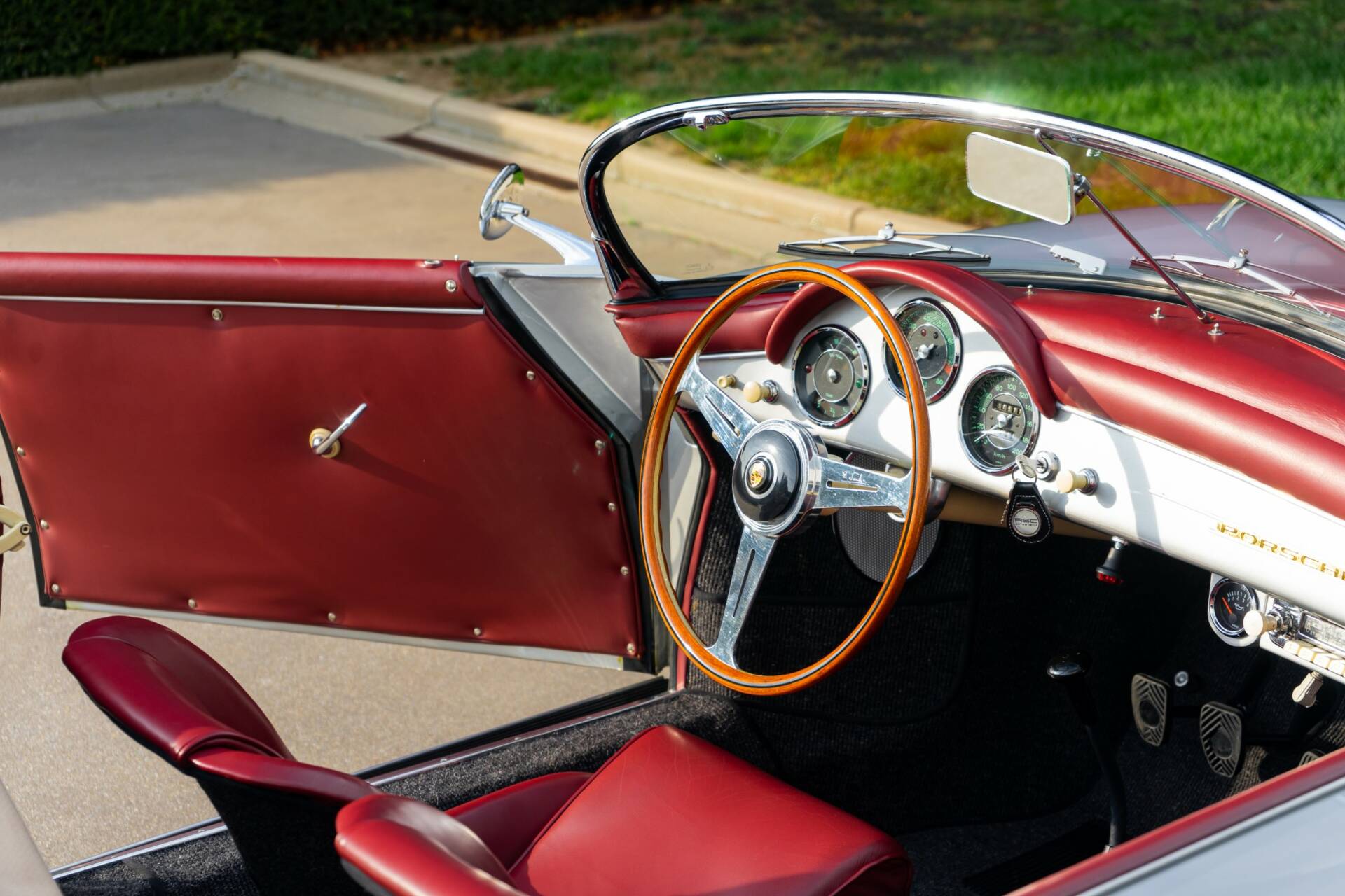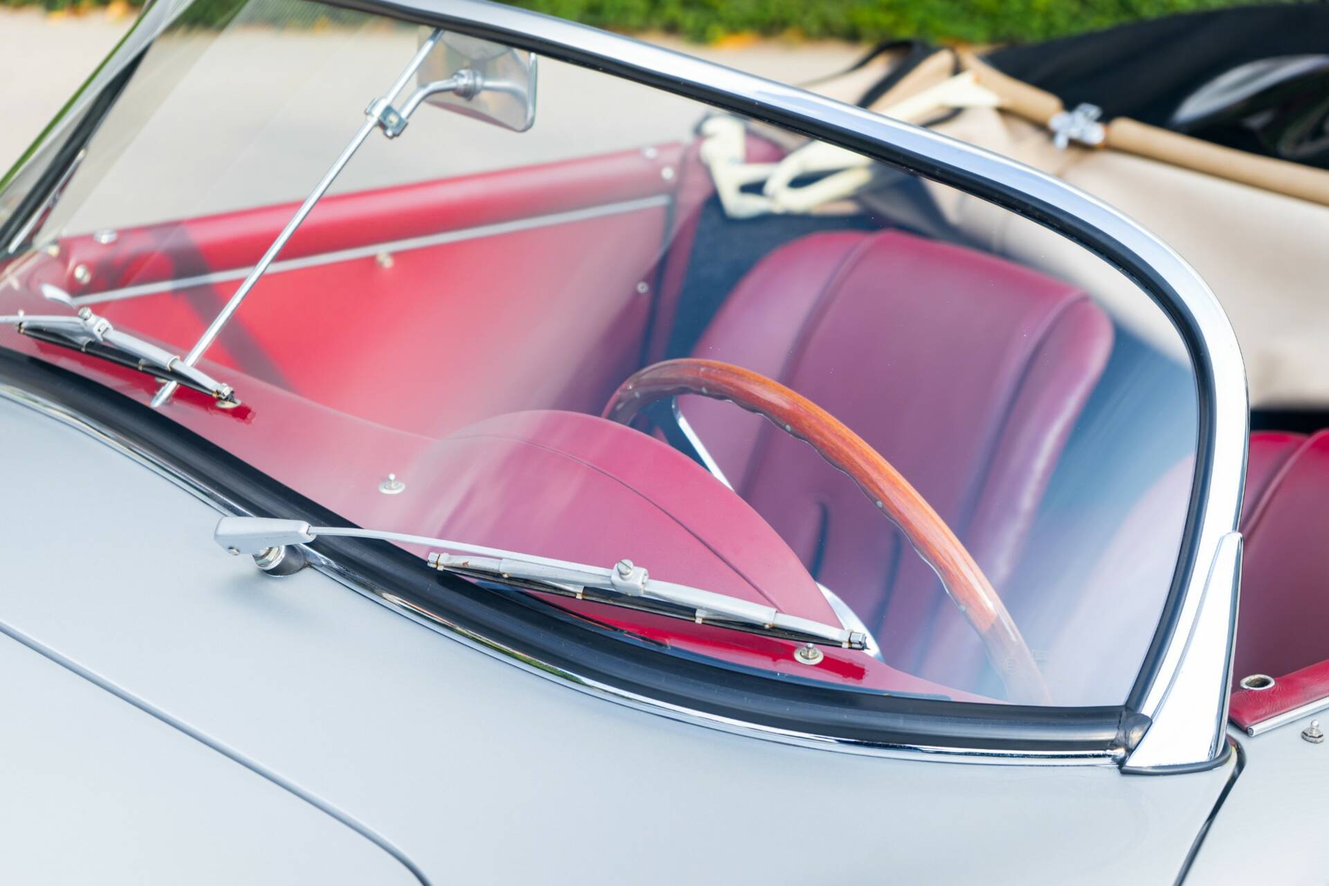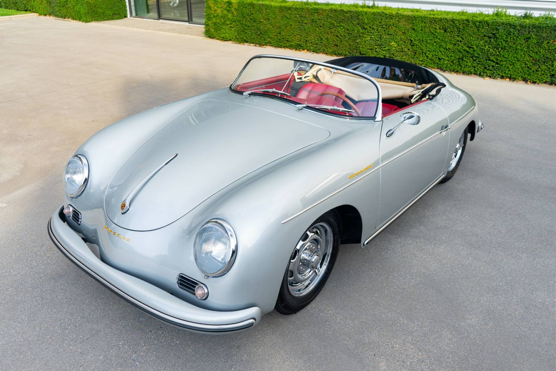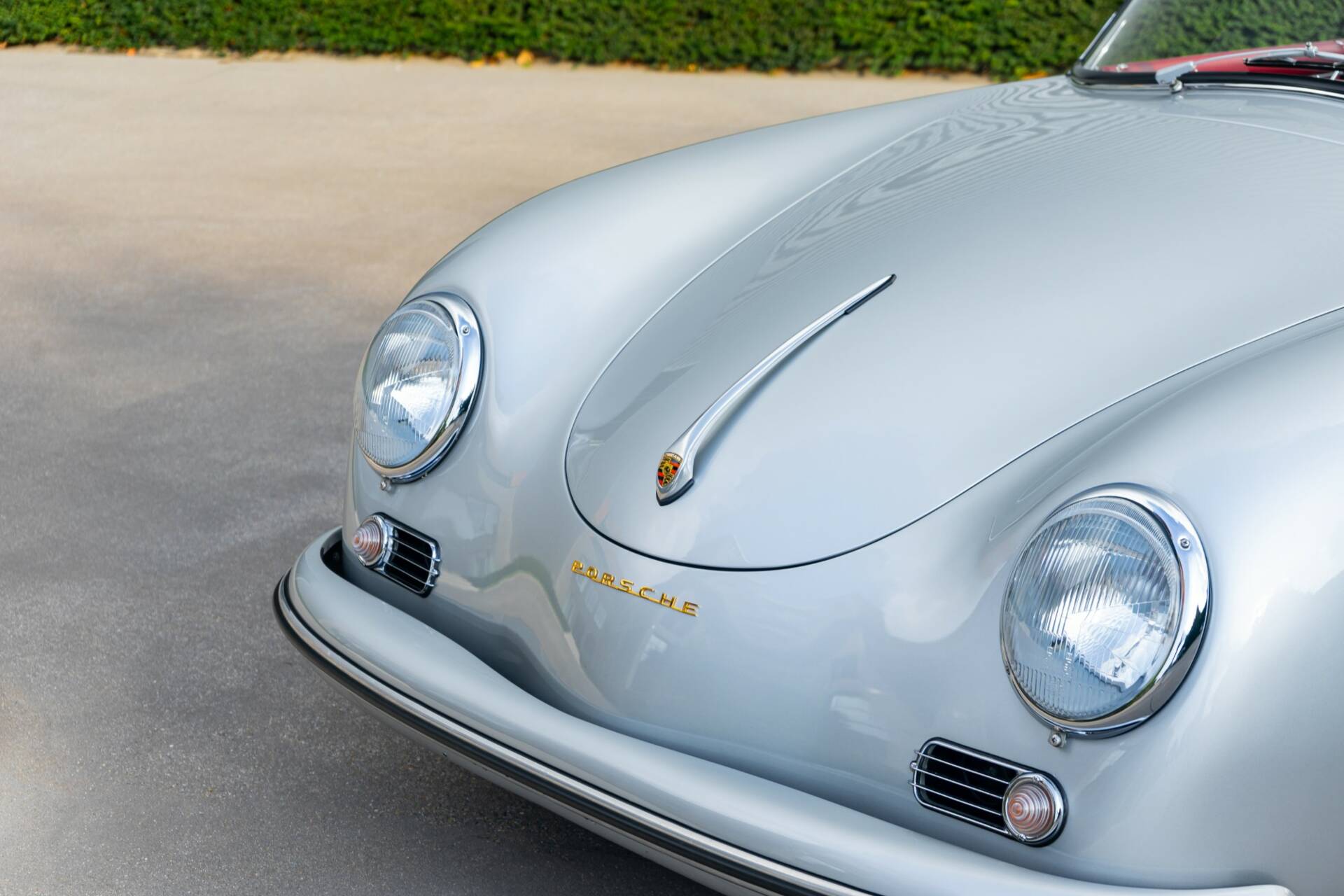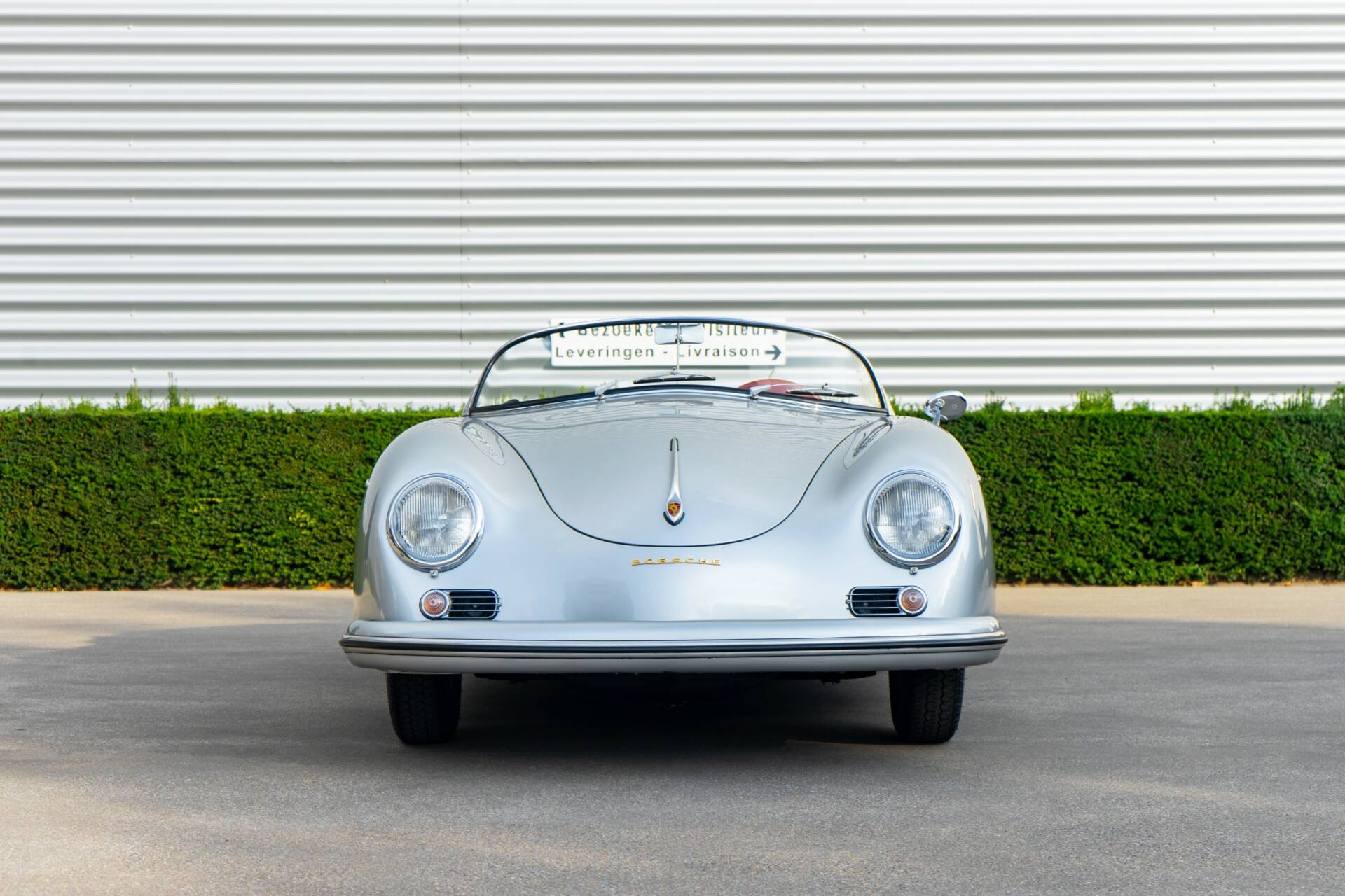 Completed at the Zuffenhausen-based Porsche Works in 1957, this spectacular Speedster was built as one of the final T1 cars of the model year. Finished in Silver metallic exterior over a red leatherette interior, the car was - as most Speedster were - destined for the North American market, where Max Hoffman's famous Porsche agency served as importer.