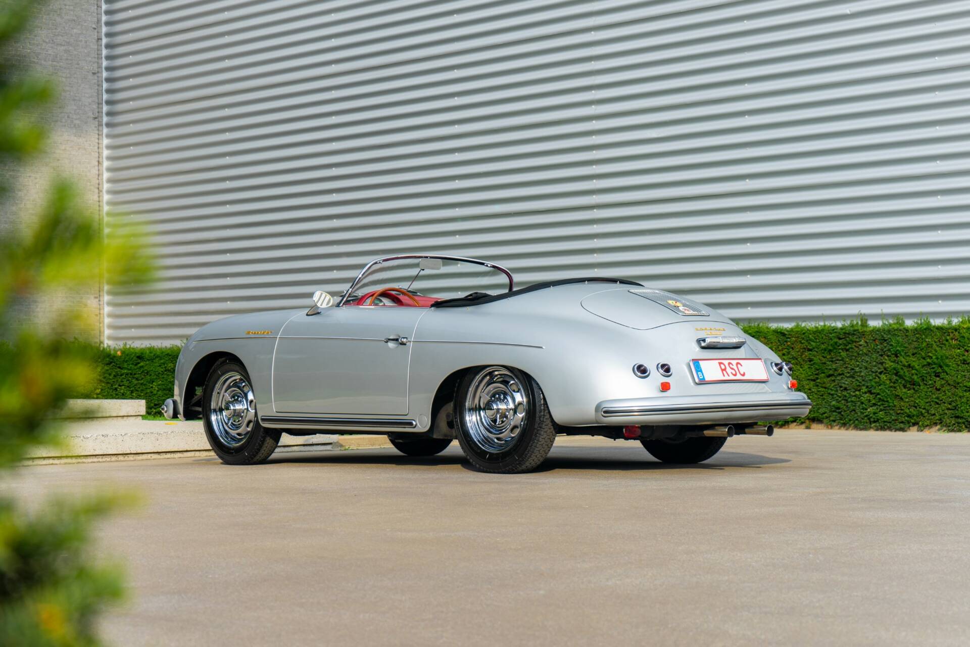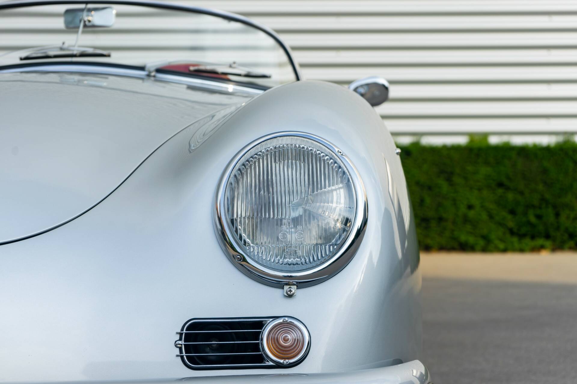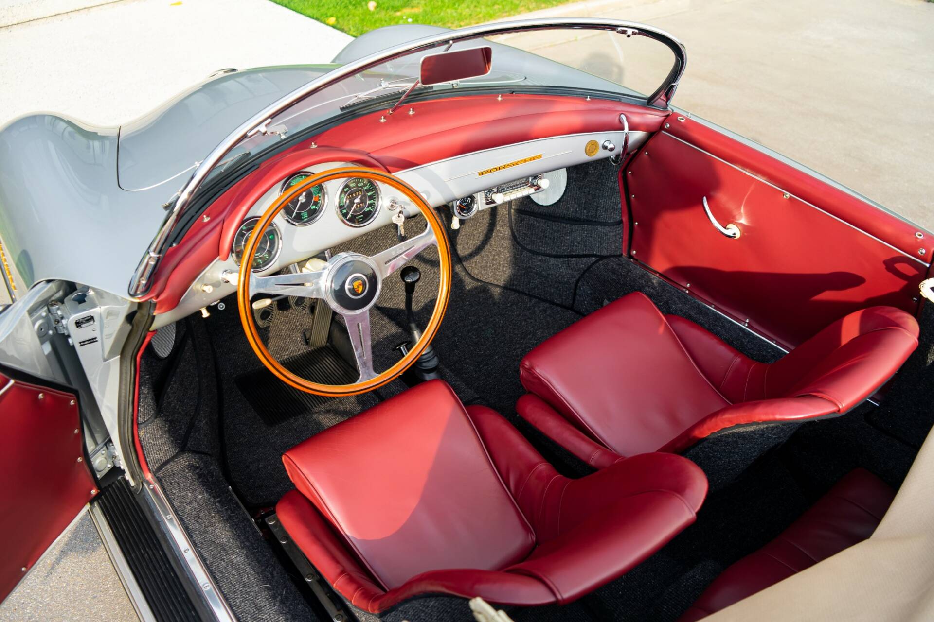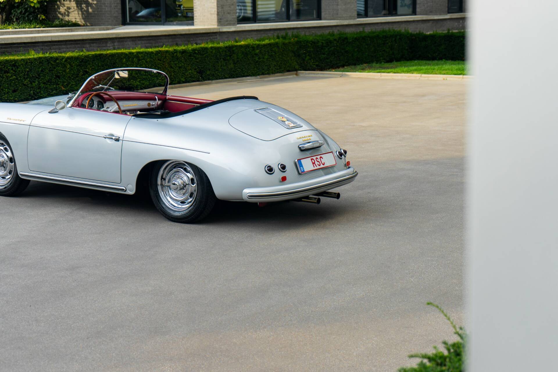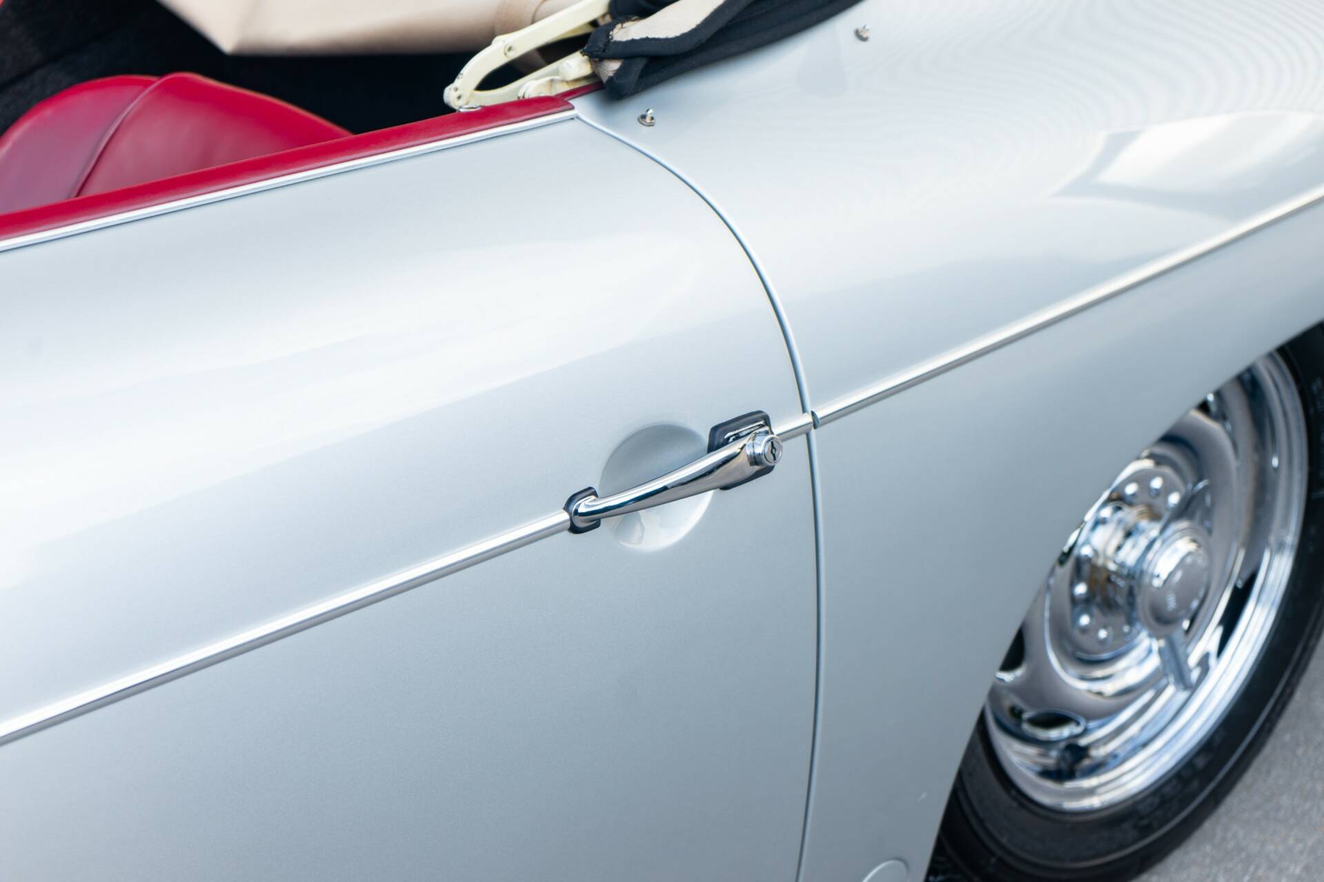 Completed at the Zuffenhausen-based Porsche Works in 1957, this spectacular Speedster was built as one of the final T1 cars of the model year. Finished in Silver metallic exterior over a red leatherette interior, the car was - as most Speedster were - destined for the North American market, where Max Hoffman's famous Porsche agency served as importer.