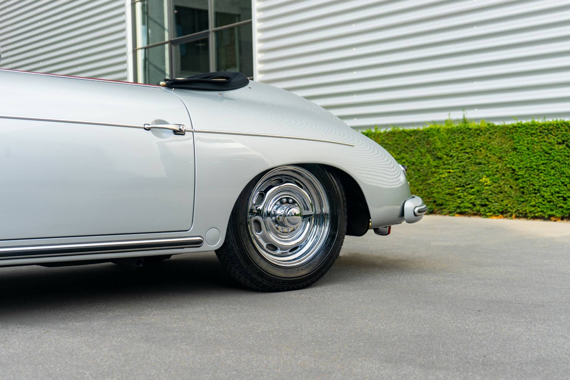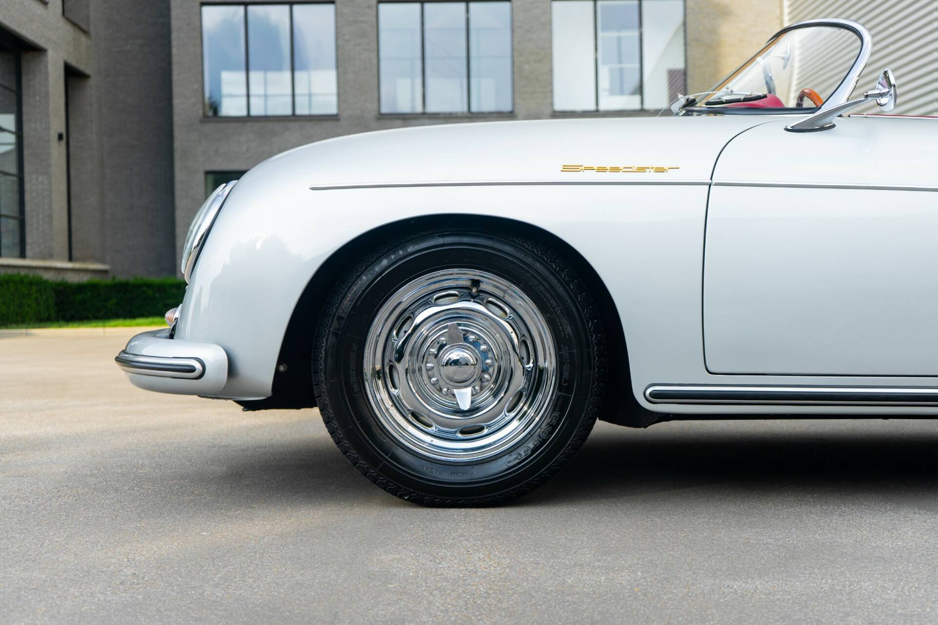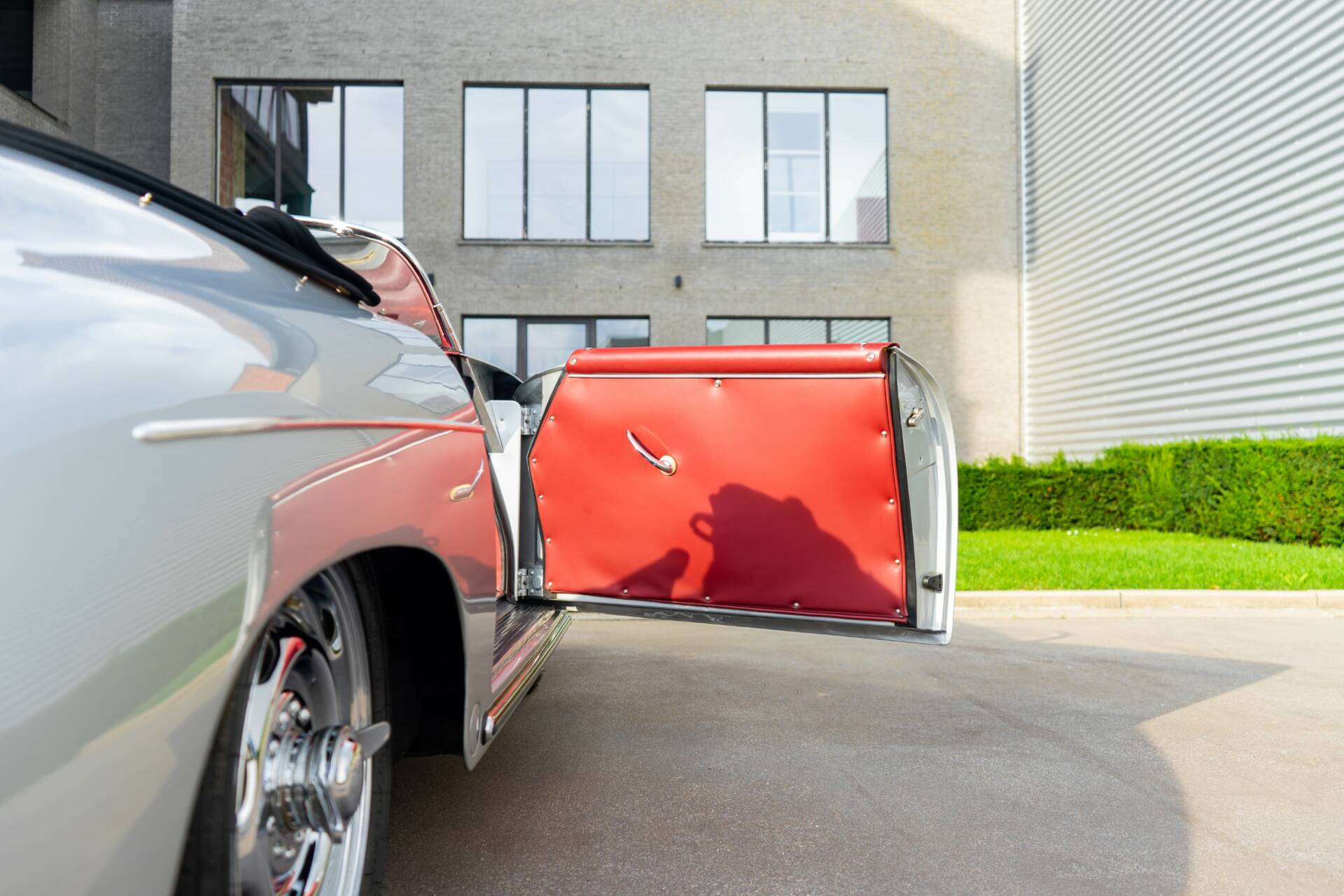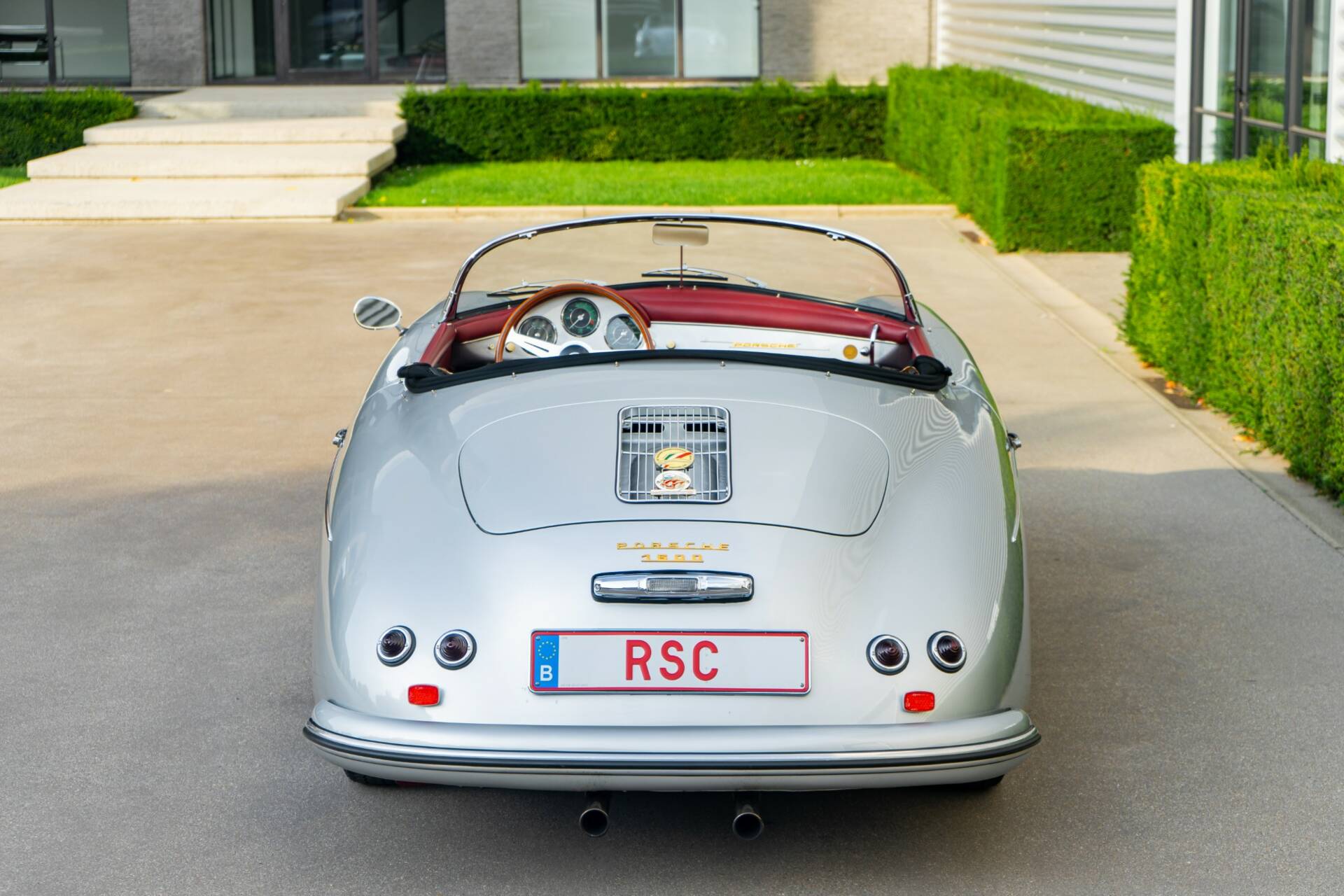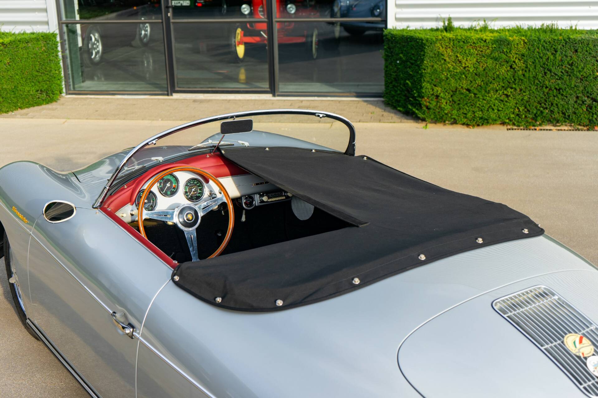 Completed at the Zuffenhausen-based Porsche Works in 1957, this spectacular Speedster was built as one of the final T1 cars of the model year. Finished in Silver metallic exterior over a red leatherette interior, the car was - as most Speedster were - destined for the North American market, where Max Hoffman's famous Porsche agency served as importer.