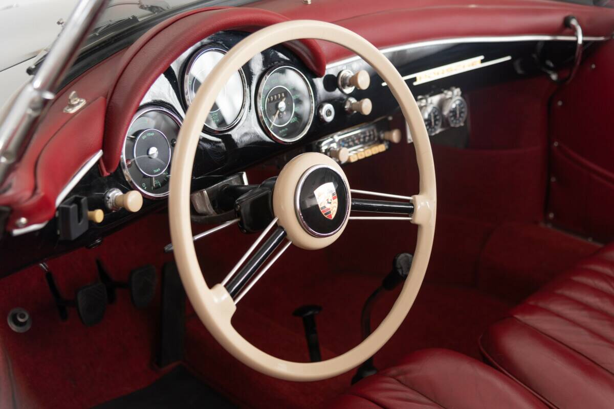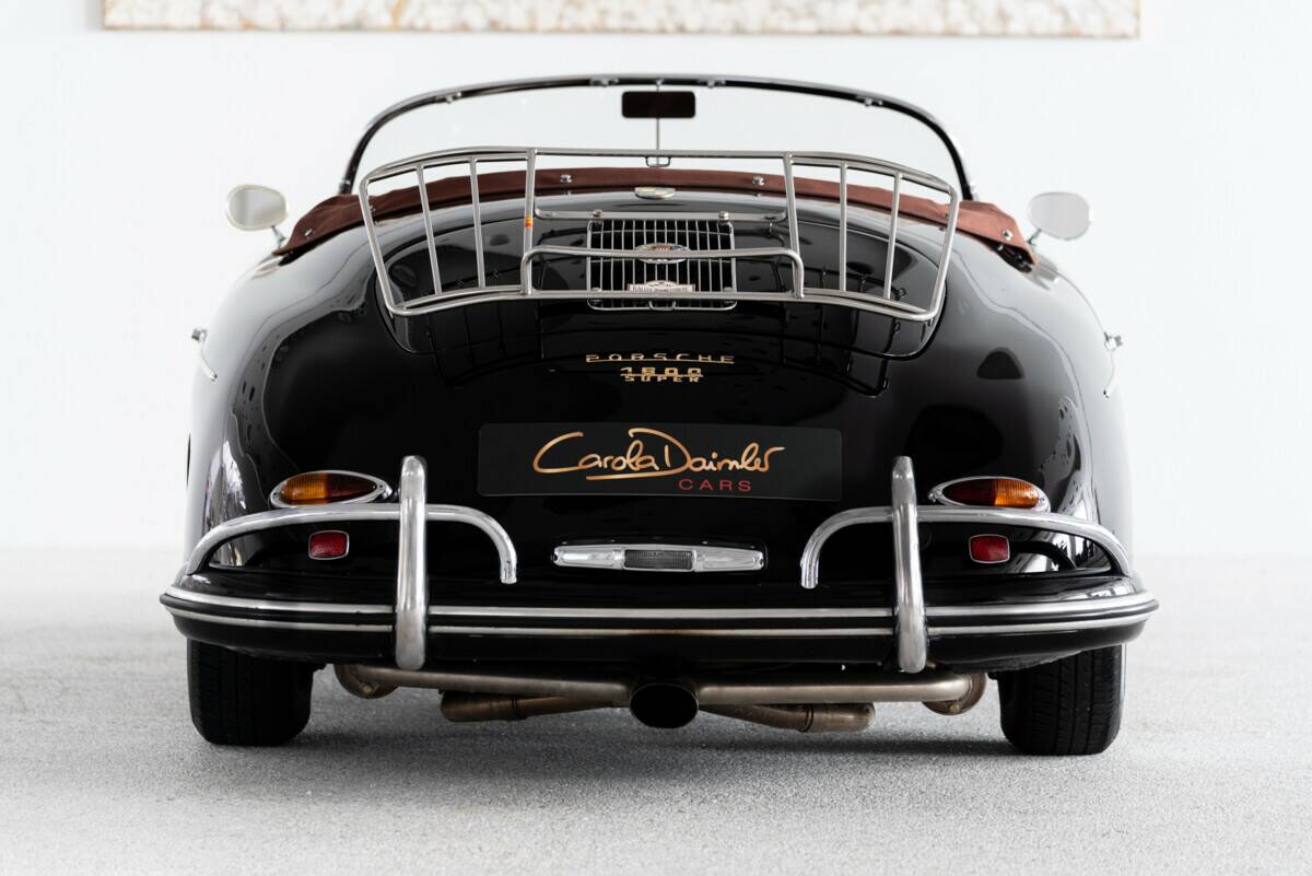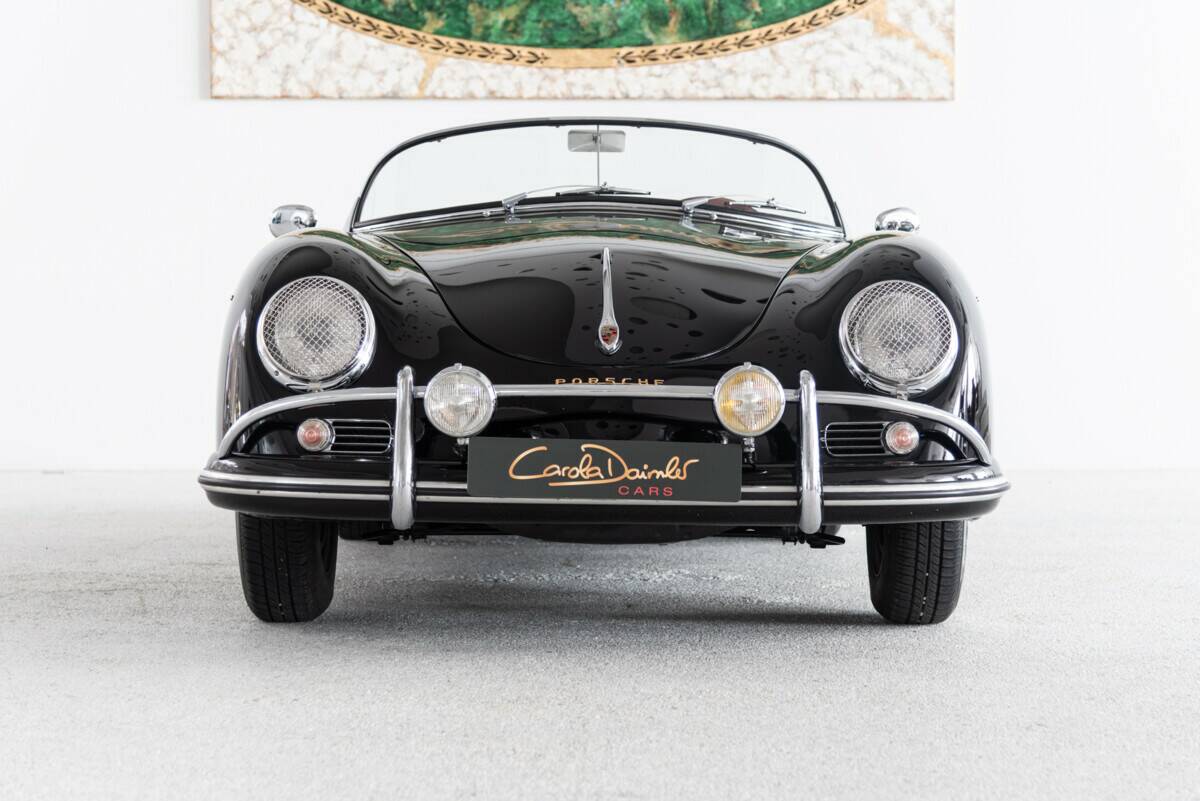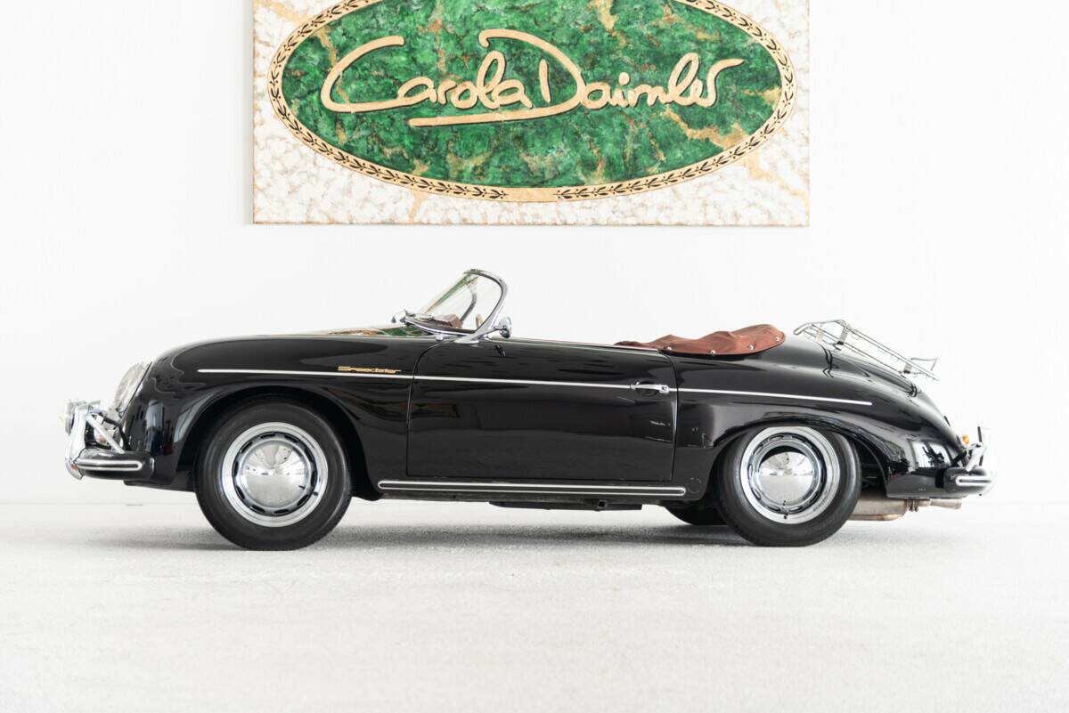 Der hier zum Verkauf angebotene Porsche 356 A 1600S Speedster wurde im Februar 1958 nach München ausgeliefert an die Firma MAHAG. Es handelt sich somit um eine der begehrten deutschen Erstauslieferungen.Der Porsche ist in einem ausgezeichneten Zustand. Als Speedster ist dieser 356 A äußerst selten und begehrt, was ihn zu einer wahren Rarität auf dem Markt macht.Die klassische Farbkombination in Schwarz mit dunkelrotem Leder ist zwar nicht die originale, aber passt sensationell zu diesem zeitlosen Stück Geschichte. Der Motor wurde zum ersten Mal am 19.03.1962 von der Firma MAHAG getauscht, das Getriebe wurde von der gleichen Firma im selben Jahr im Oktober gewechselt, anhand der vorhandenen Datenkarte von Porsche kann dies nachvollzogen werden.Ein Porsche Echtheitszertifikat von 2006 und ein Gutachten von 2014 bestätigen den hervorragenden technischen wie auch optischen Zustand. Das Gutachten, welches Dipl. -Ing. Klaus Kukuk ausstellte bewertet den Wagen mit der Note 2+.Zu den Highlights dieses Fahrzeugs gehören die hochwertige Lackierung in Schwarz und die Lederausstattung in Rot, welches dem Fahrzeug einen unverwechselbaren Look verleiht, sowie die Sonderausstattung, welche folgendes beinhaltet: Antenne, Coupe-Getriebe, Coupe-Sitze beide tiefer geschnürt, Scheibenwaschanlage, Zigarrenanzünder und verchromte Lochscheibenräder.Dieser Porsche 356 A 1600s Speedster ist nicht nur ein Traum für Liebhaber und Sammler, sondern auch eine Investition, die im Wert steigen wird. Der Porsche 356 A 1600S Speedster ist ein legendäres Automodell, das in der Geschichte der Automobilindustrie einen besonderen Platz einnimmt. Der Speedster wurde erstmals im Jahr 1954 von Porsche vorgestellt und war eine Weiterentwicklung des ursprünglichen Porsche 356.Der 356 A 1600S Speedster wurde als offenes zweisitziges Roadster-Modell konzipiert und war für seine sportliche Performance und seine ikonische Silhouette bekannt. Mit einem leichten Aluminium-Karosserieaufbau und einer niedrigen Frontscheibe verströmte der Speedster einen Hauch von Rennwagen-Ästhetik.Angetrieben wurde der Speedster von einem 1,6-Liter-Vierzylinder-Boxermotor, der eine Leistung von 75 PS entwickelte. Obwohl diese Leistung heutzutage vielleicht nicht beeindruckend erscheint, war der Speedster damals ein echter Sportwagen, der aufgrund seines geringen Gewichts und seiner agilen Fahrweise viel Fahrspaß bot.Obwohl der Speedster nur für eine kurze Zeit produziert wurde - von 1954 bis 1958 - hat er bis heute eine beeindruckende Fangemeinde. Sein zeitloses Design und seine sportlichen Eigenschaften machen ihn zu einem begehrten Sammlerstück und einem Fahrzeug, das in der Automobilgeschichte einen unvergesslichen Eindruck hinterlassen hat. Er ist ein Meilenstein in der Geschichte des Unternehmens und ein Symbol für die goldenen Jahre des Sportwagenbaus.