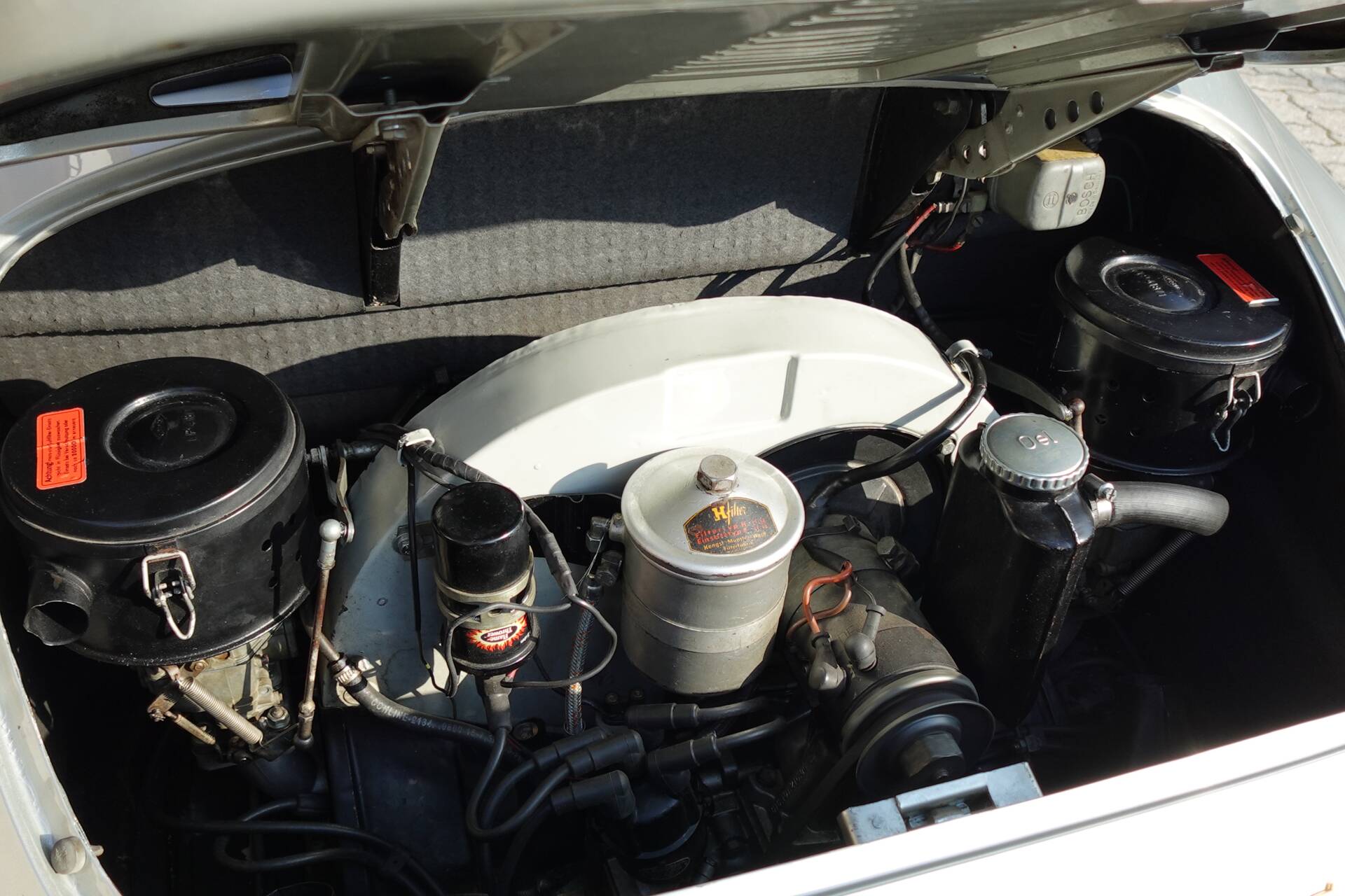 Das schöne 356 C Cabriolet ist mit dem 75 PS Motor ausgestattet, was durch das geringe Fahrzeuggewicht von nur ca. 940 kg, völlig ausreichend ist, um flott unterwegs zu sein. Aktuell wurde der Porsche in einer Fachwerkstätte für Porsche-Klassiker serviciert, Öle/Filter/Bremsflüssigkeit erneuert, und er läuft, fährt, lenkt und bremst sehr gut. Das Fzg. hat dzt. eine deutsche H-Zulassung - österr. Zulassung machen wir auf Wunsch gerne.